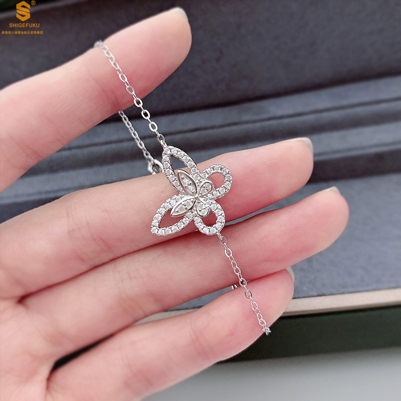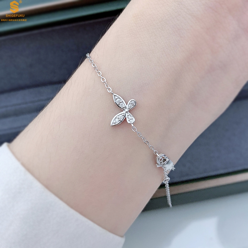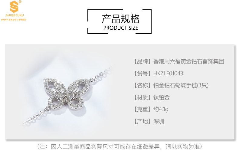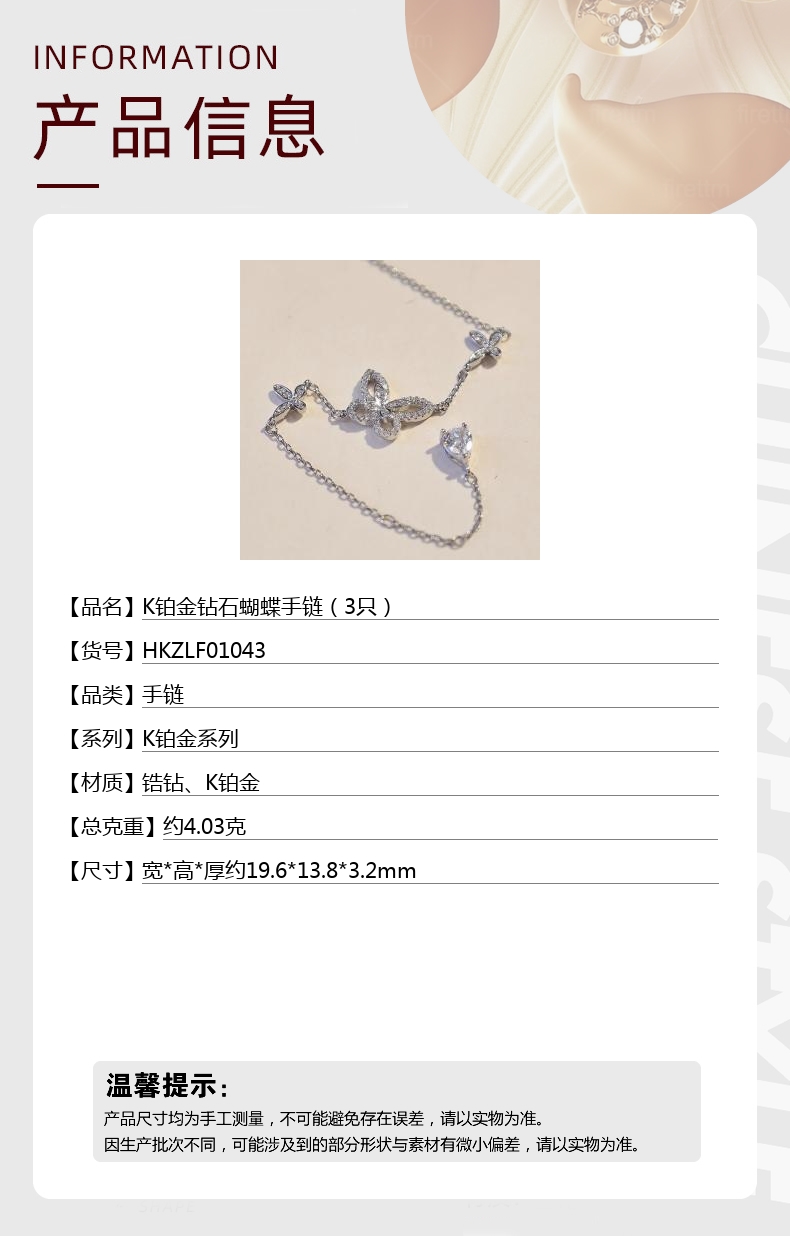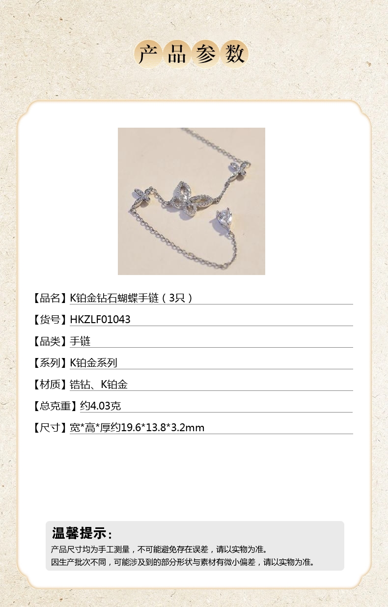 【品名】K铂金钻石蝴蝶手链(3只)