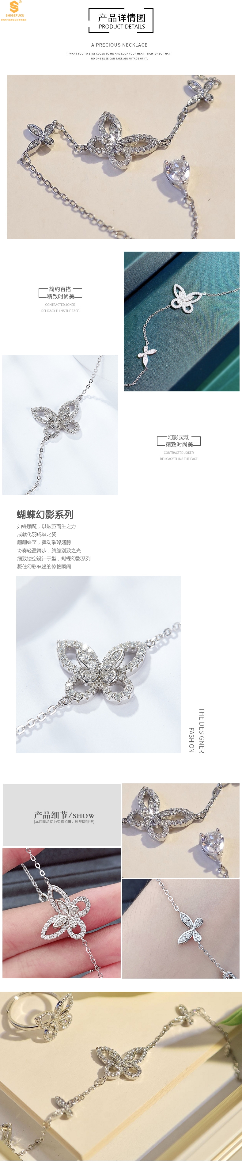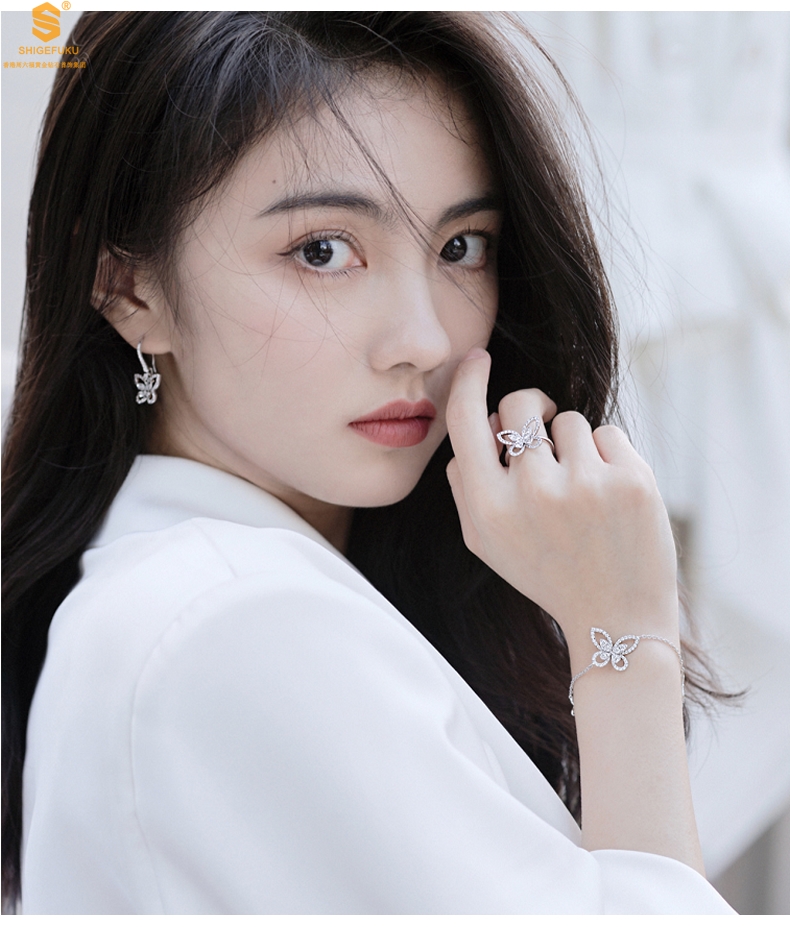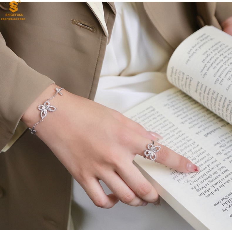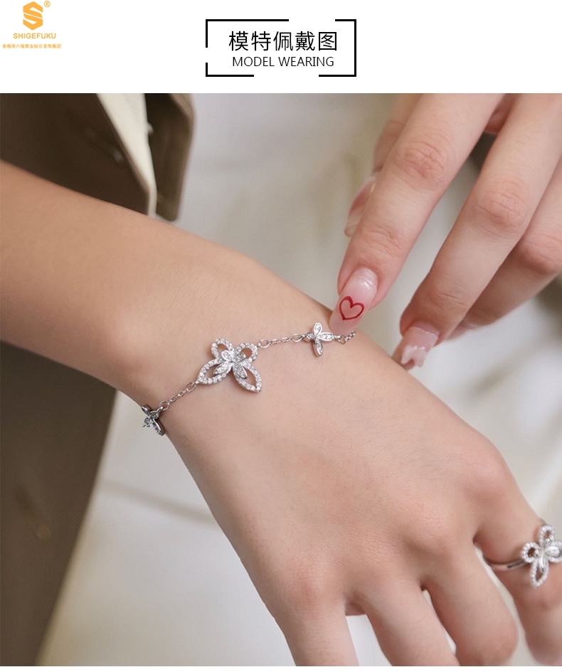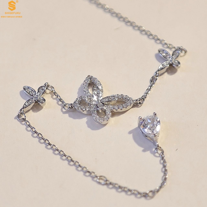 【品名】K铂金钻石蝴蝶手链(3只)