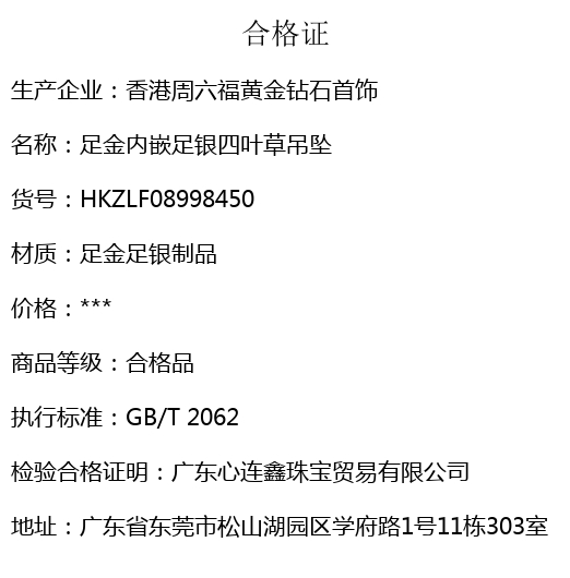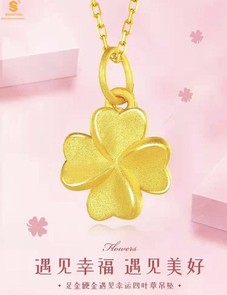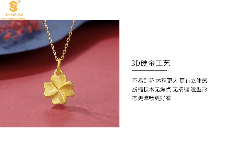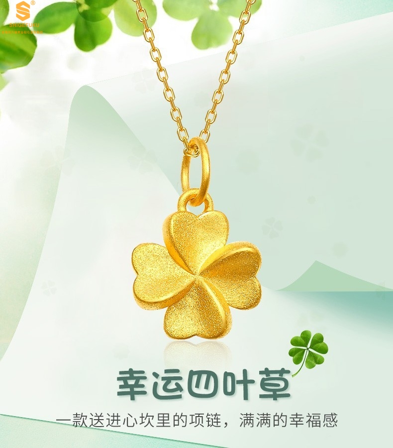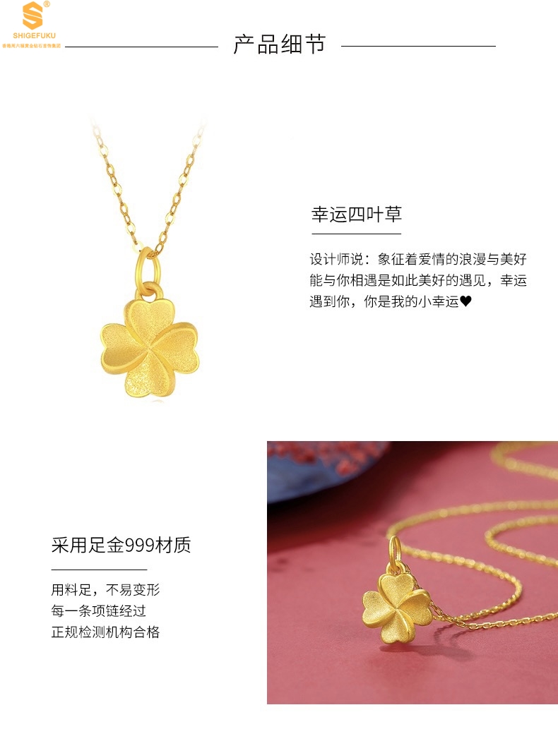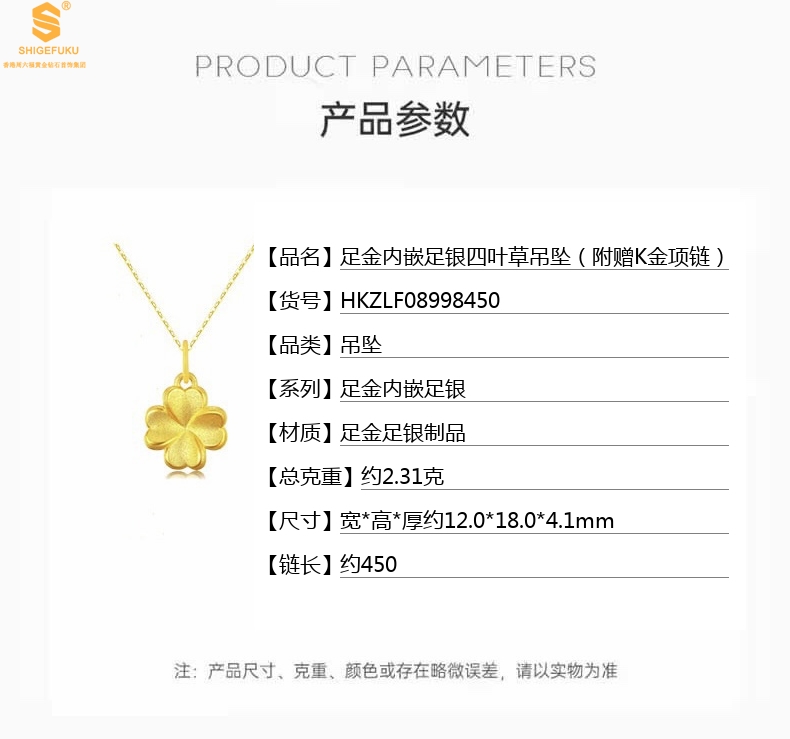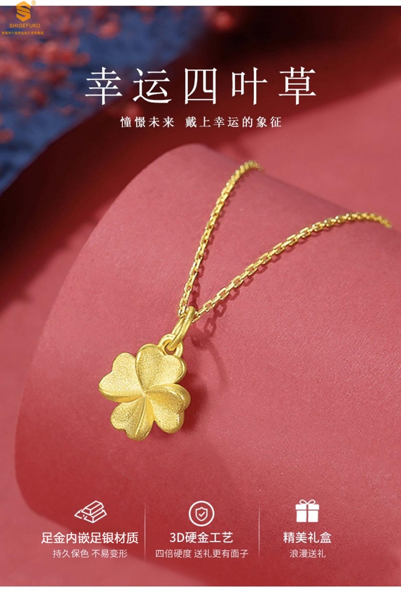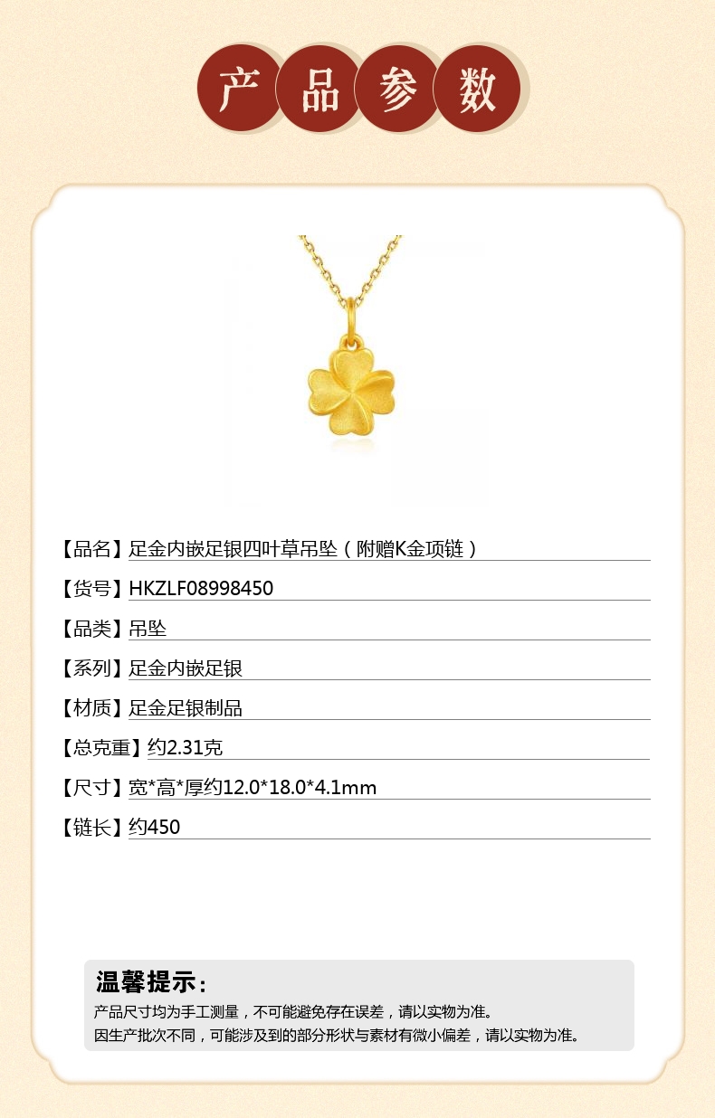 【品名】足金内嵌足银四叶草吊坠(附赠K金项链)