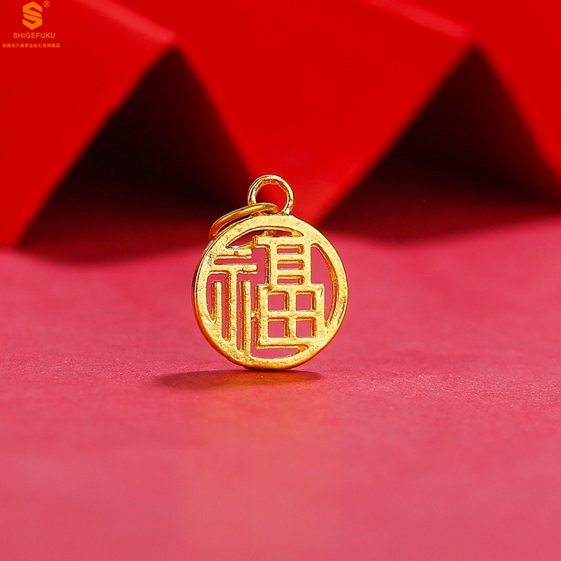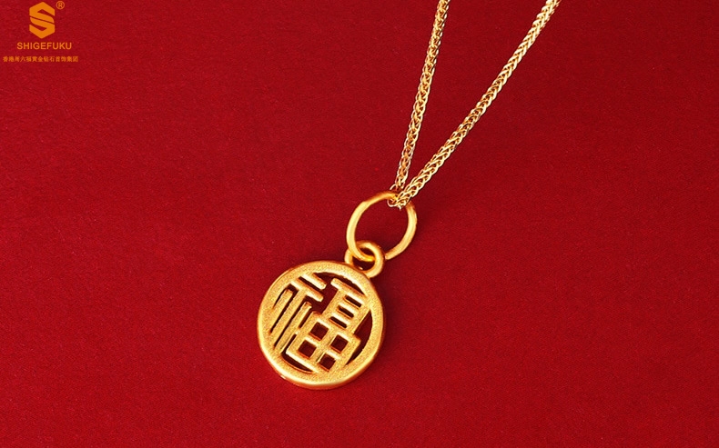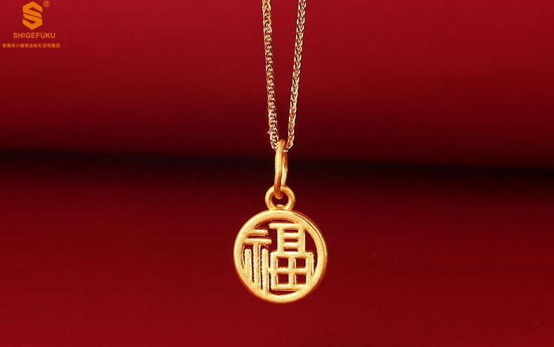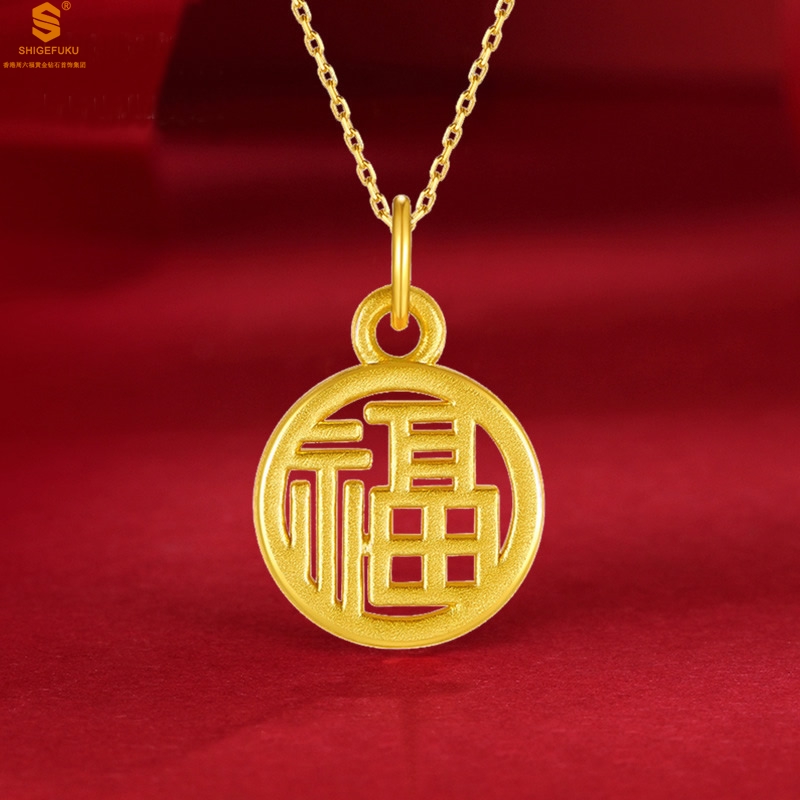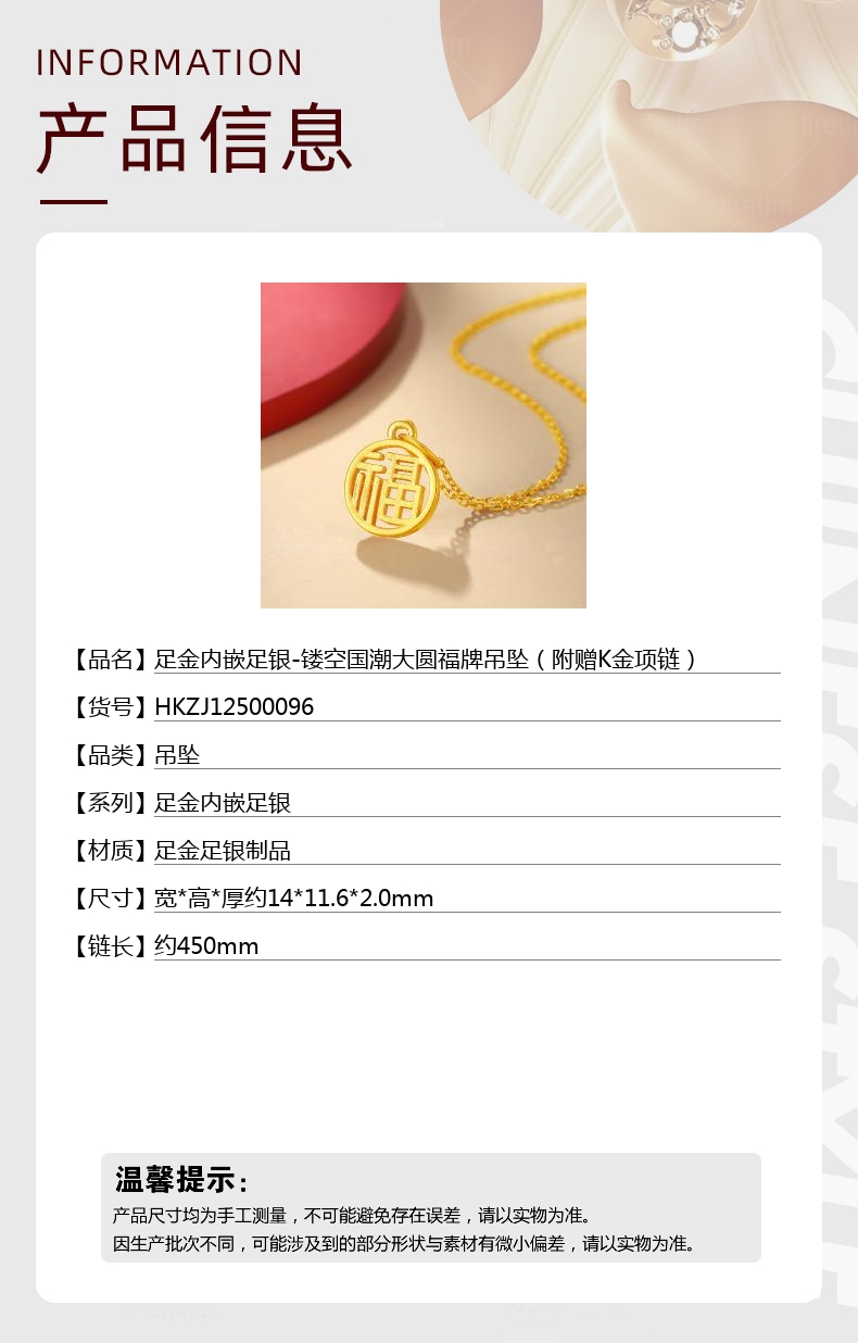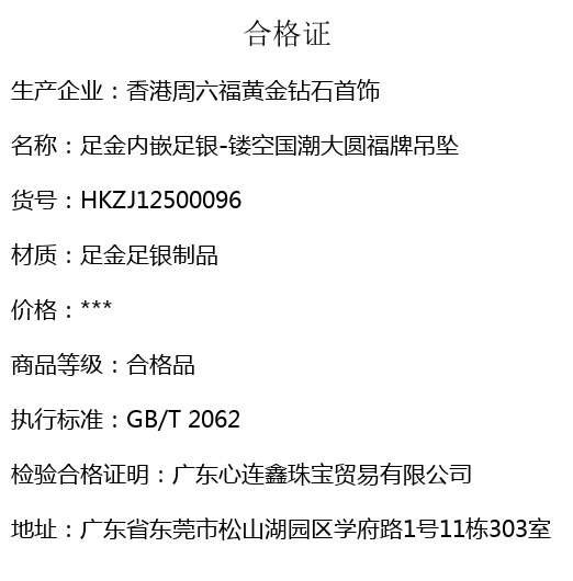 【品名】足金内嵌足银-镂空国潮大圆福牌吊坠(附赠K金项链)