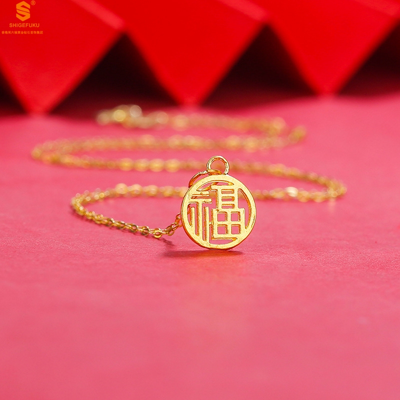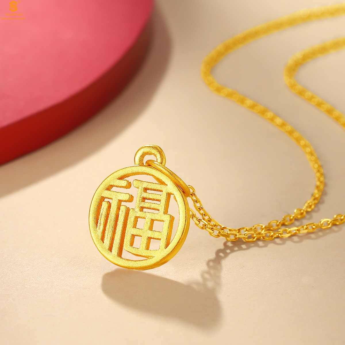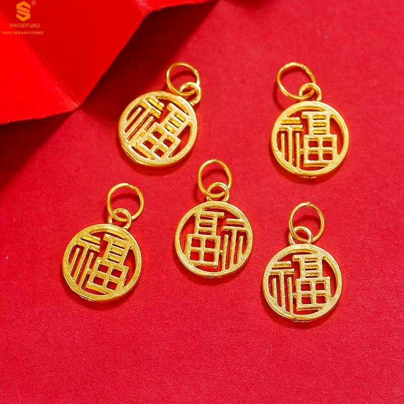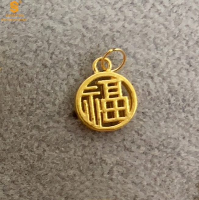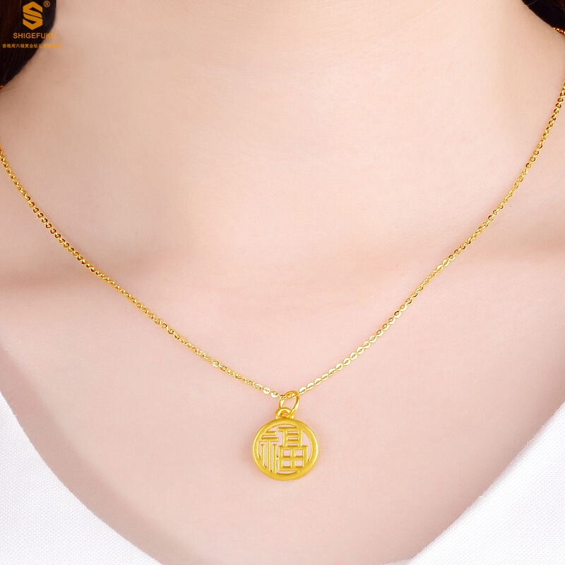 【品名】足金内嵌足银-镂空国潮大圆福牌吊坠(附赠K金项链)