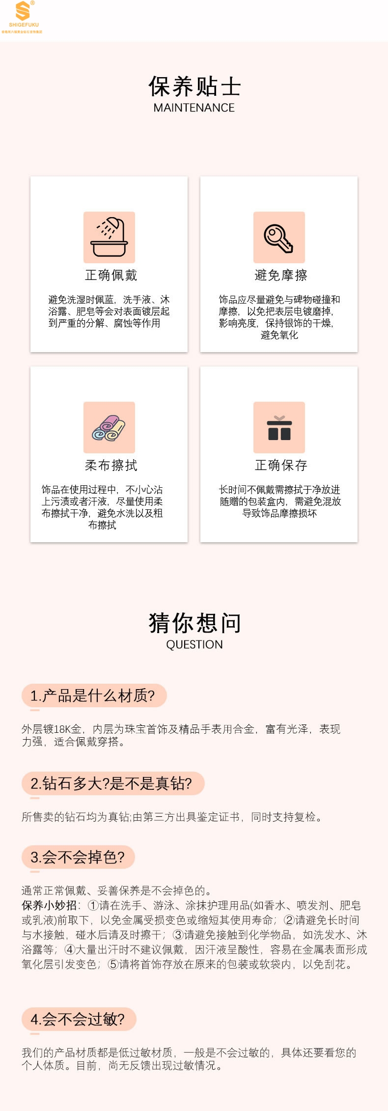 3、因佩戴过程中褪色、变色或其他质量不合格均作为无条件售后范围,可要求进行售后。