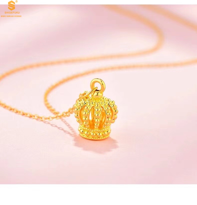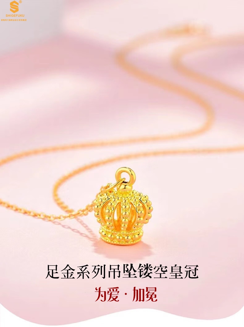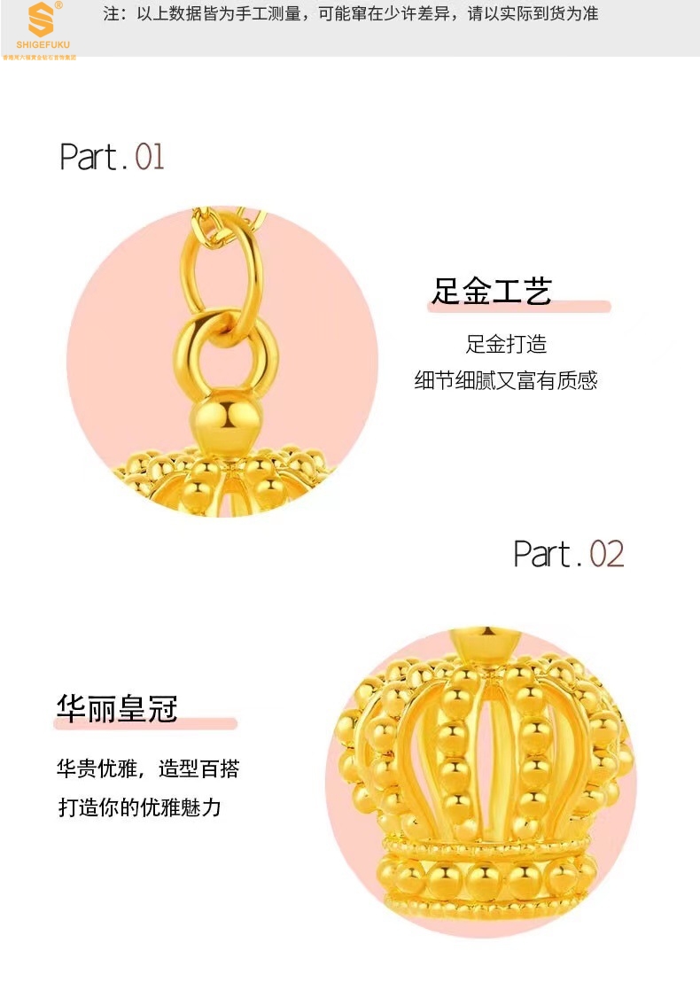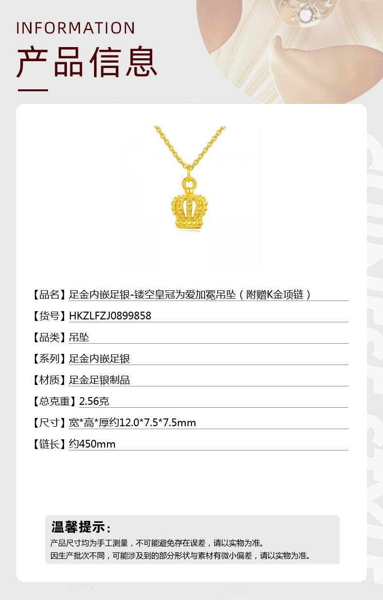 【品名】足金内嵌足银-镂空皇冠为爱加冕吊坠(附赠K金项链)