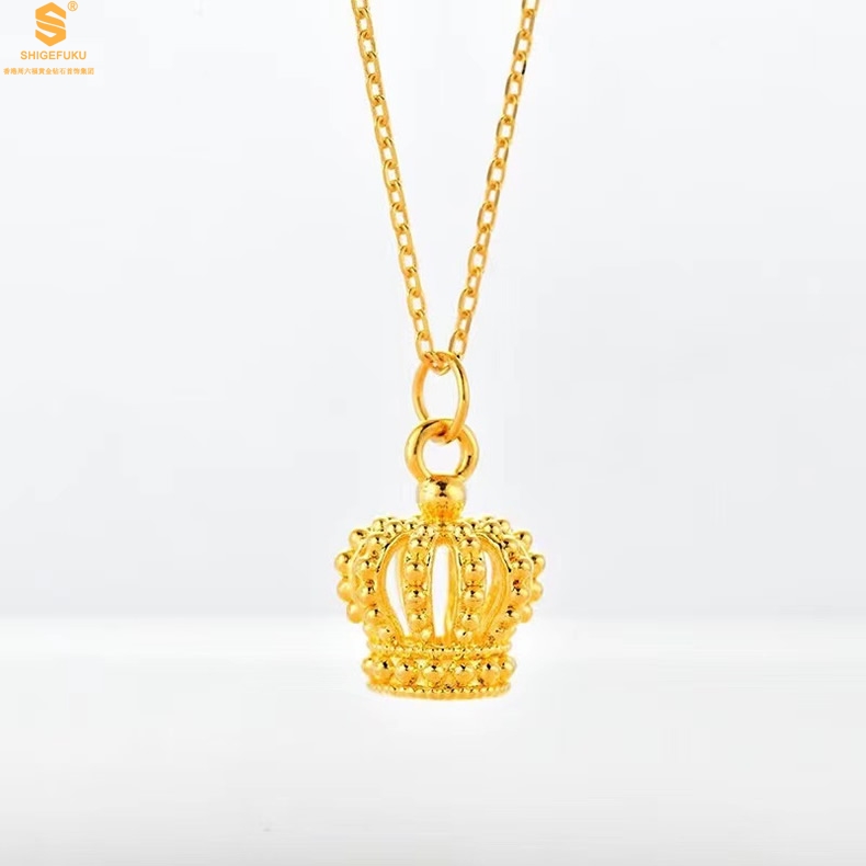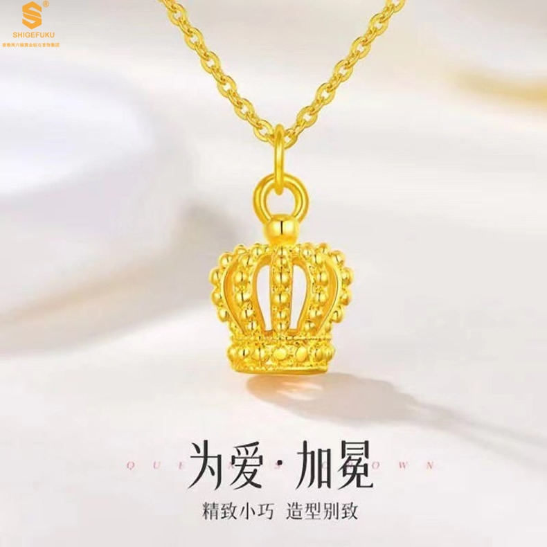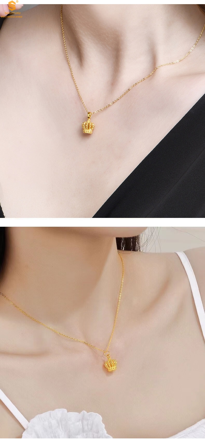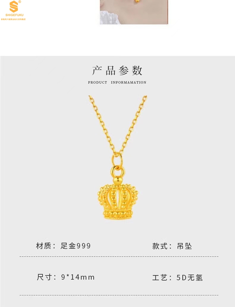 【品名】足金内嵌足银-镂空皇冠为爱加冕吊坠(附赠K金项链)