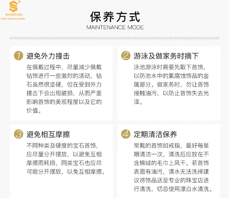 6、售后寄回物品,必须保证:首饰+礼品盒+礼品袋(如有)+国检证书+质保单+保养卡均寄回,丢失部分我们将按照售价扣除。