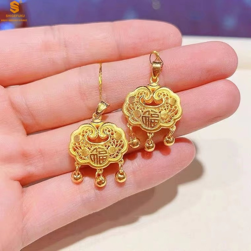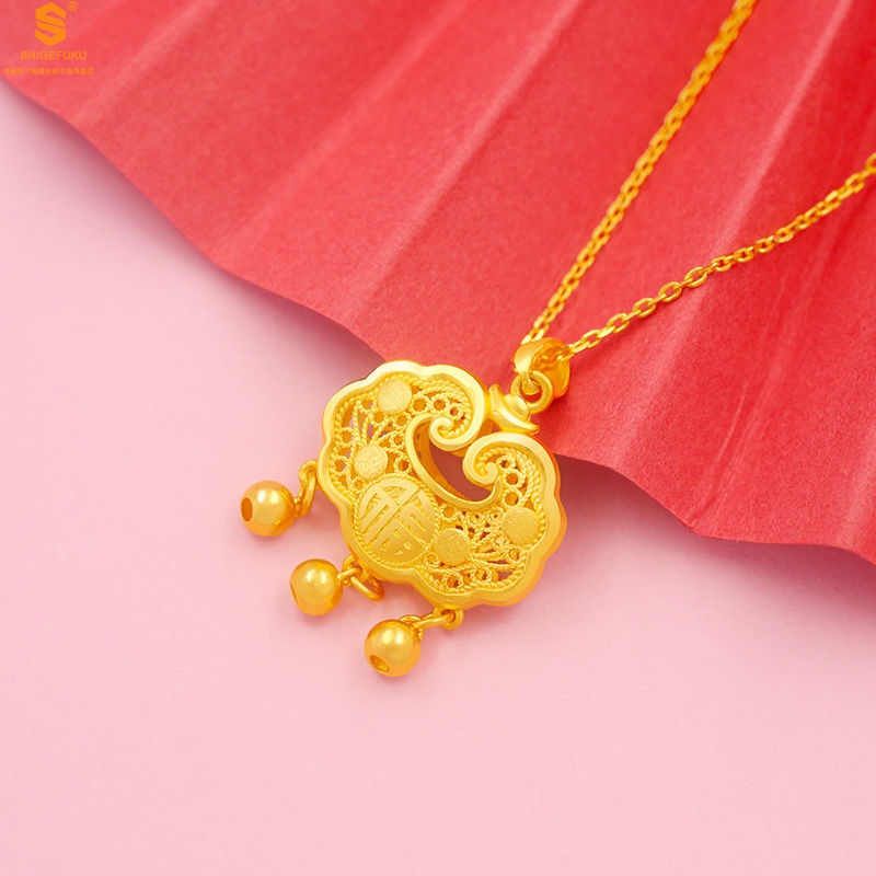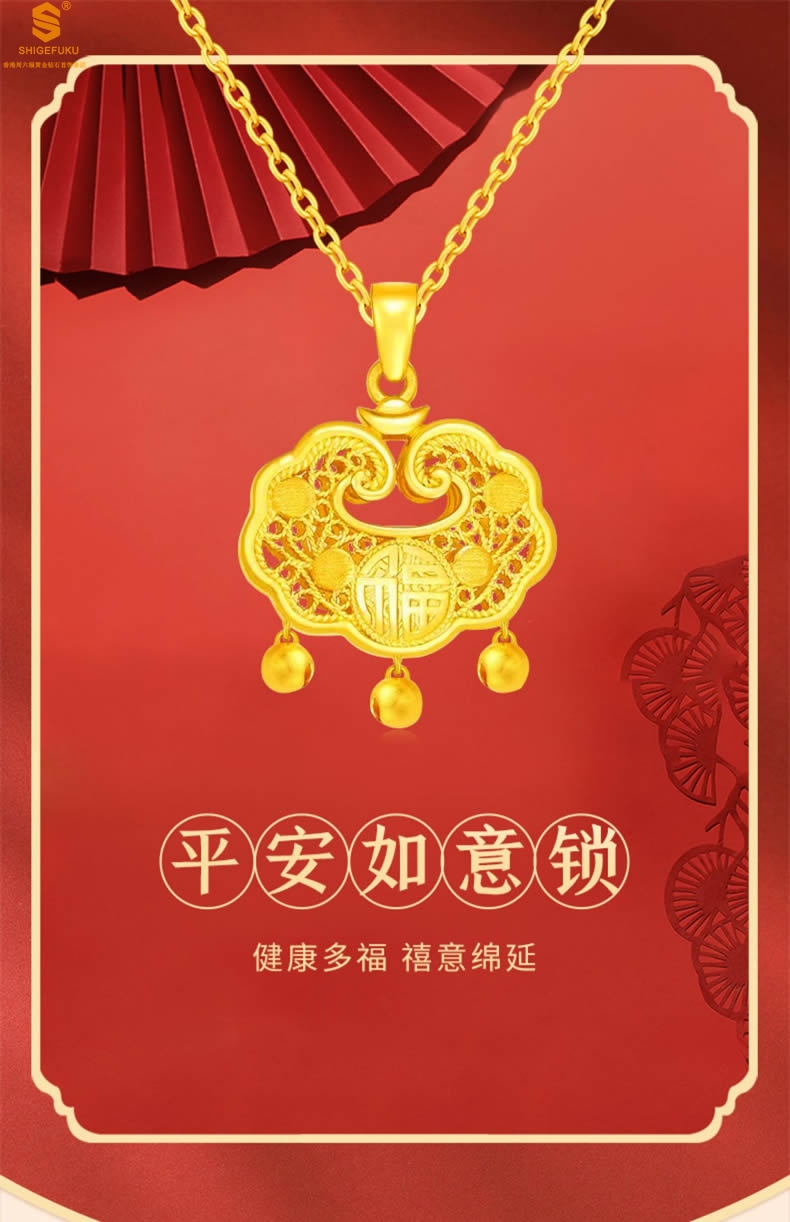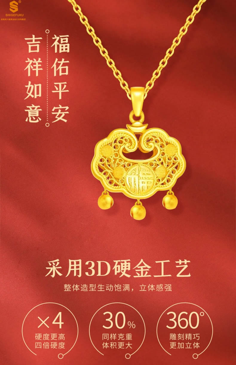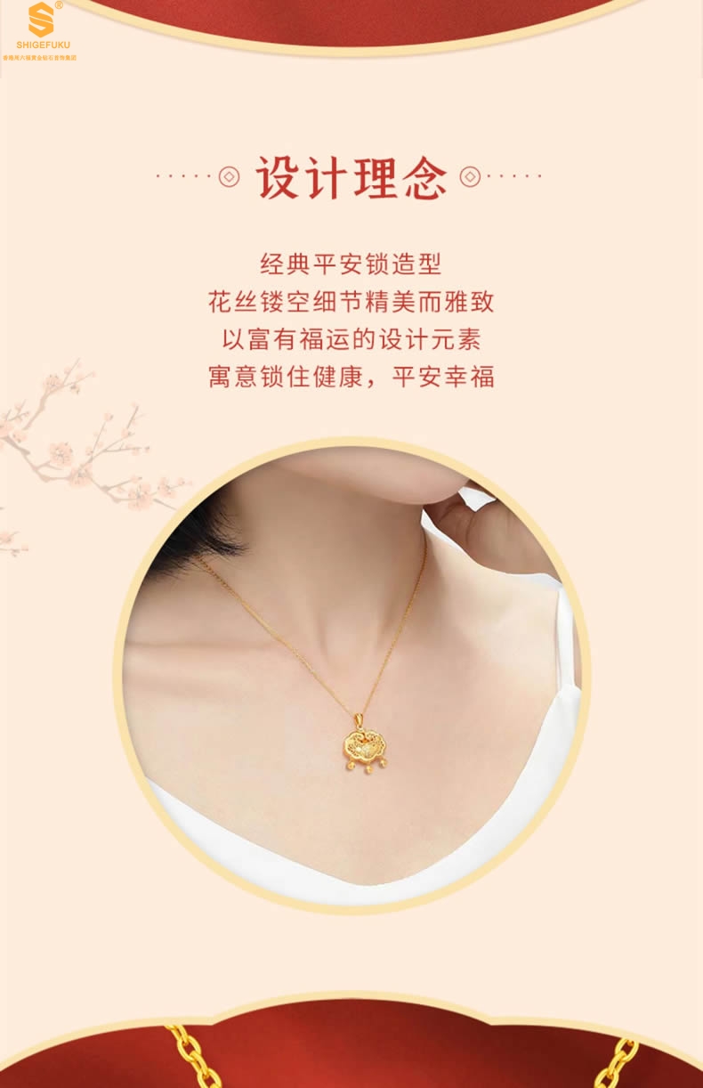 【品名】足金内嵌足银-平安锁福字镂空铃铛吊坠(附赠K金项链)