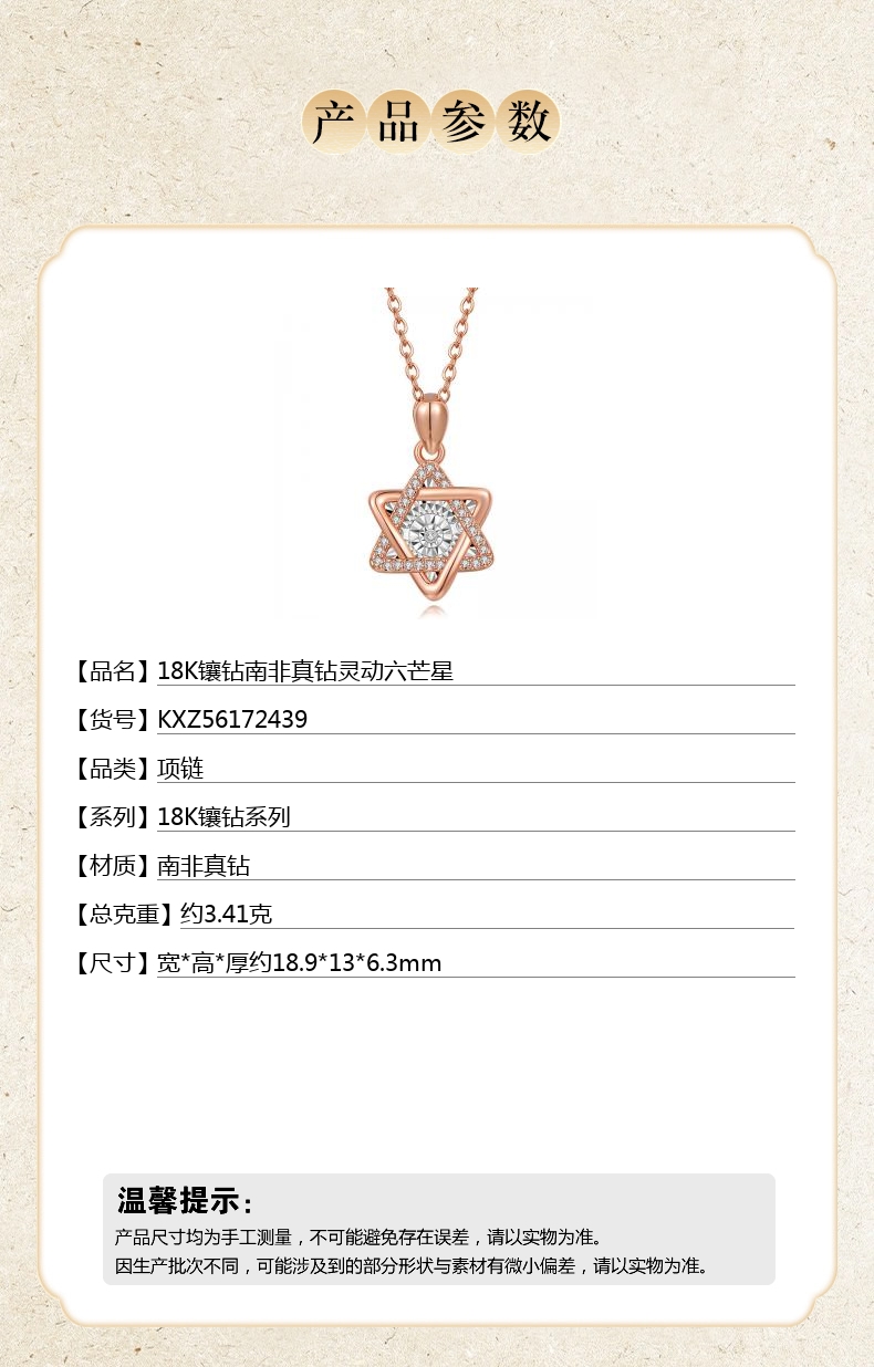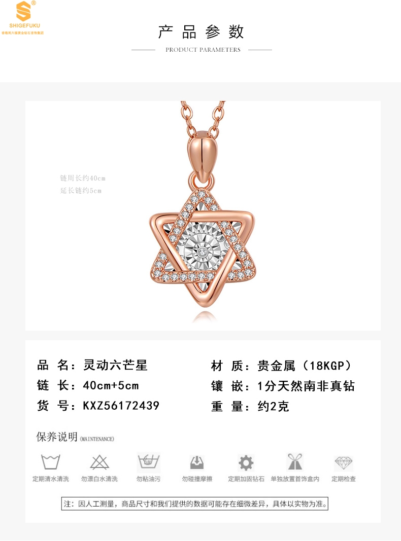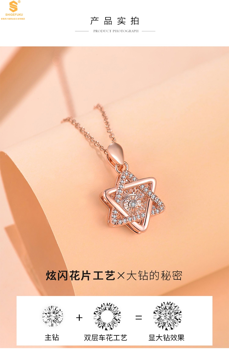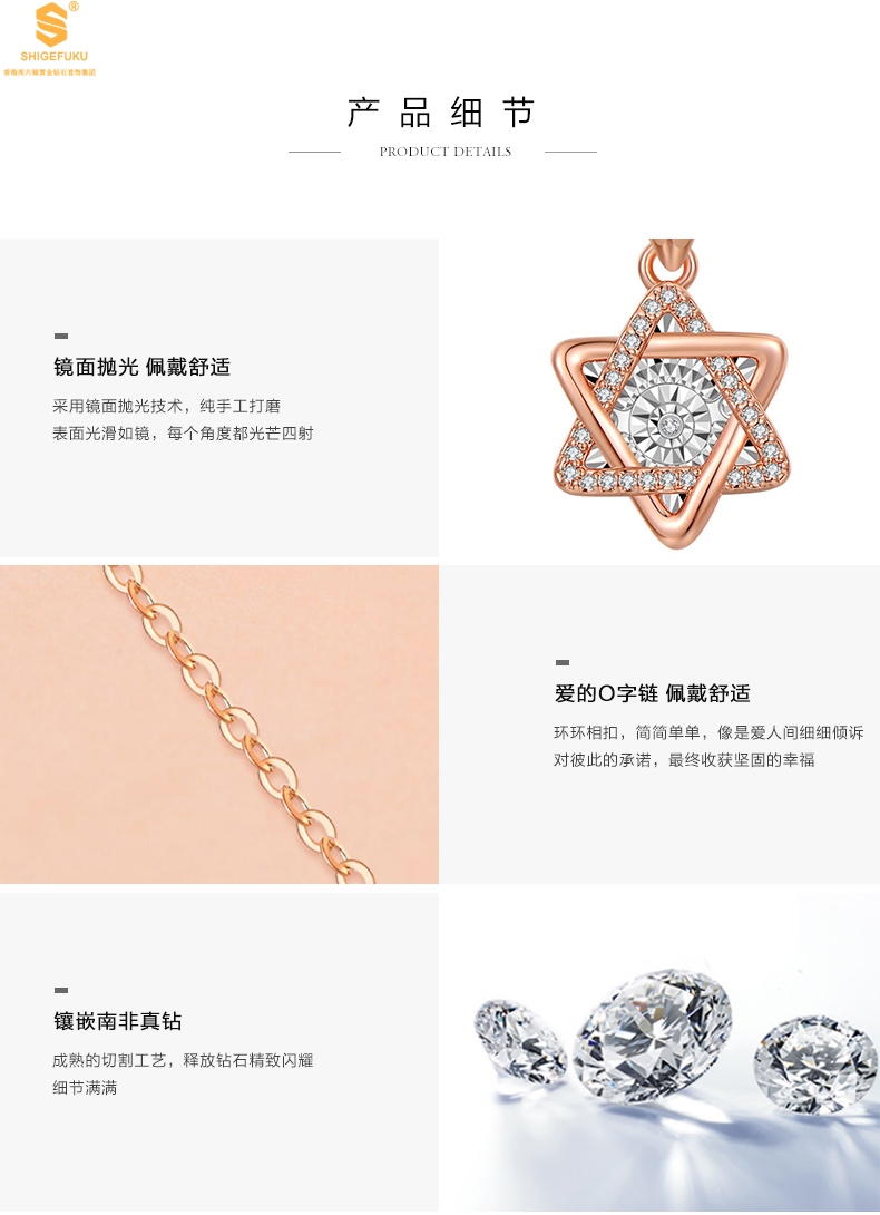 【品名】18K镶钻南非真钻灵动六芒星