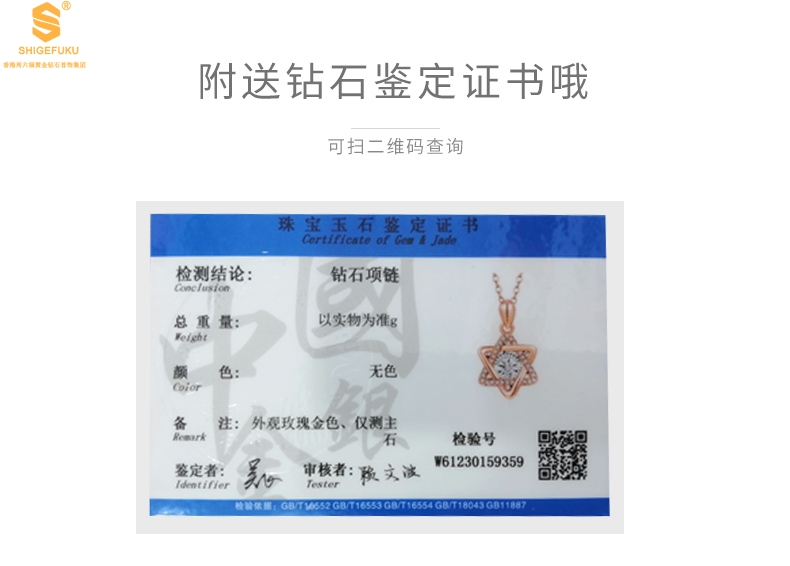 【套装包含】首饰+礼品盒+礼品袋+国检证书+质保单+价签