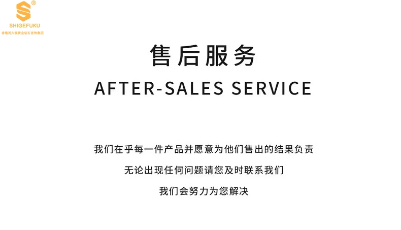 6、售后寄回物品,必须保证:首饰+礼品盒+礼品袋(如有)+国检证书+质保单+保养卡均寄回,丢失部分我们将按照售价扣除。