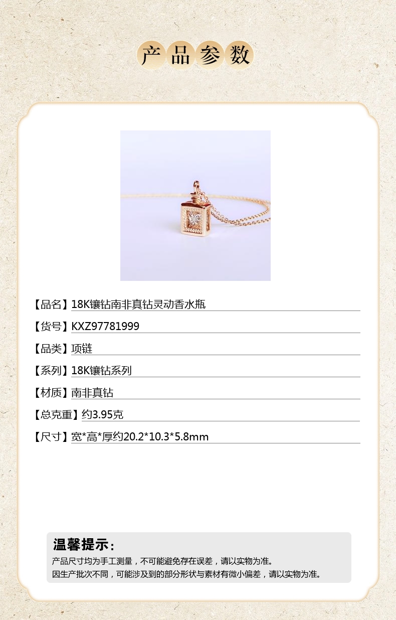 【品名】18K镶钻南非真钻灵动香水瓶