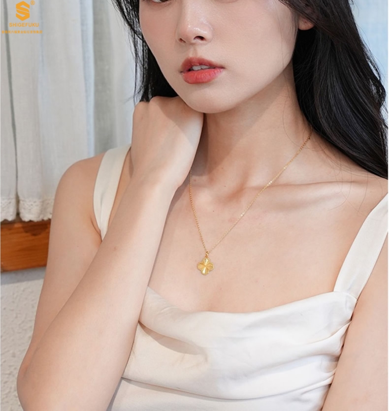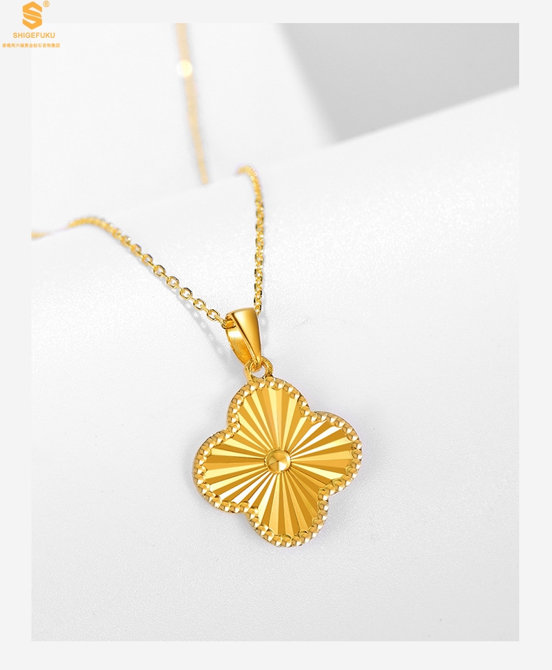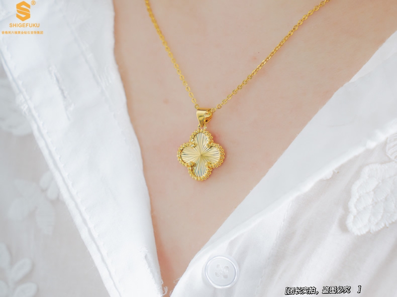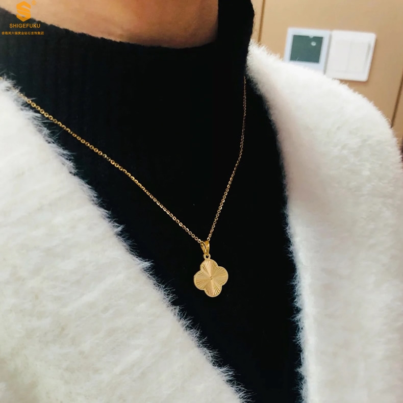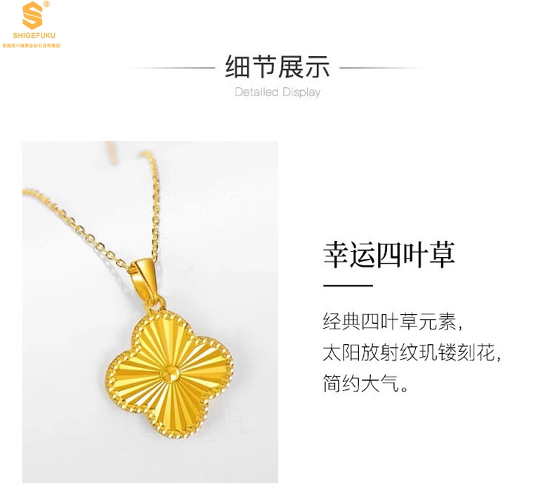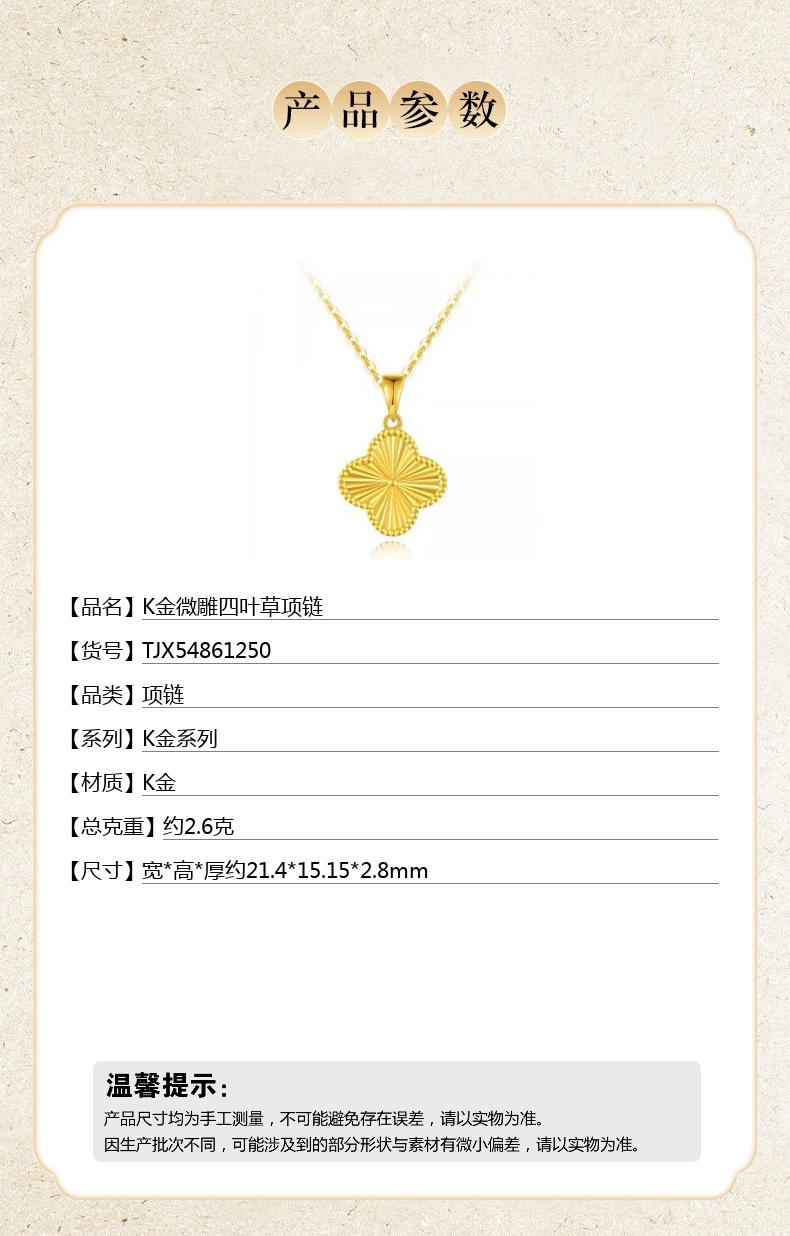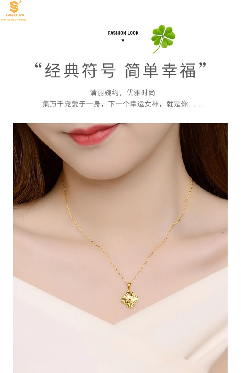 【品名】K金微雕四叶草项链