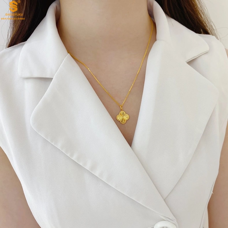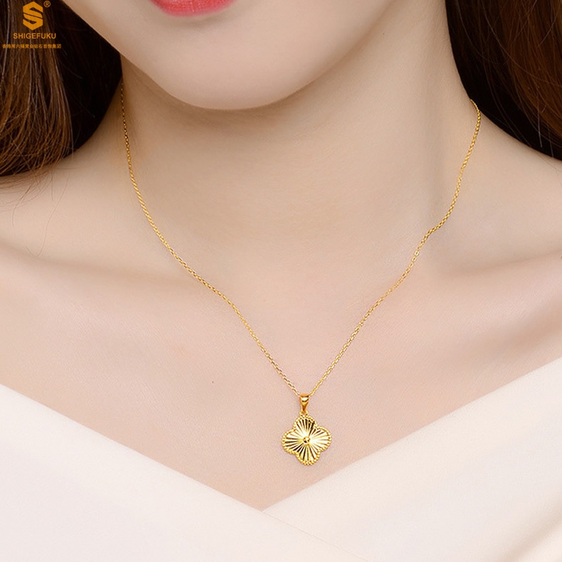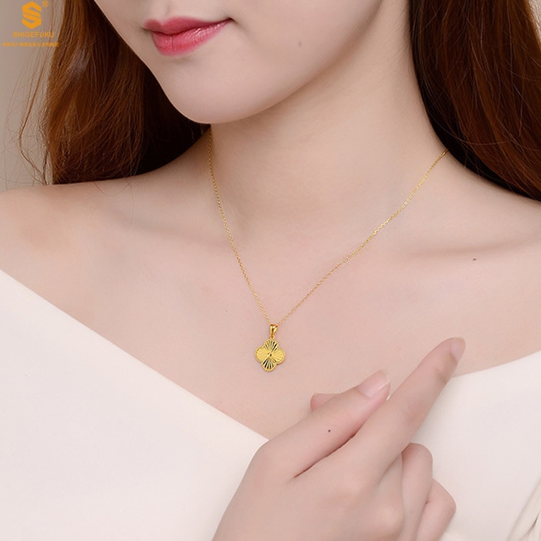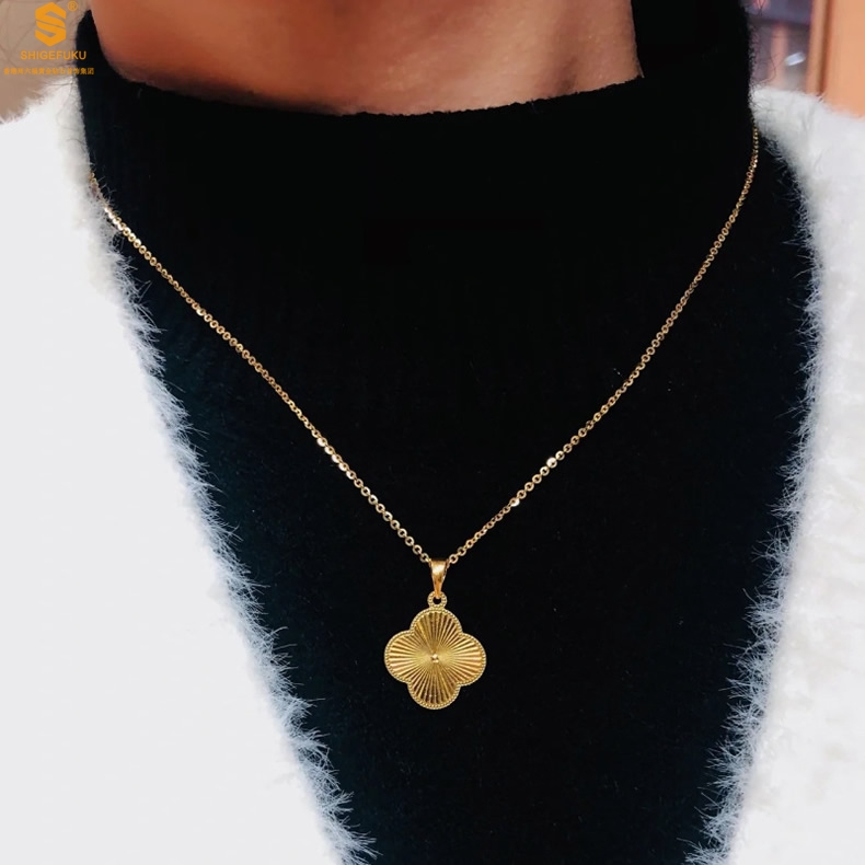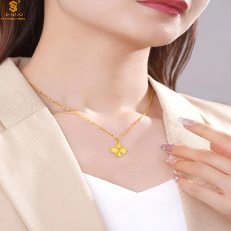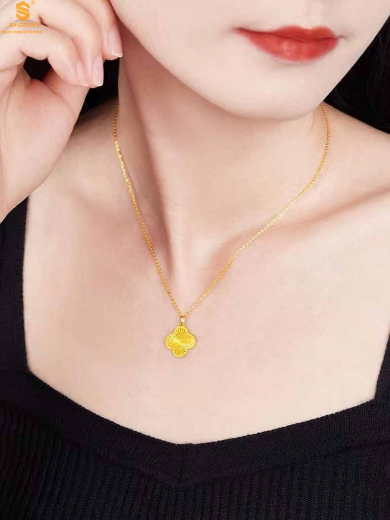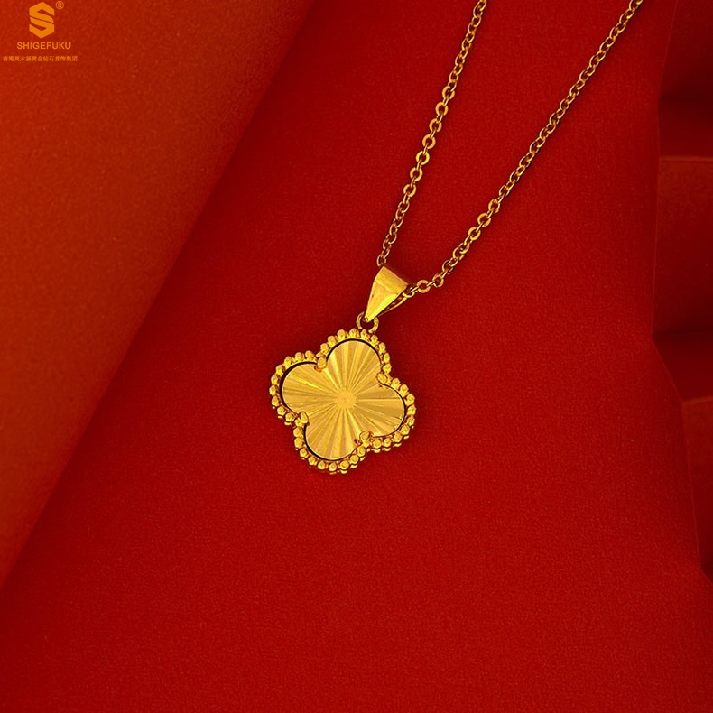 【品名】K金微雕四叶草项链