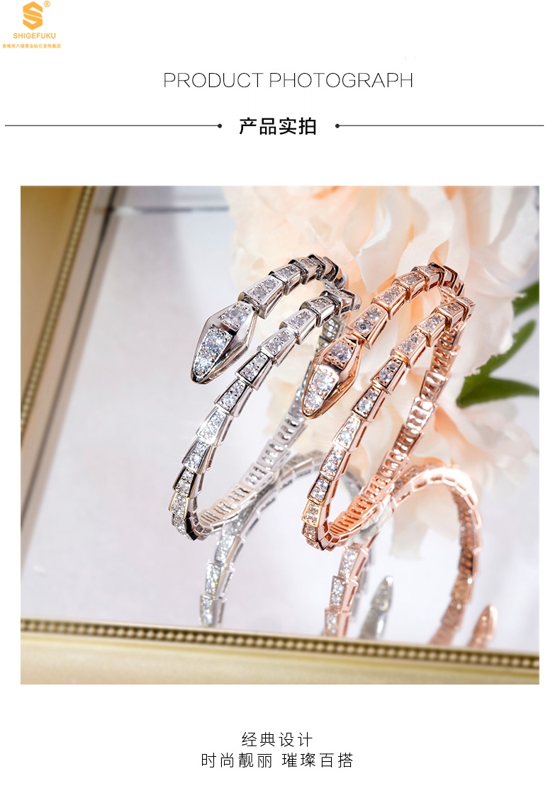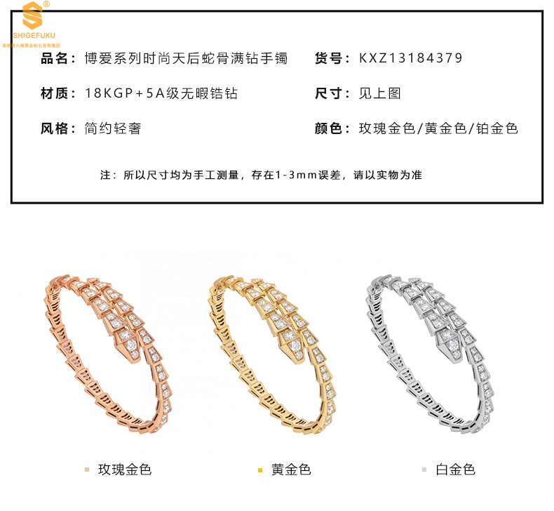 【品名】博爱系列时尚天后蛇骨满钻手镯