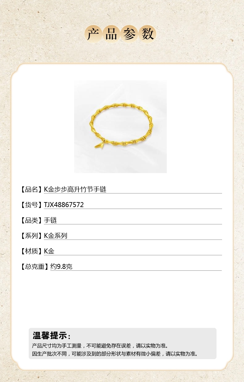 【品名】K金步步高升竹节手链