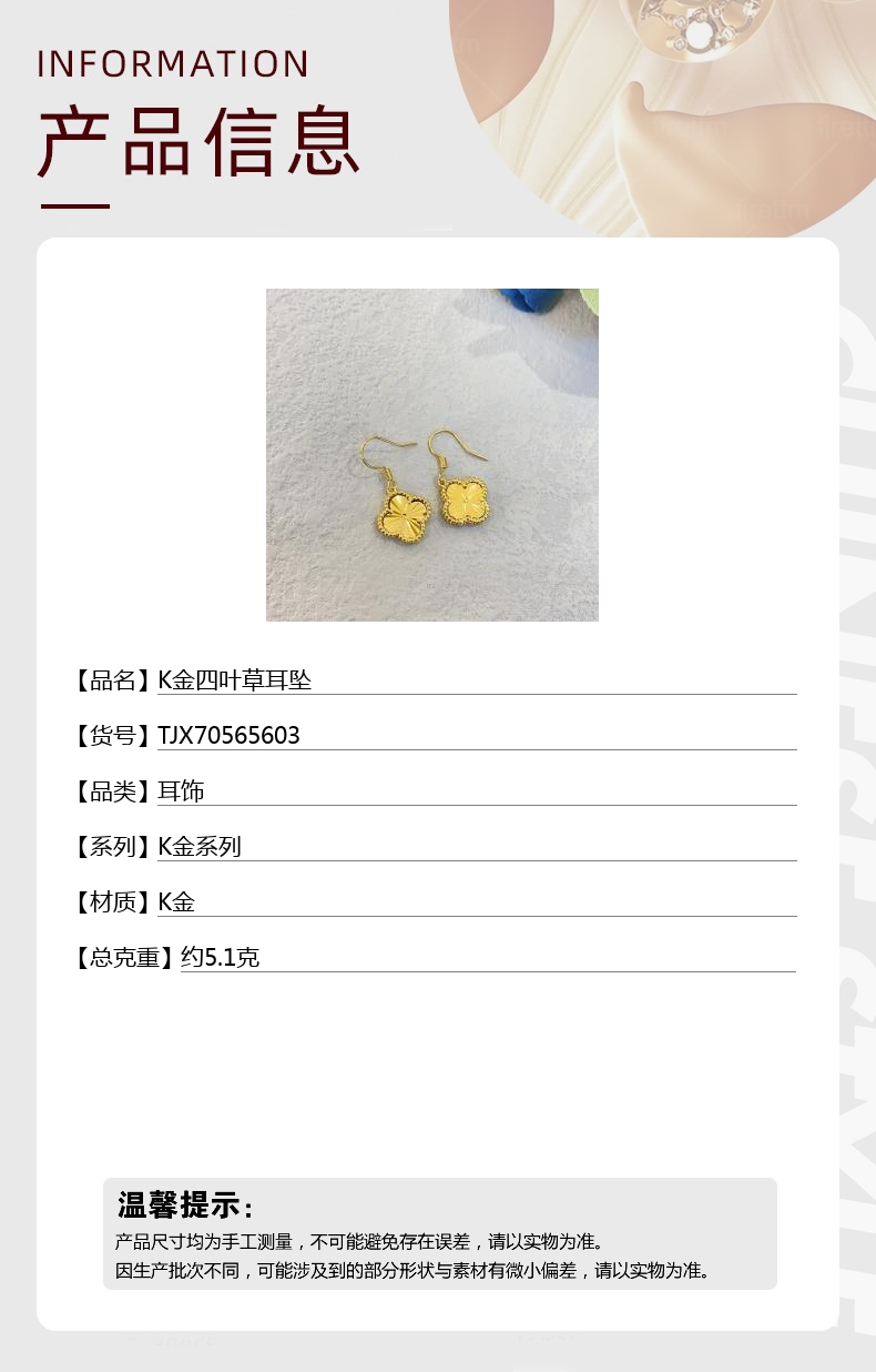 【品名】K金四叶草耳坠