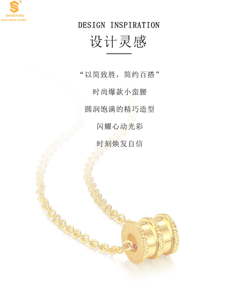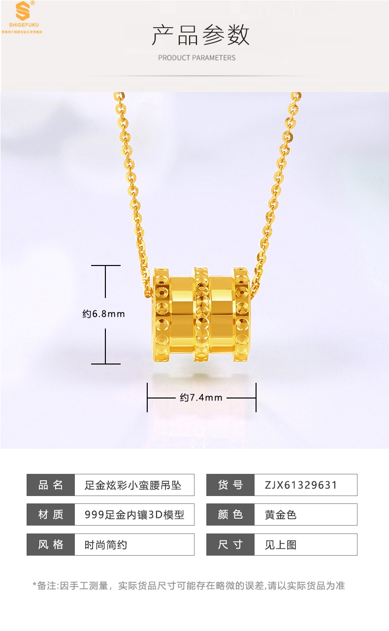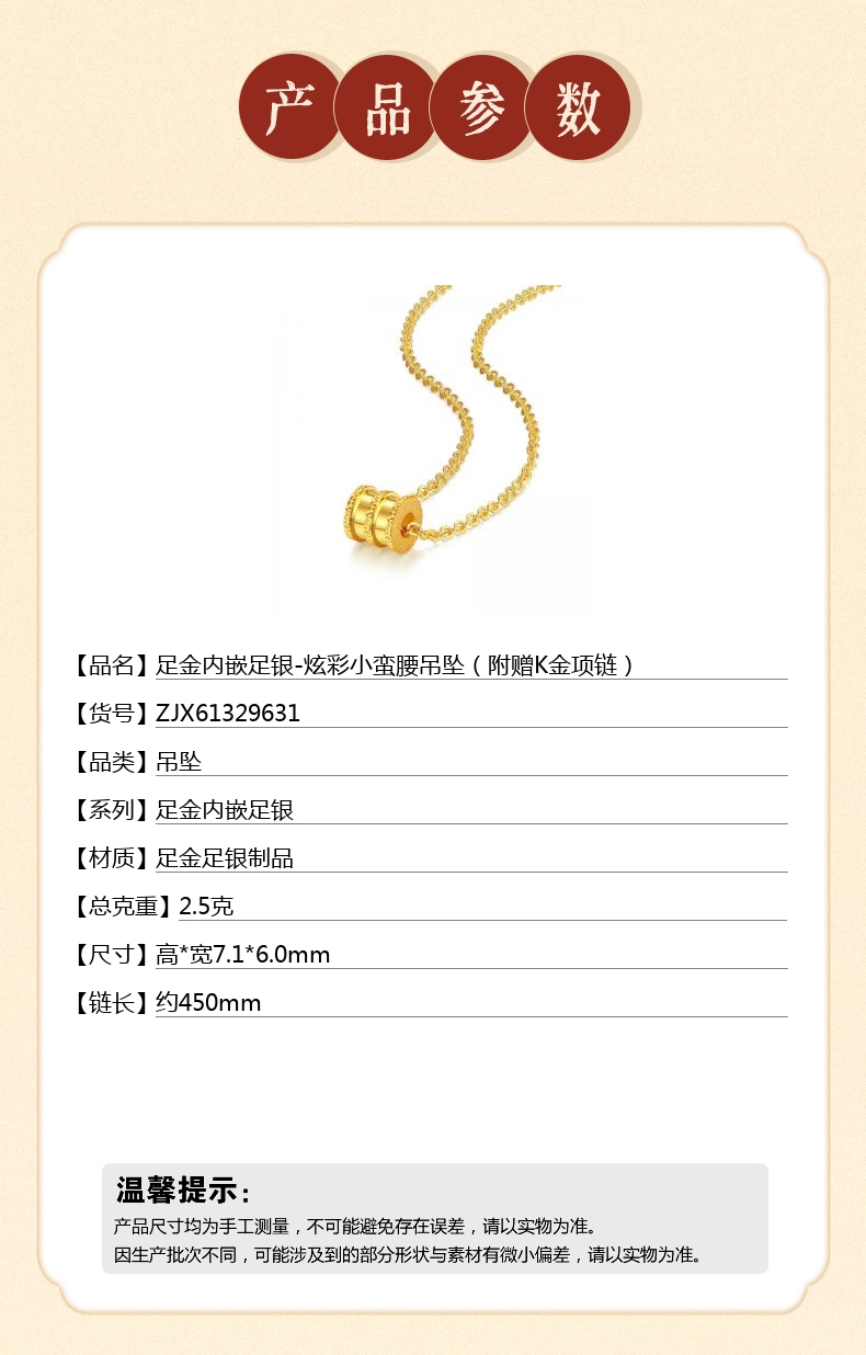 【品名】足金内嵌足银-炫彩小蛮腰吊坠(附赠K金项链)