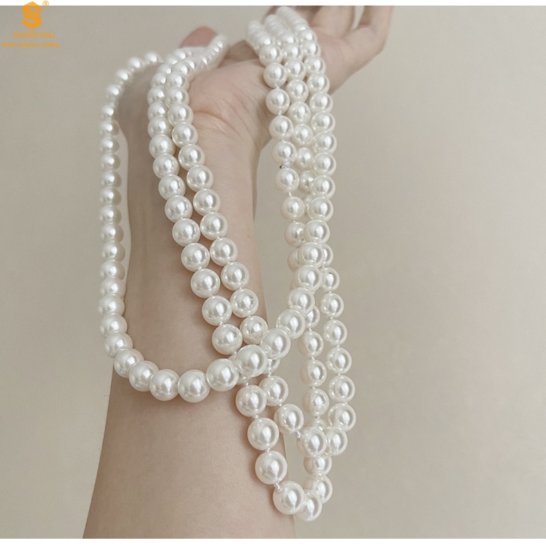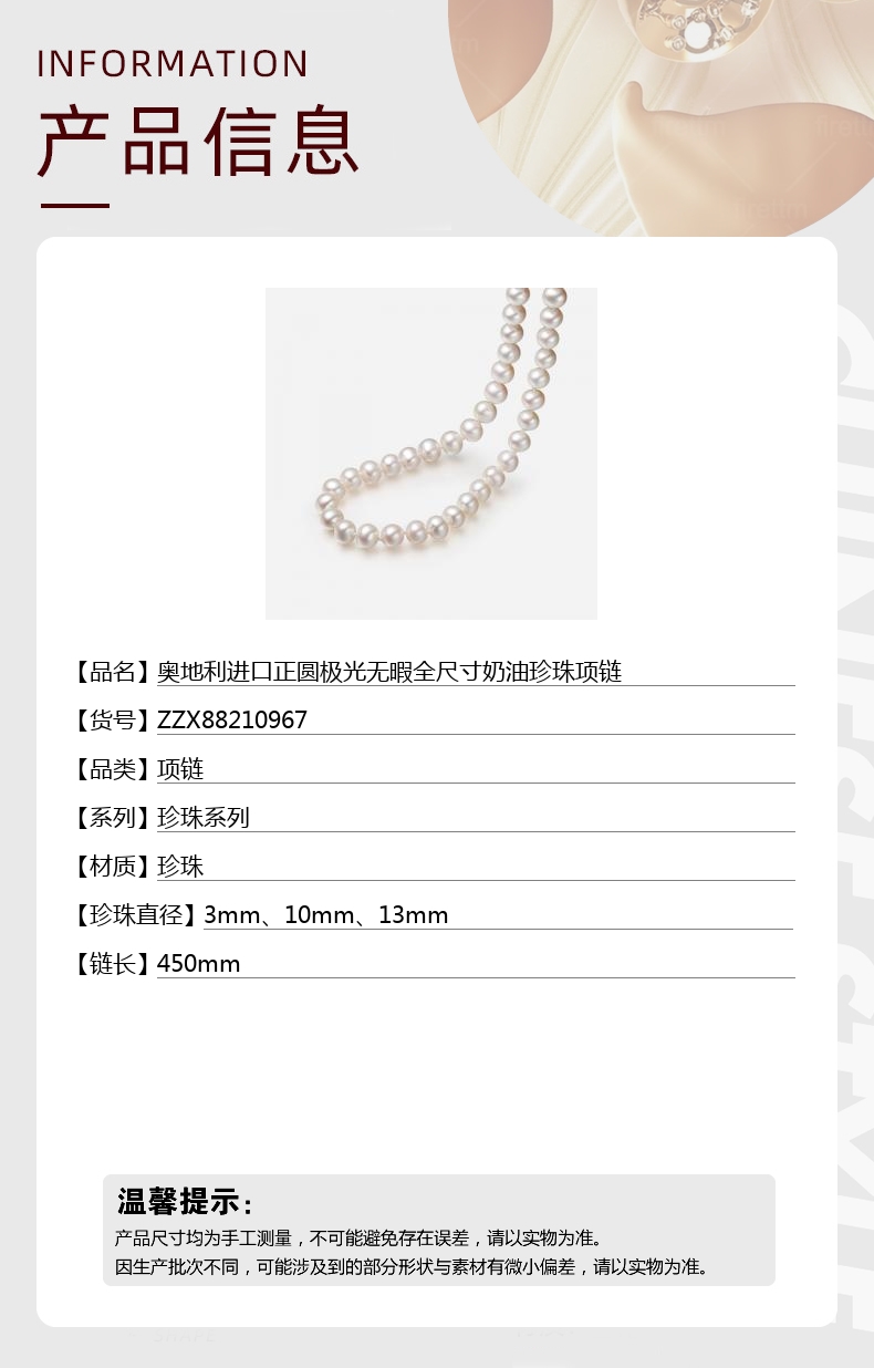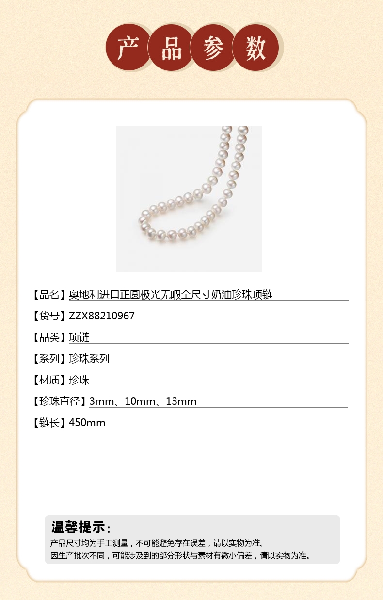 【品名】奥地利进口正圆极光无暇全尺寸奶油珍珠项链