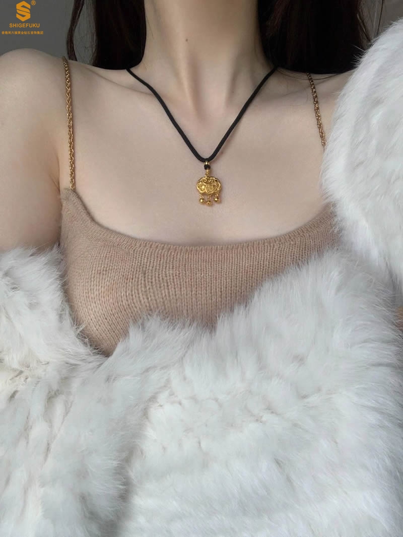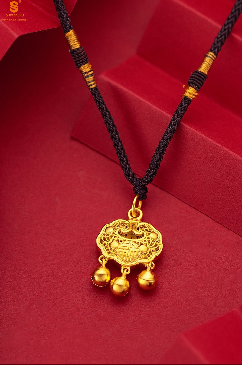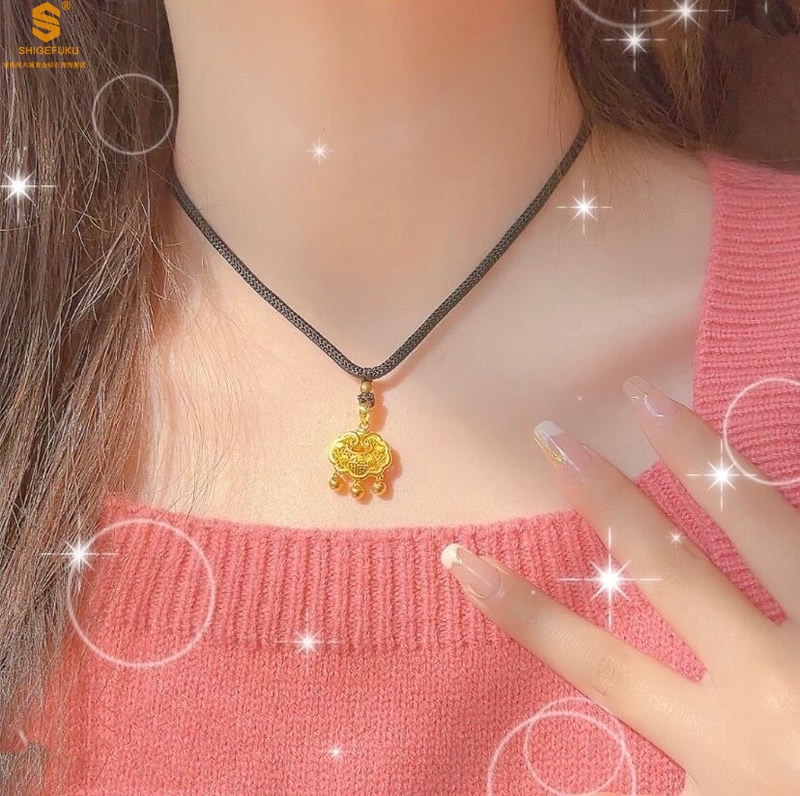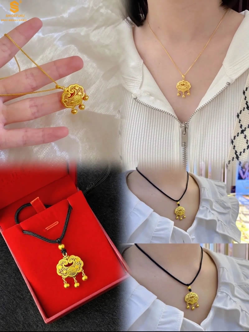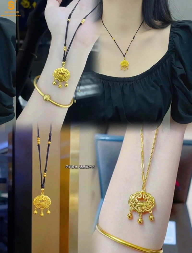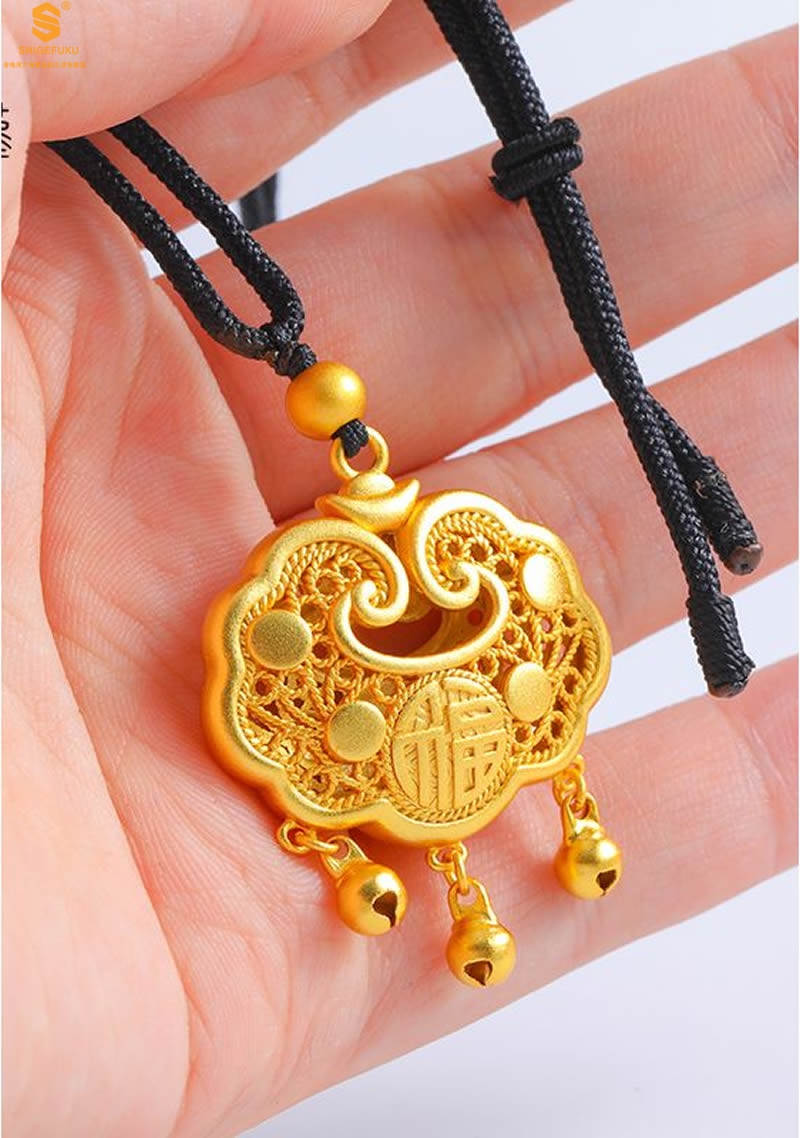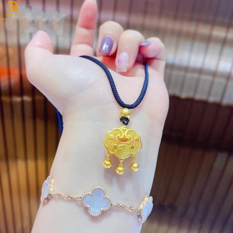 【品名】足金内嵌足银-平安锁吊坠(转运珠黑绳款)