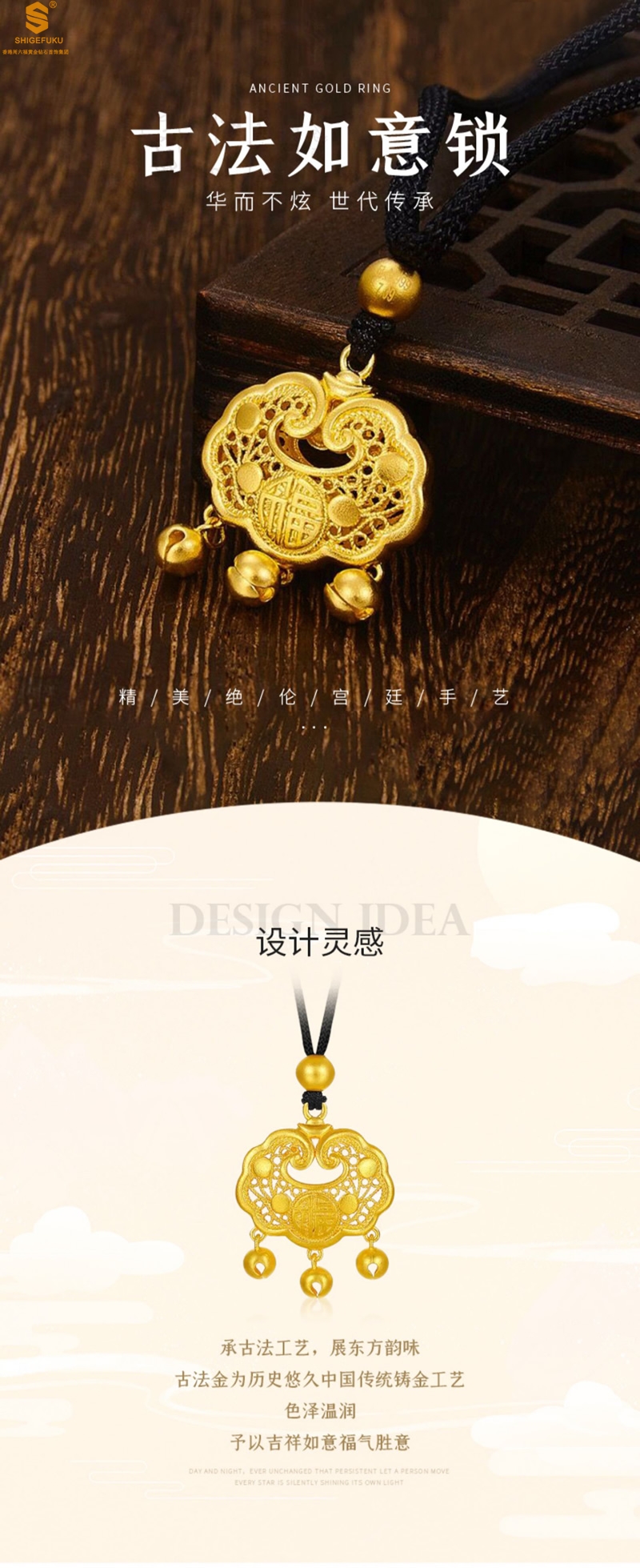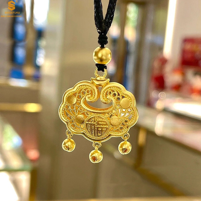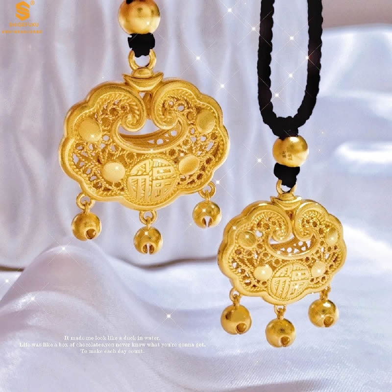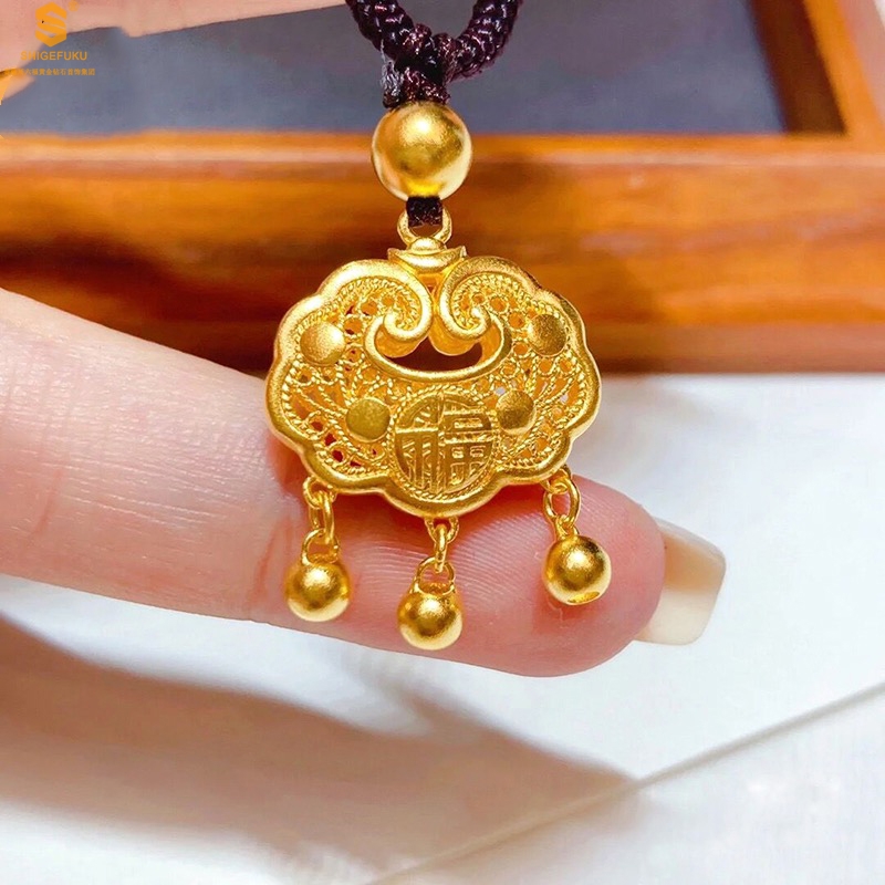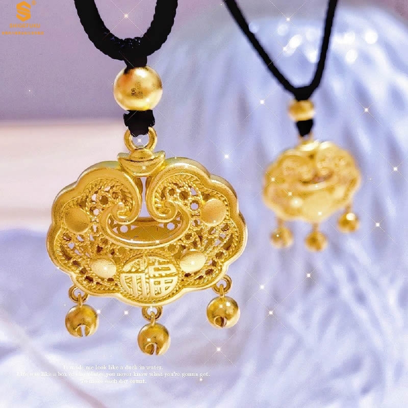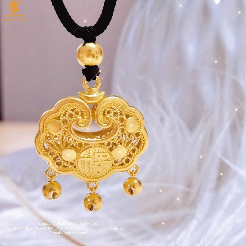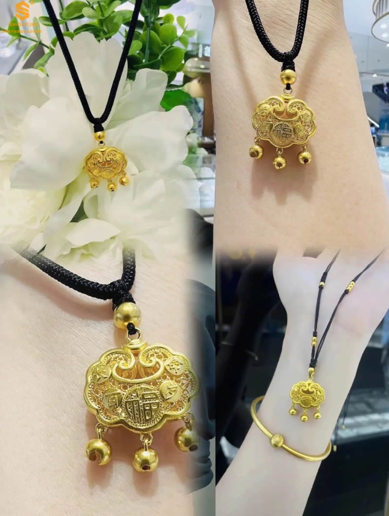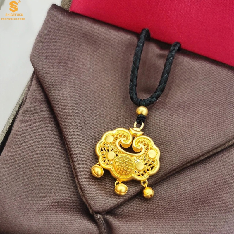 【品名】足金内嵌足银-平安锁吊坠(转运珠黑绳款)