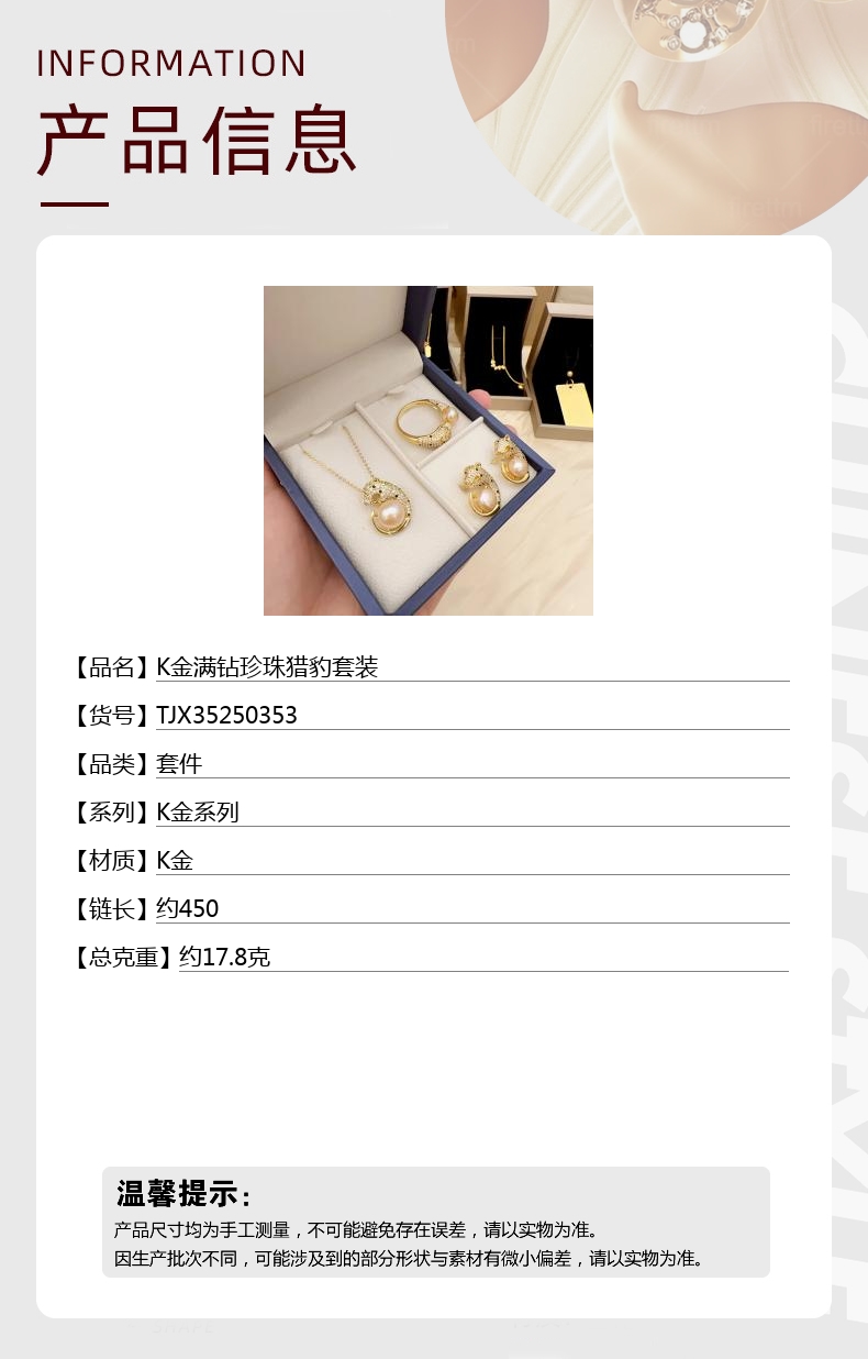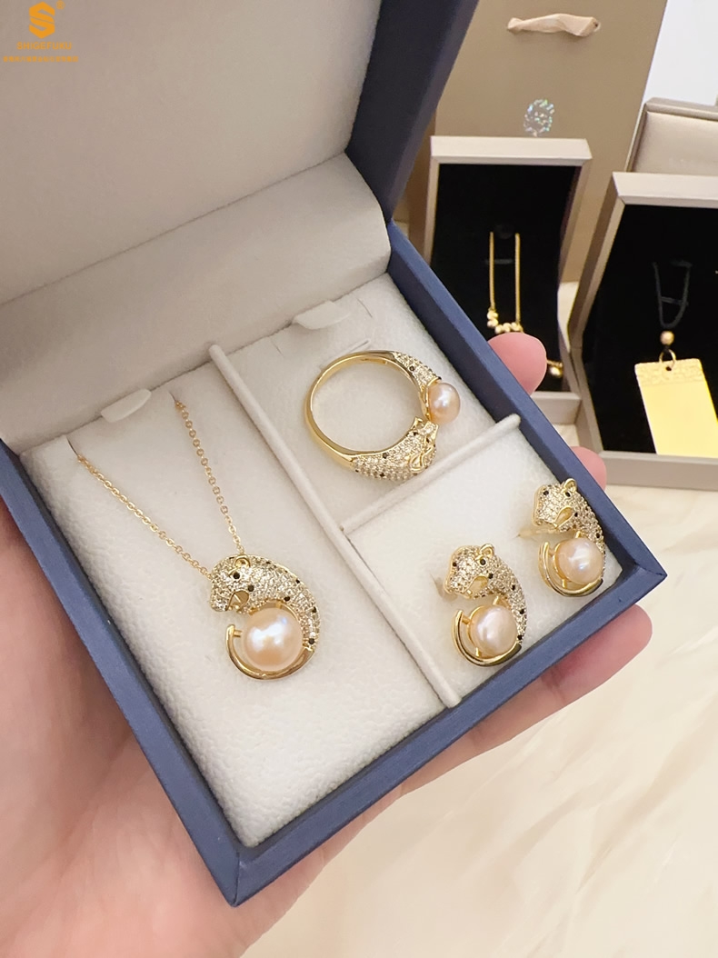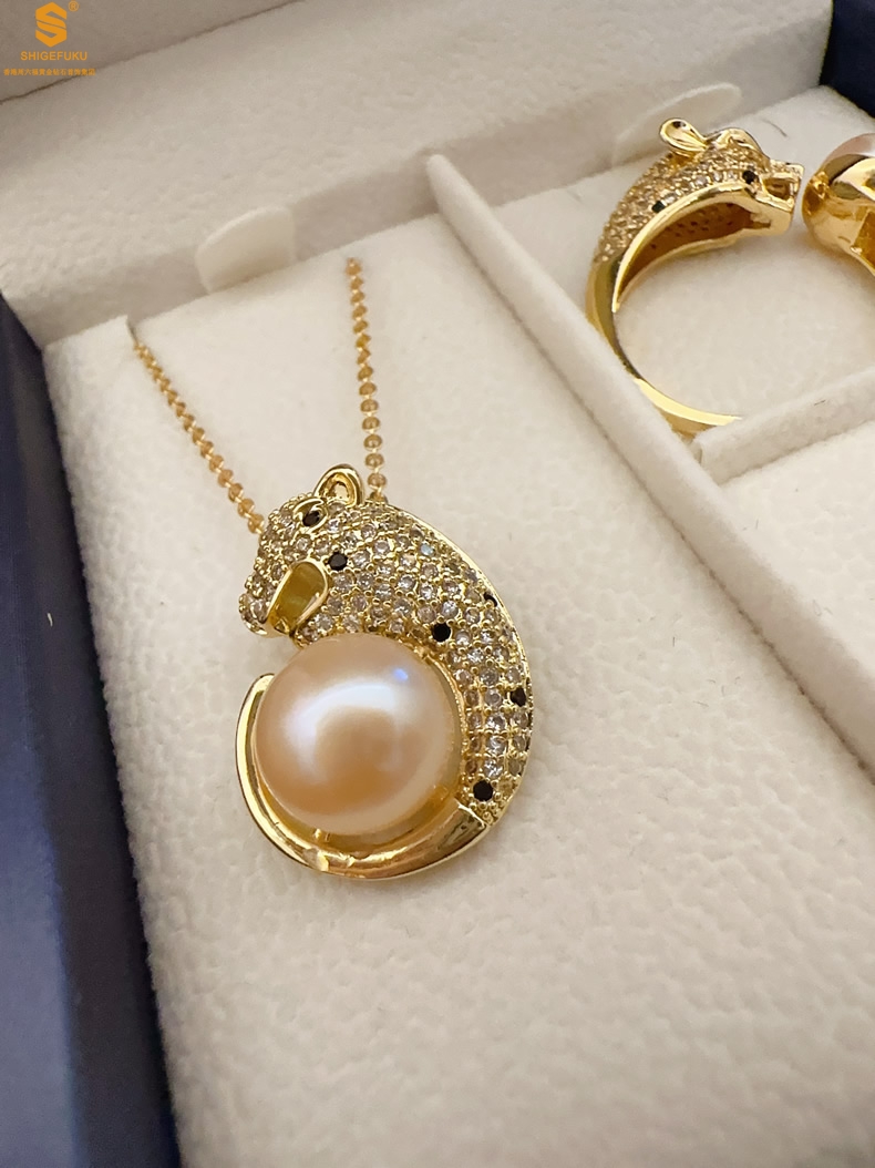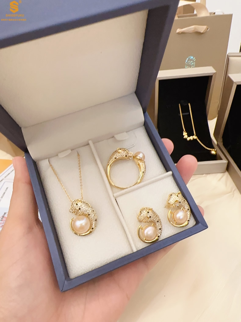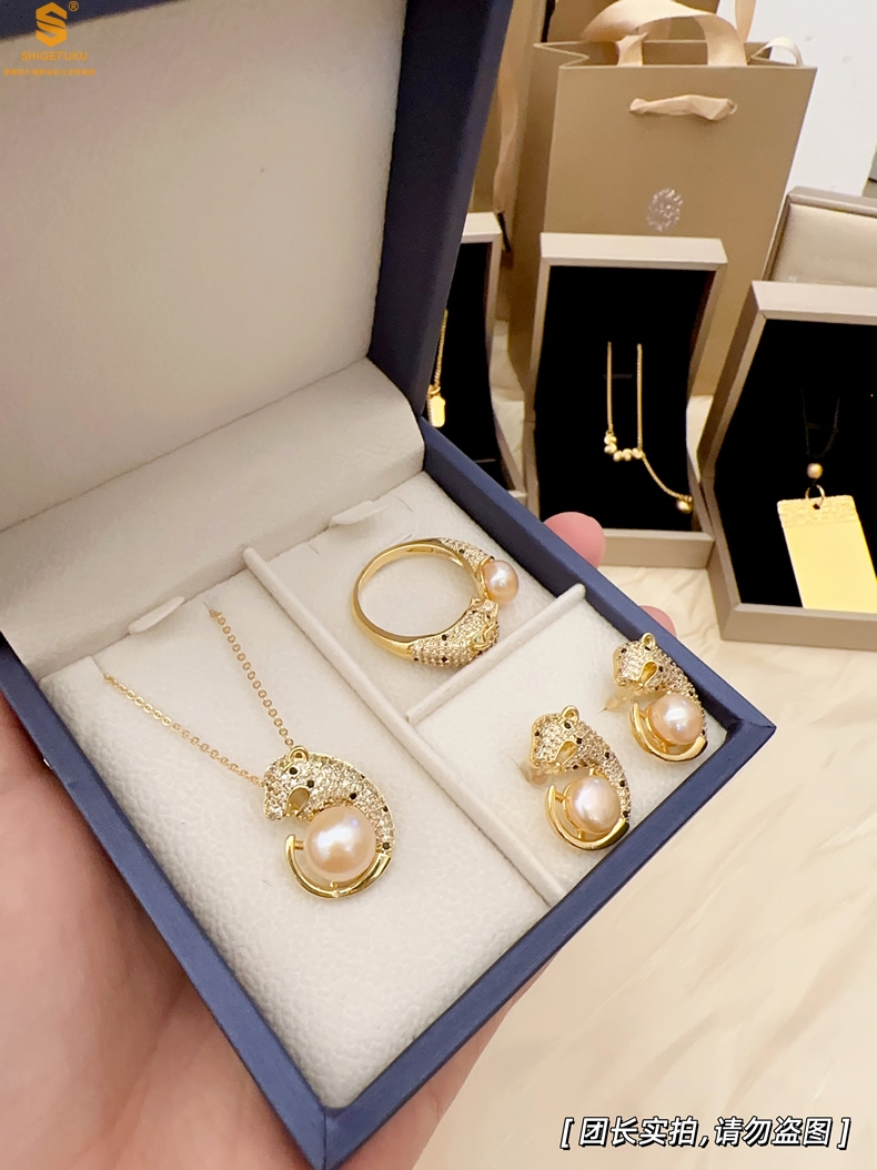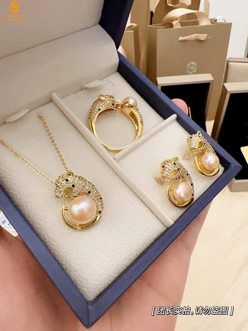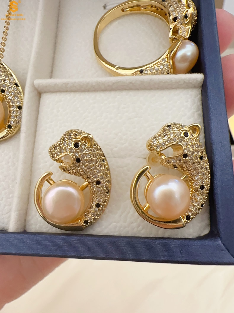 【品名】K金满钻珍珠猎豹套装