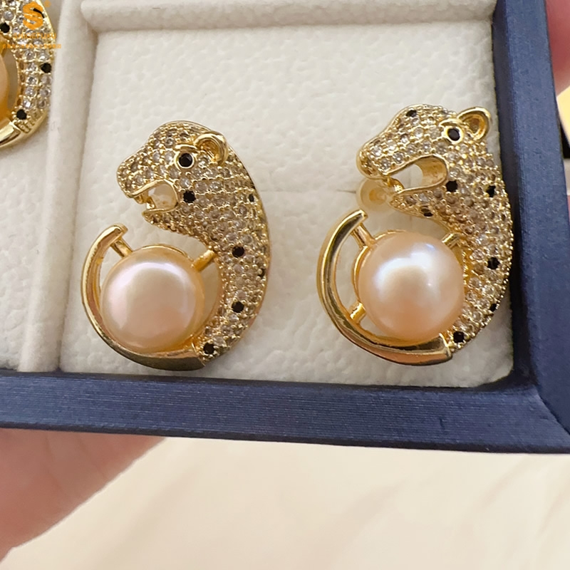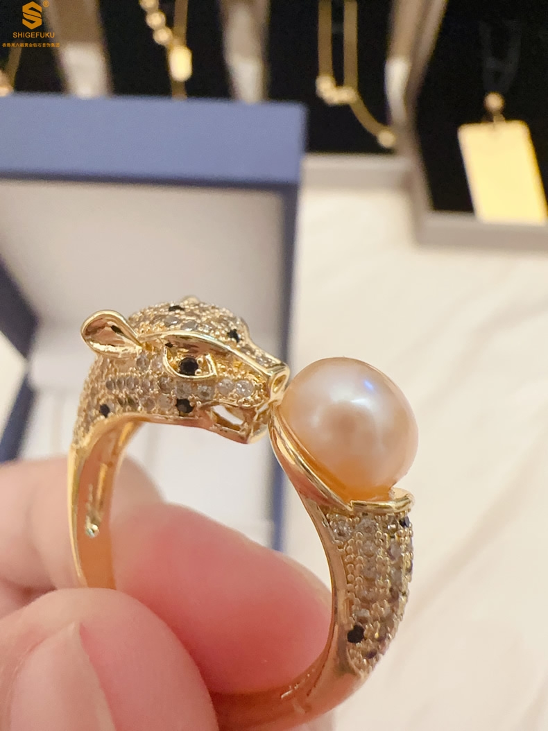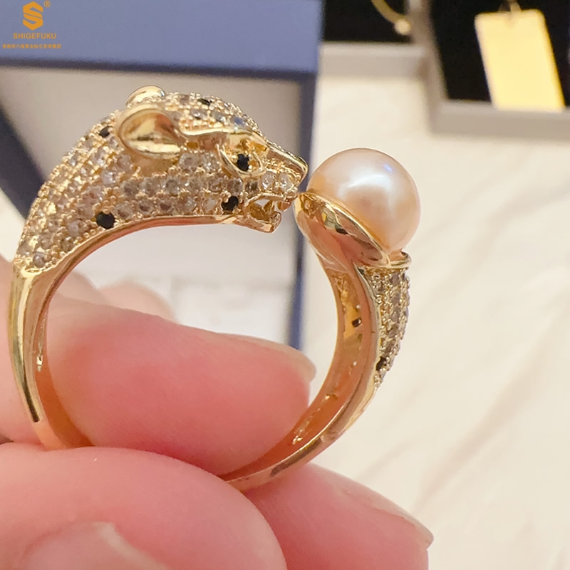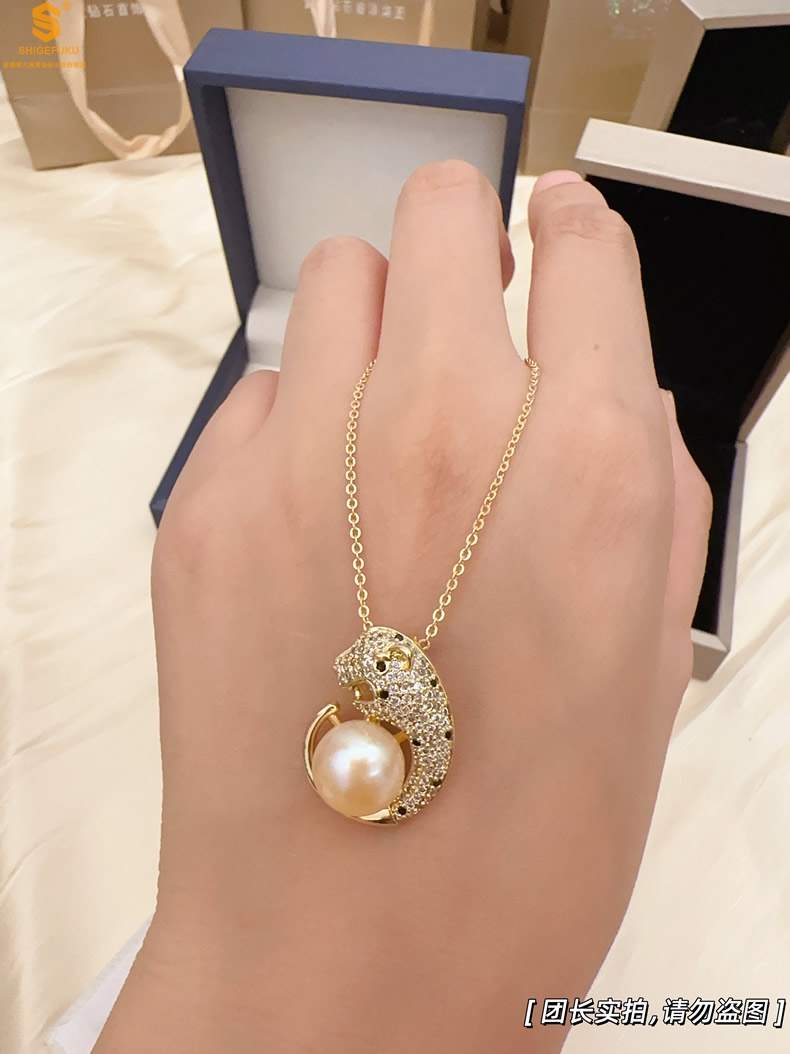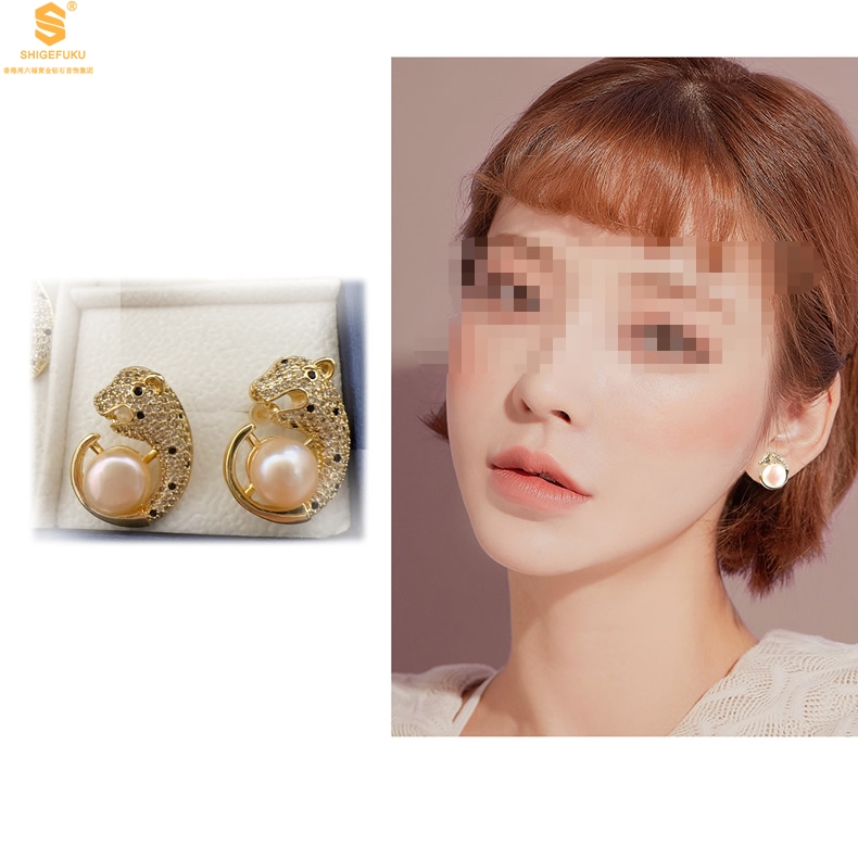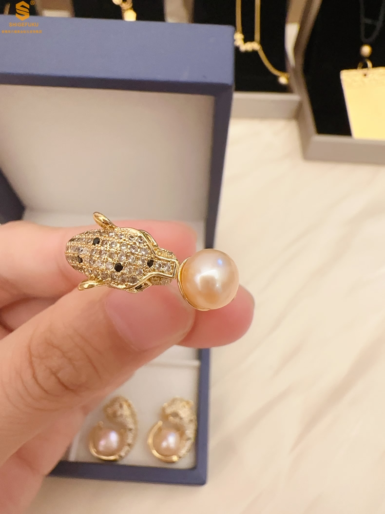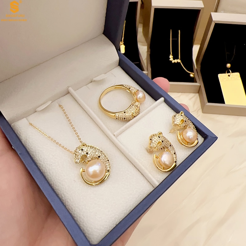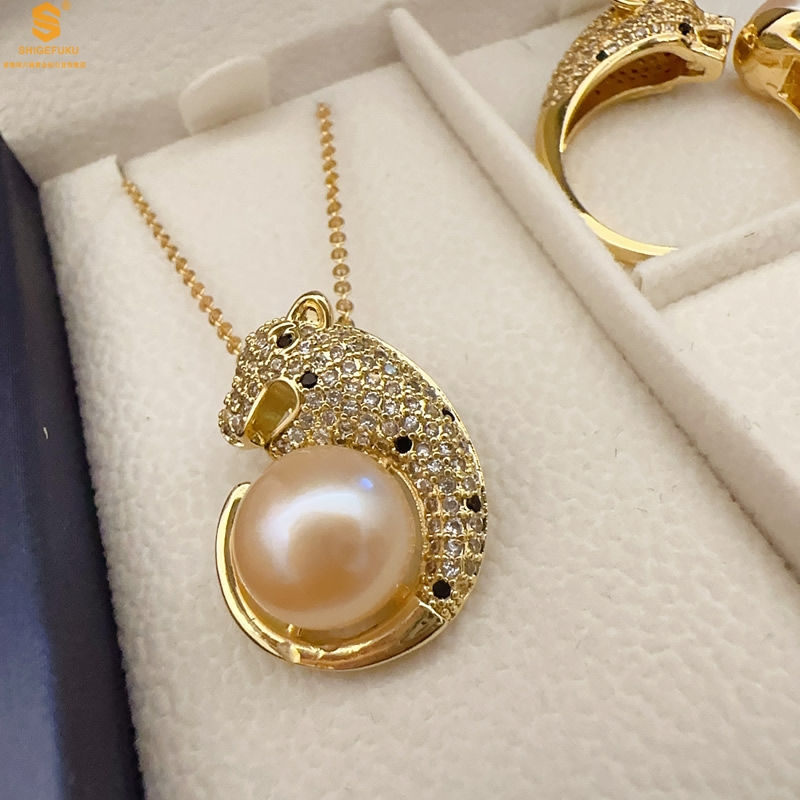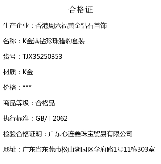【品名】K金满钻珍珠猎豹套装