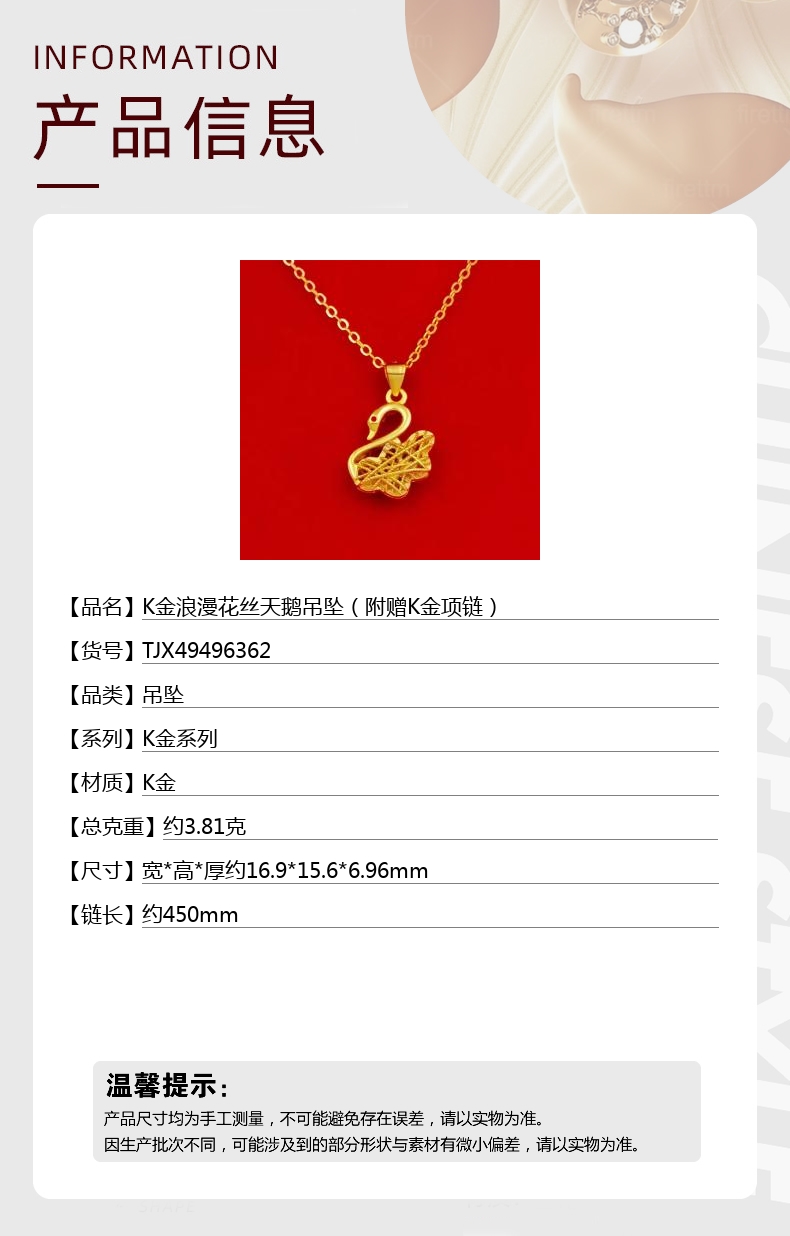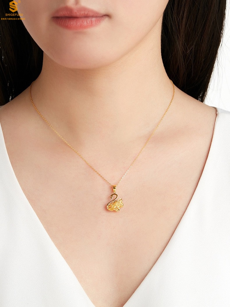 【品名】K金浪漫花丝天鹅吊坠(附赠K金项链)