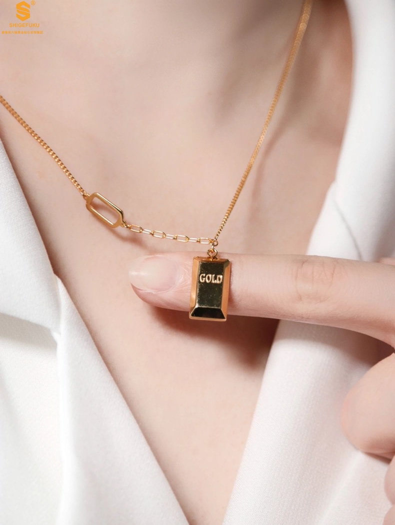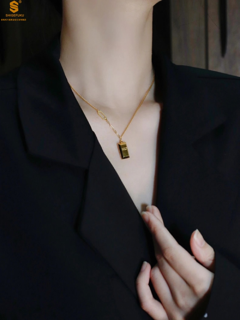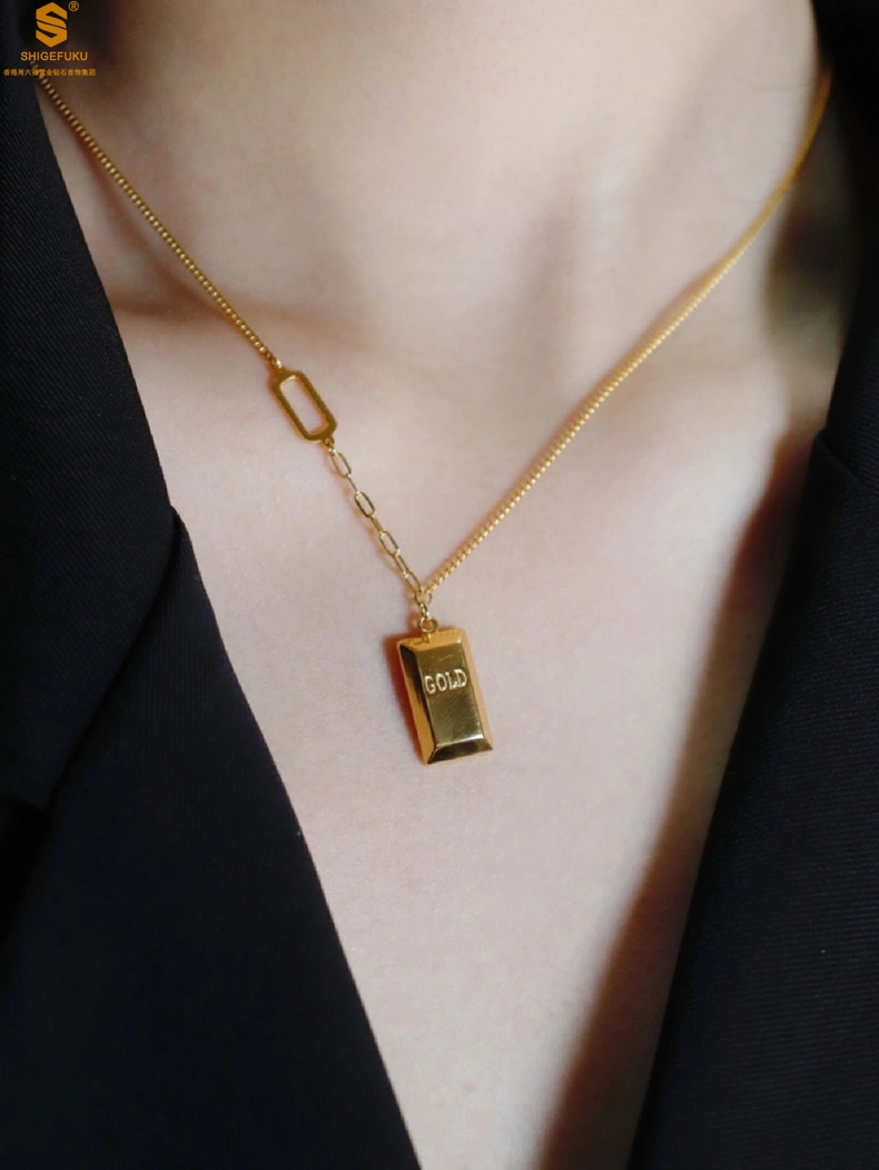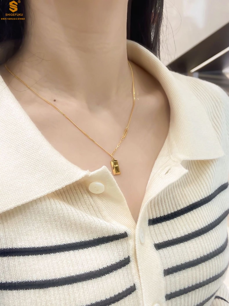 【品名】K金暴富金砖项链