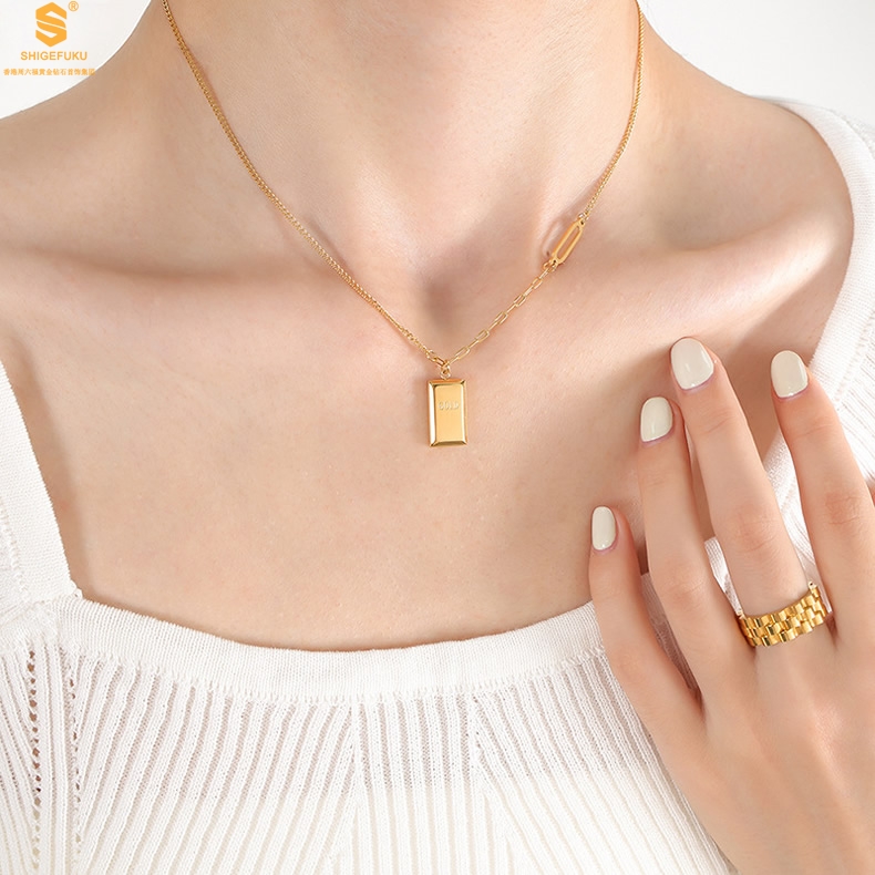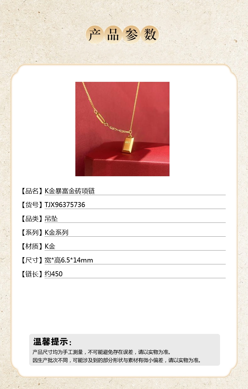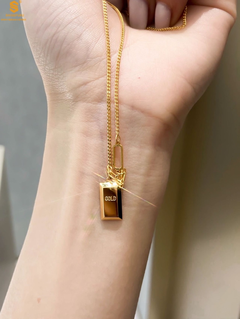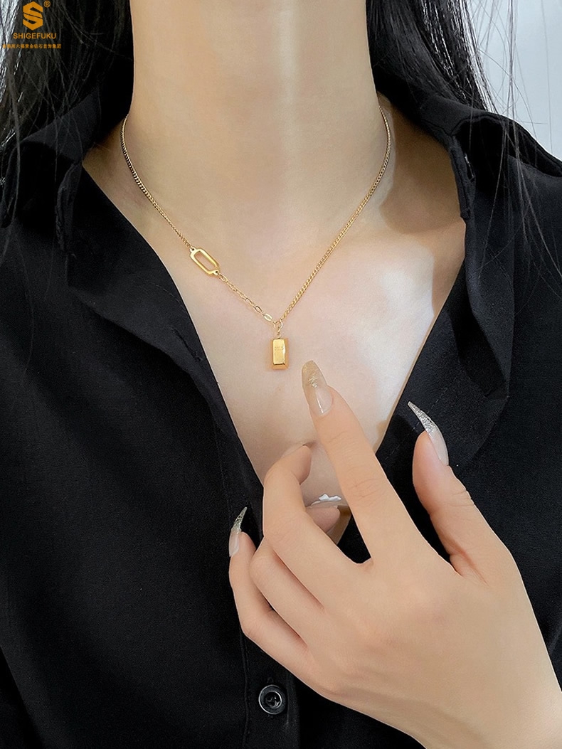 【品名】K金暴富金砖项链