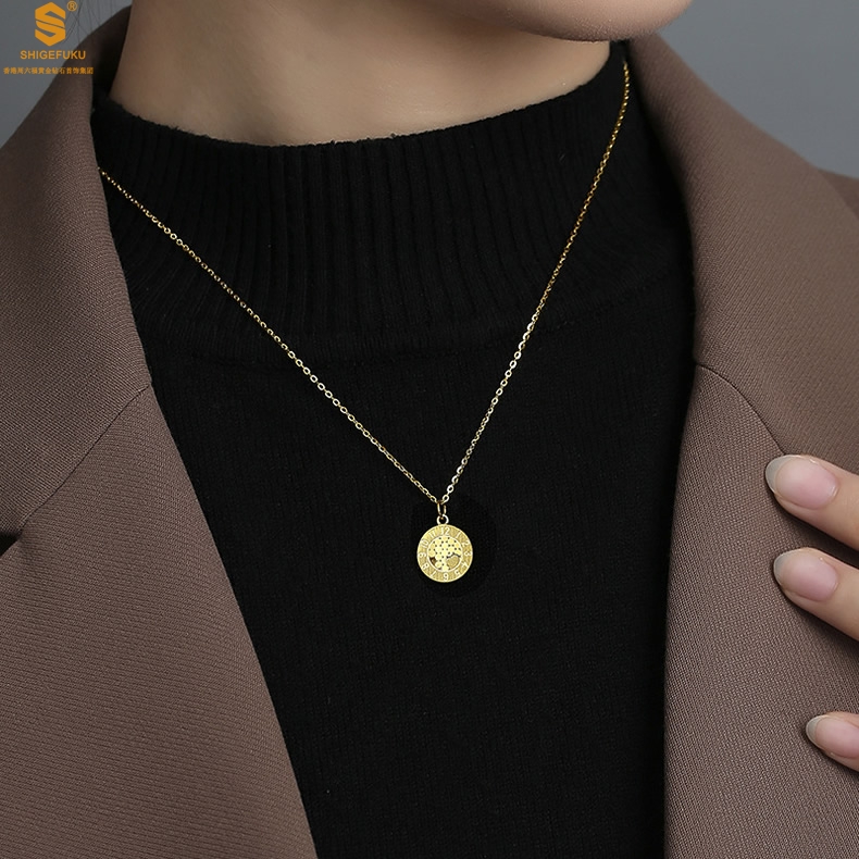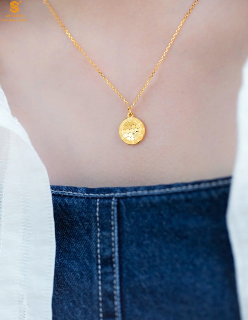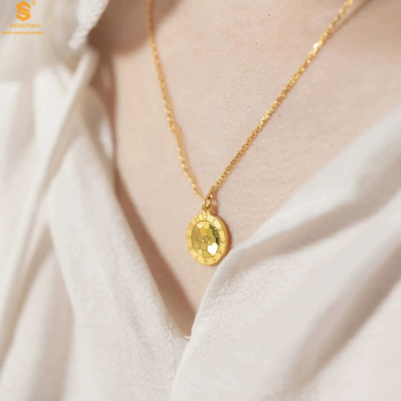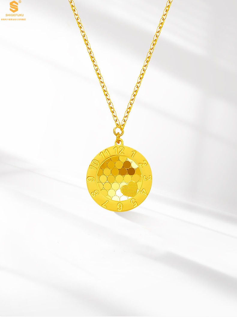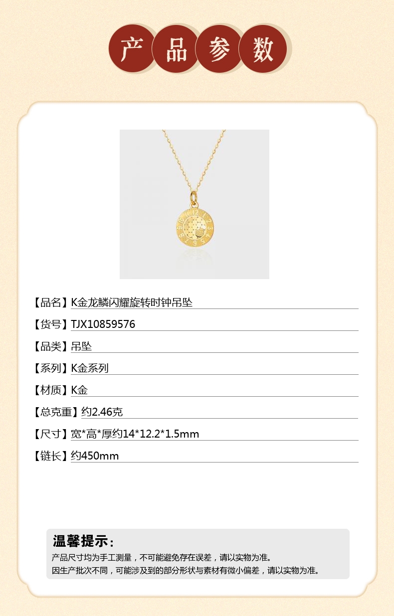 【品名】K金龙鳞闪耀旋转时钟吊坠