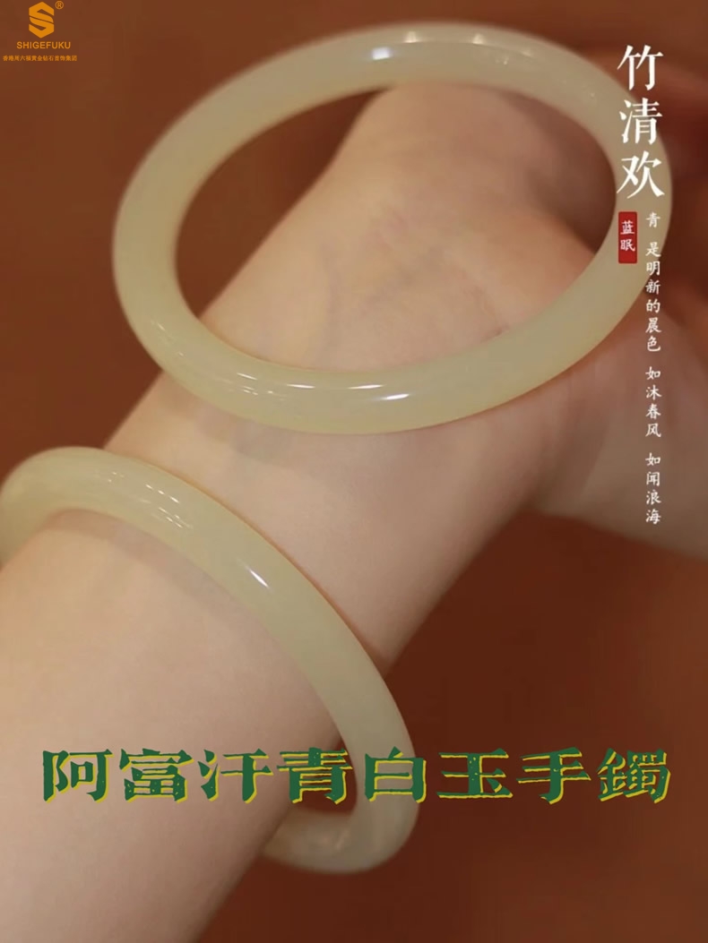 【品名】阿富汗青白玉手镯