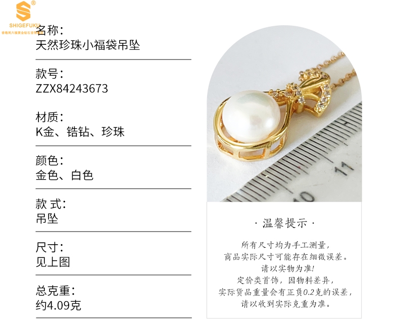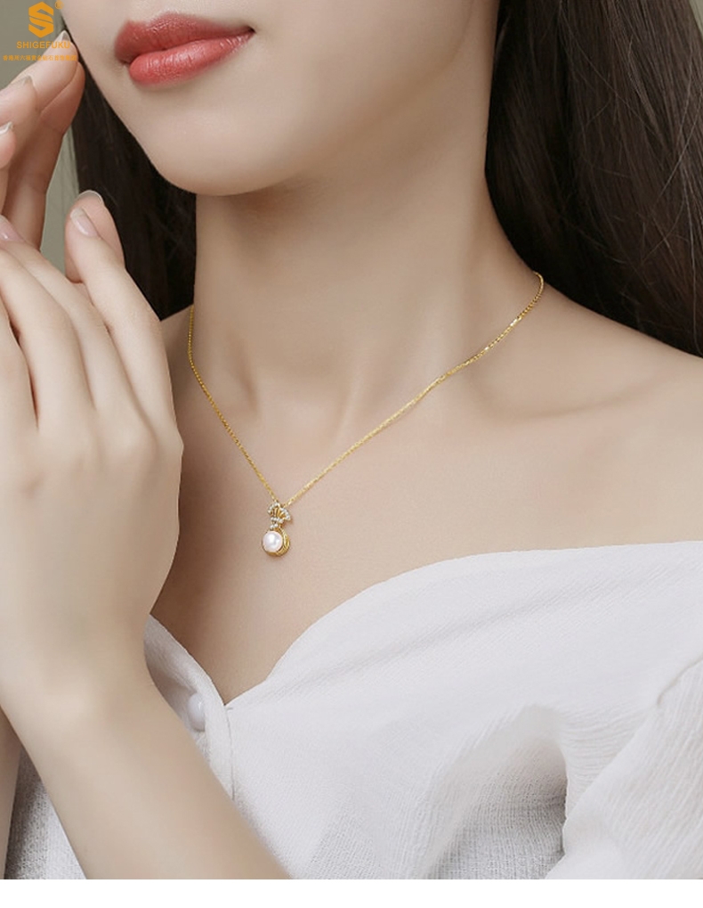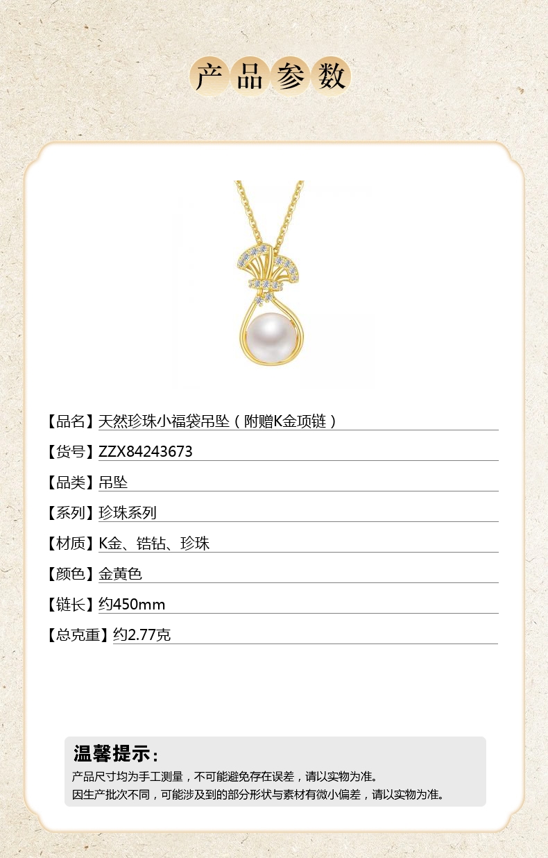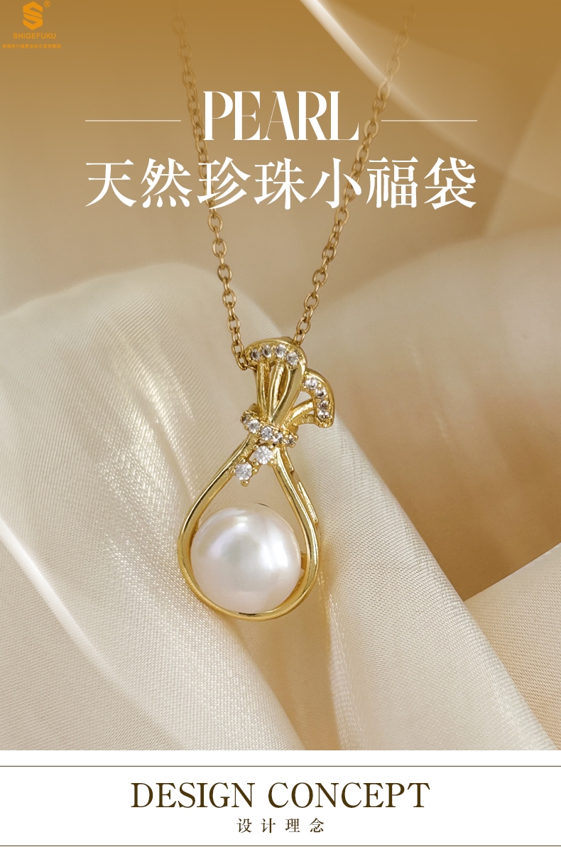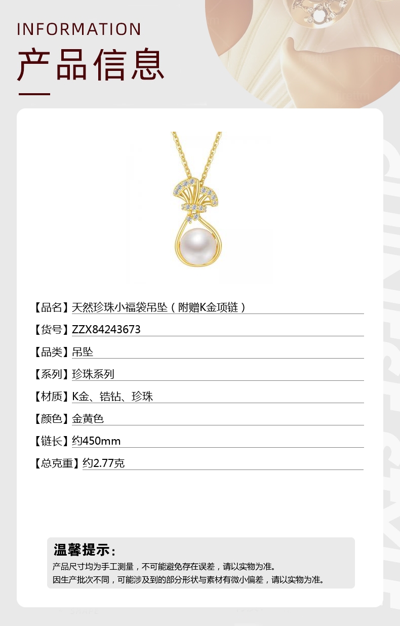 【品名】天然珍珠小福袋吊坠(附赠K金项链)