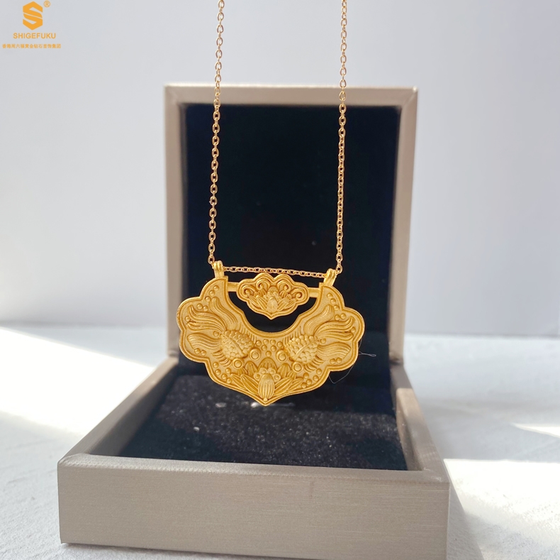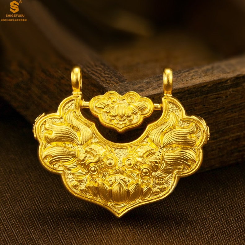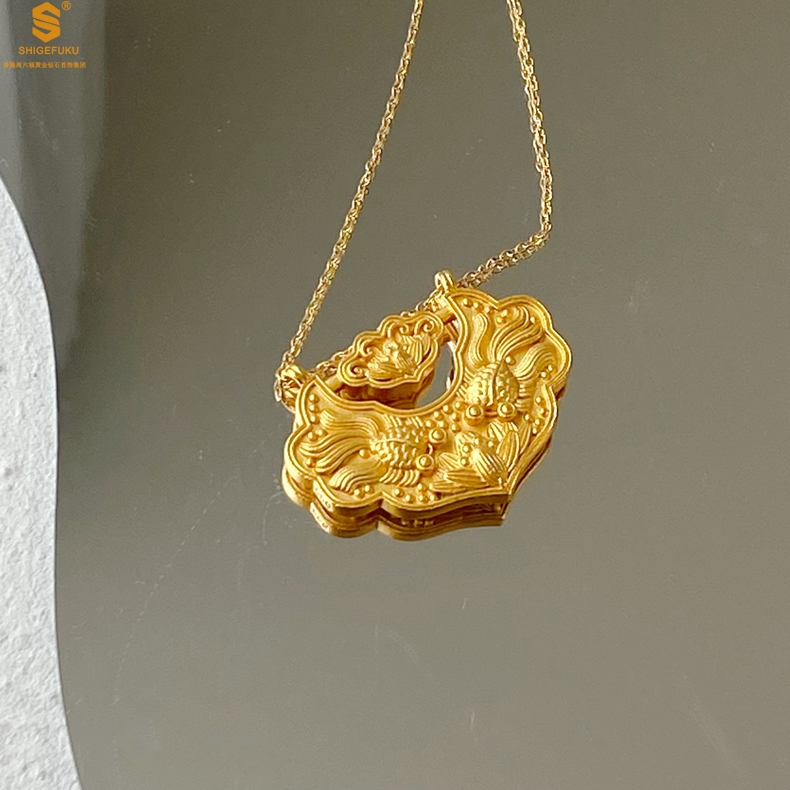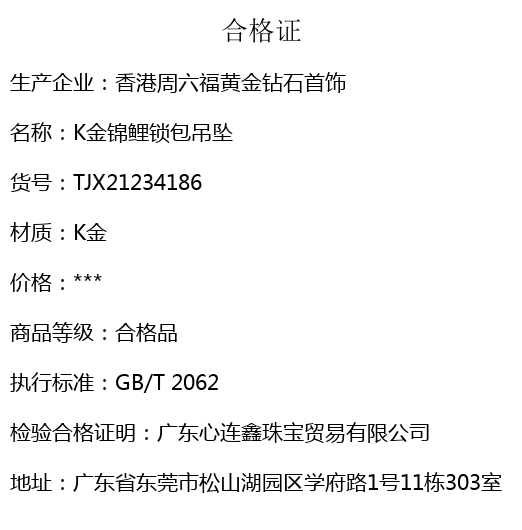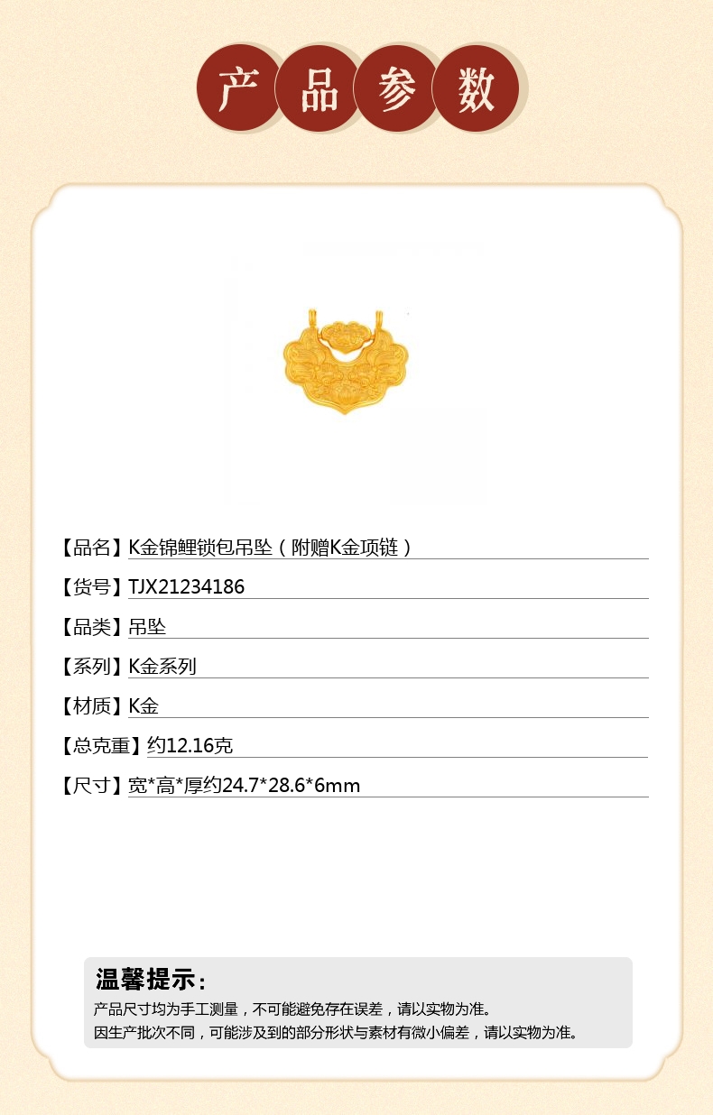 【品名】K金锦鲤锁包吊坠(附赠K金项链)