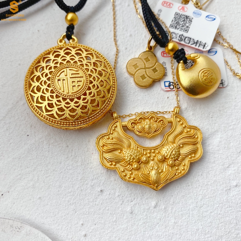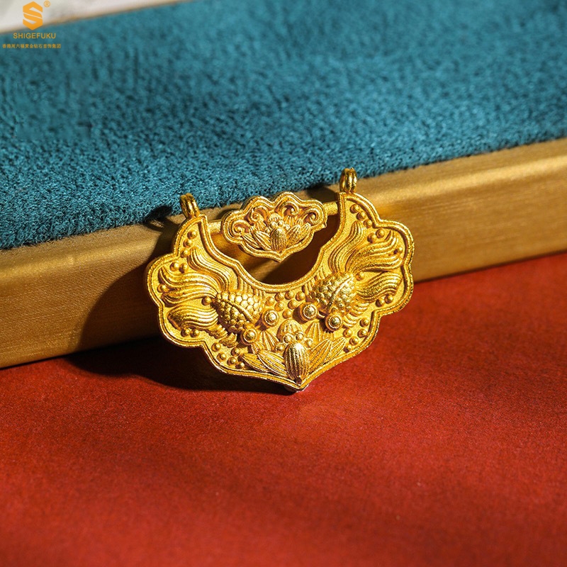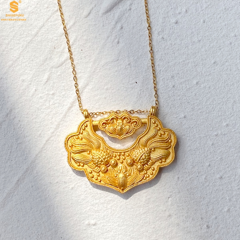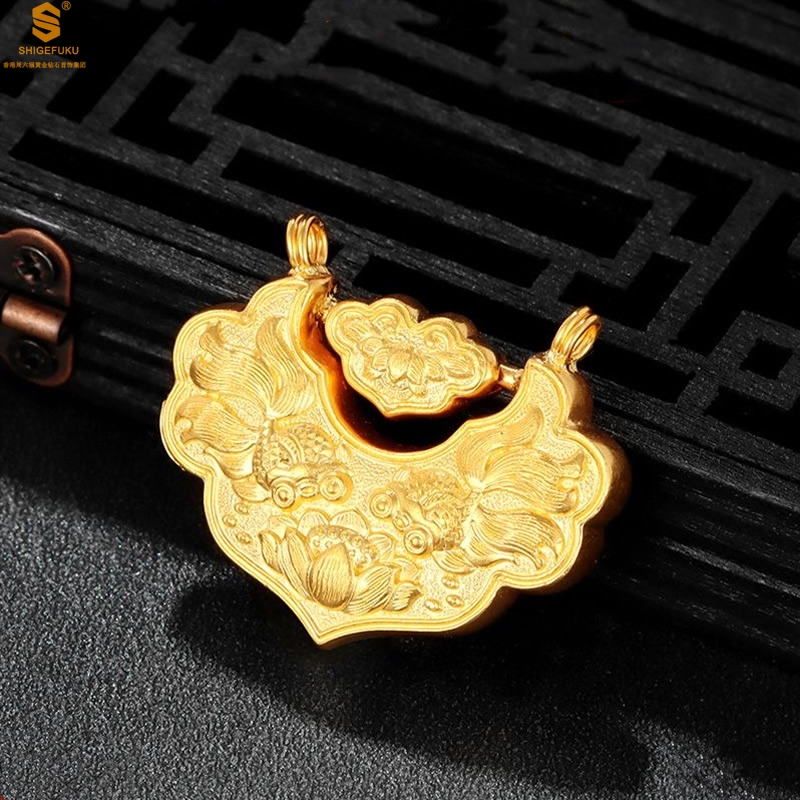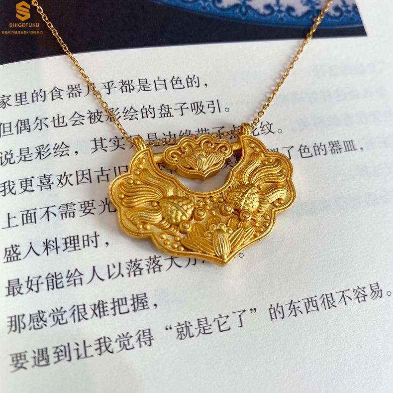 【品名】K金锦鲤锁包吊坠(附赠K金项链)