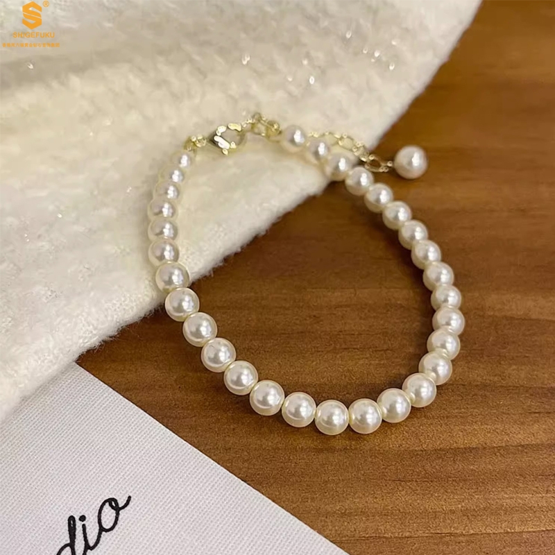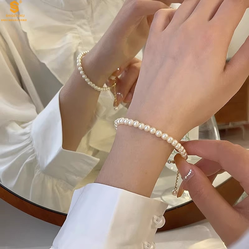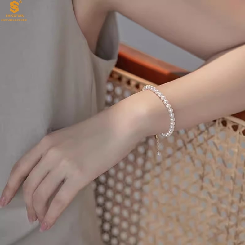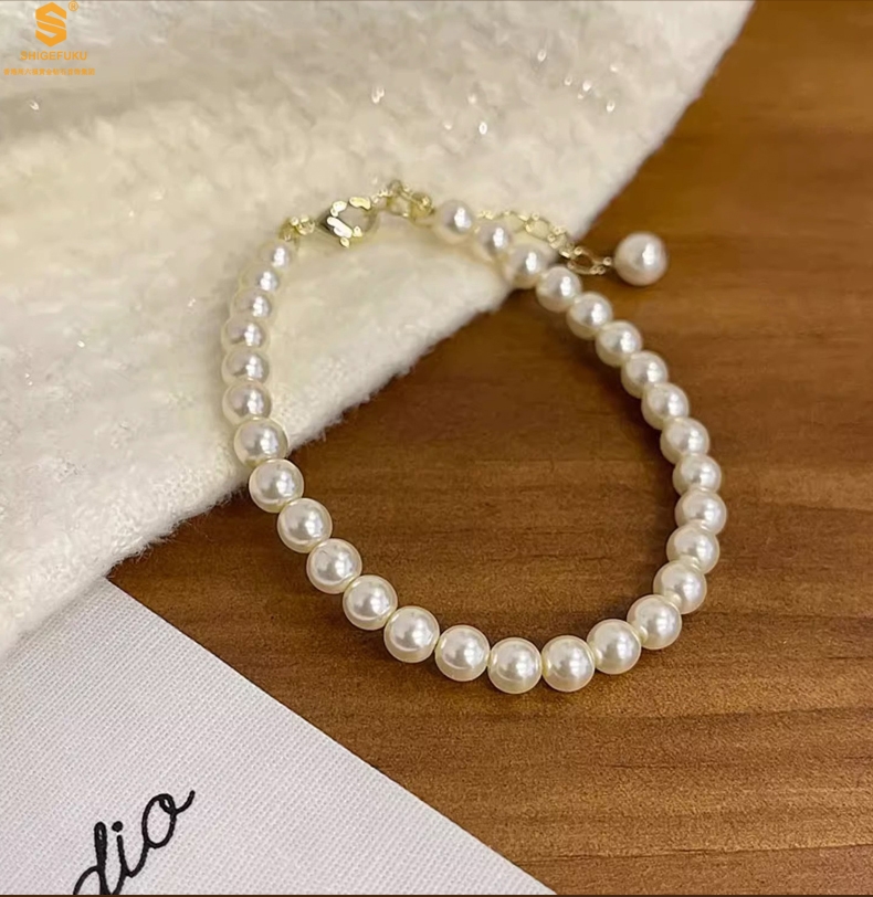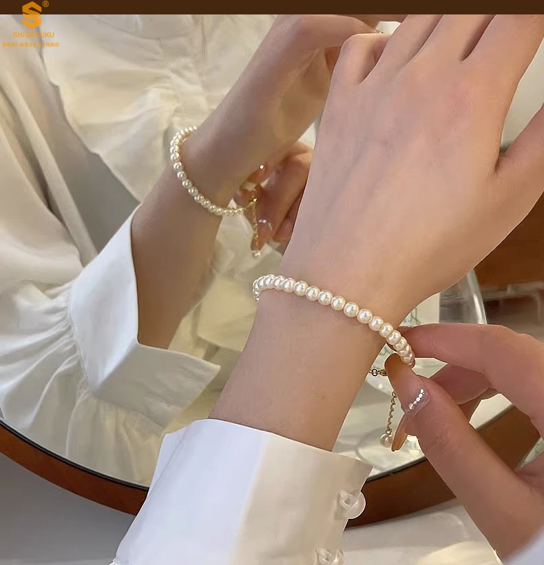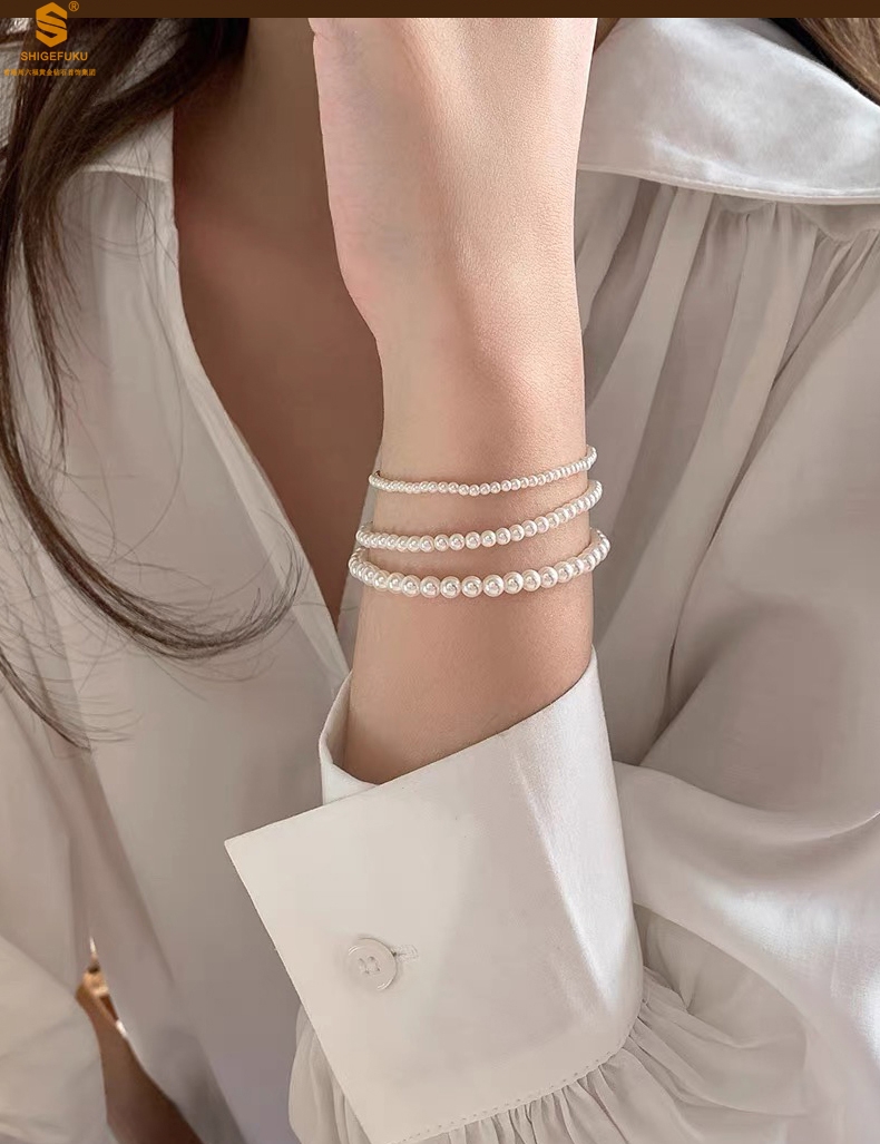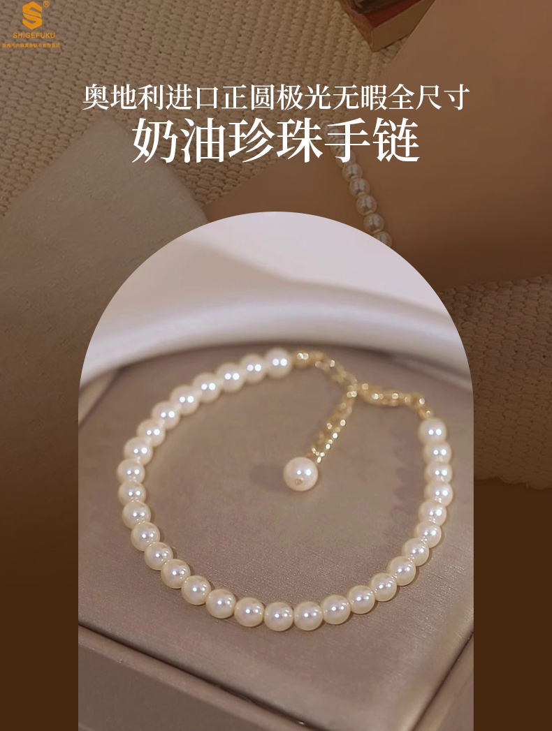 【品名】奥地利进口正圆极光无暇全尺寸奶油珍珠手链
