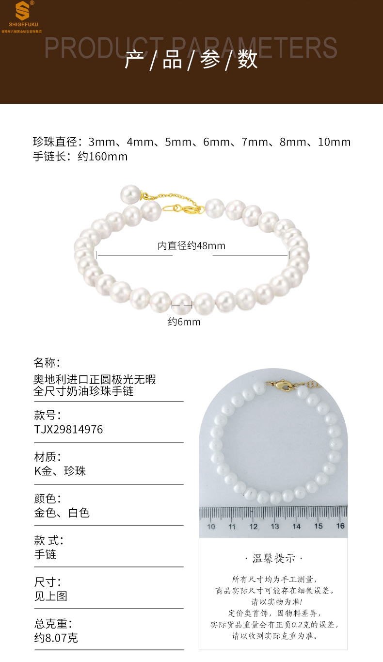 珍珠直径:3mm、4mm、5mm、6mm、7mm、8mm、10mm