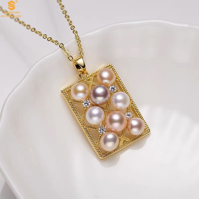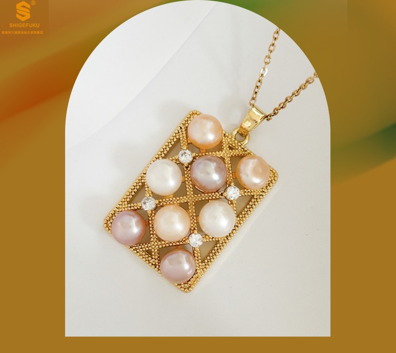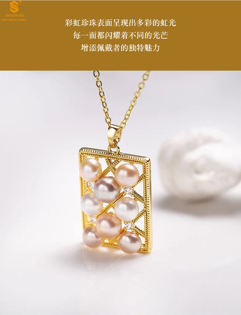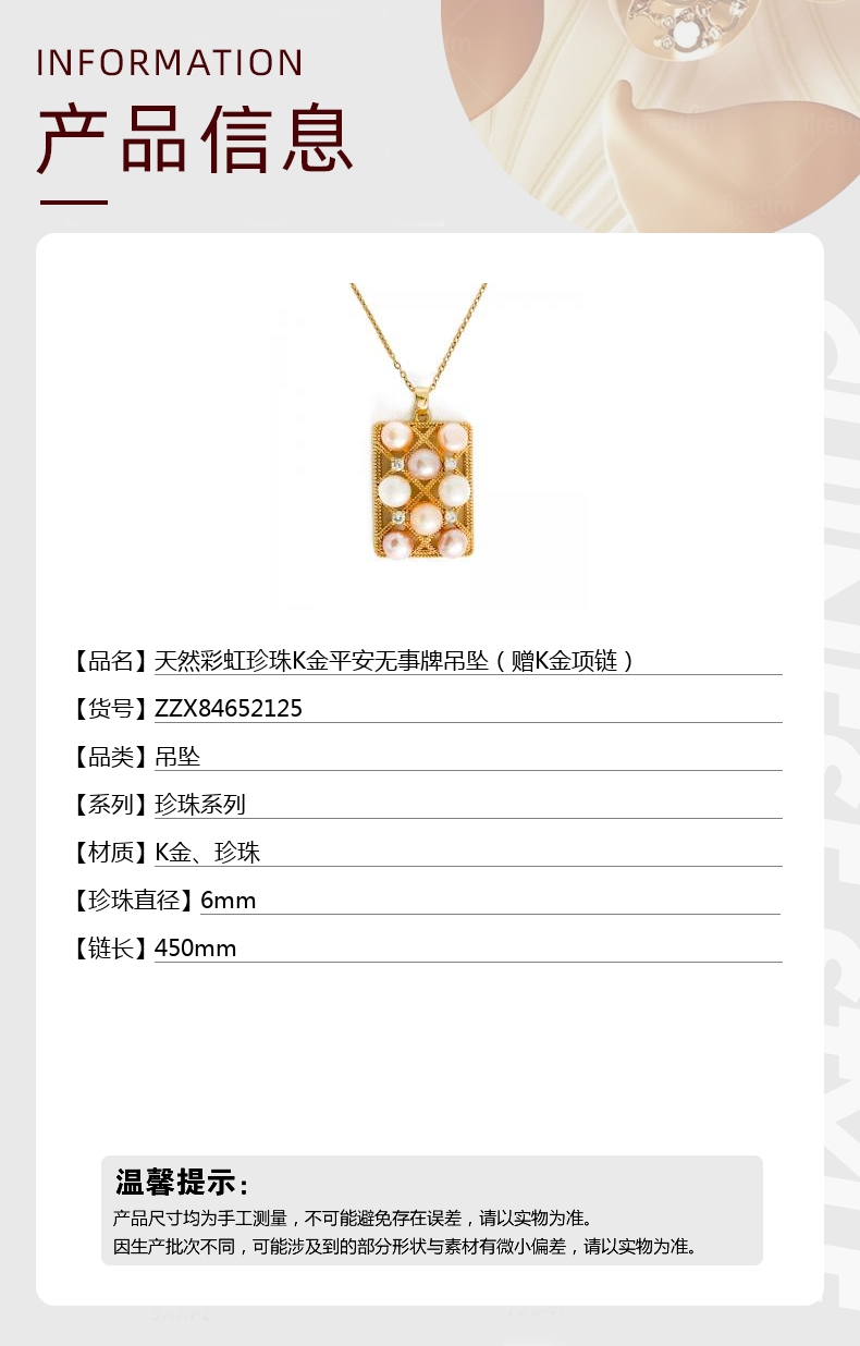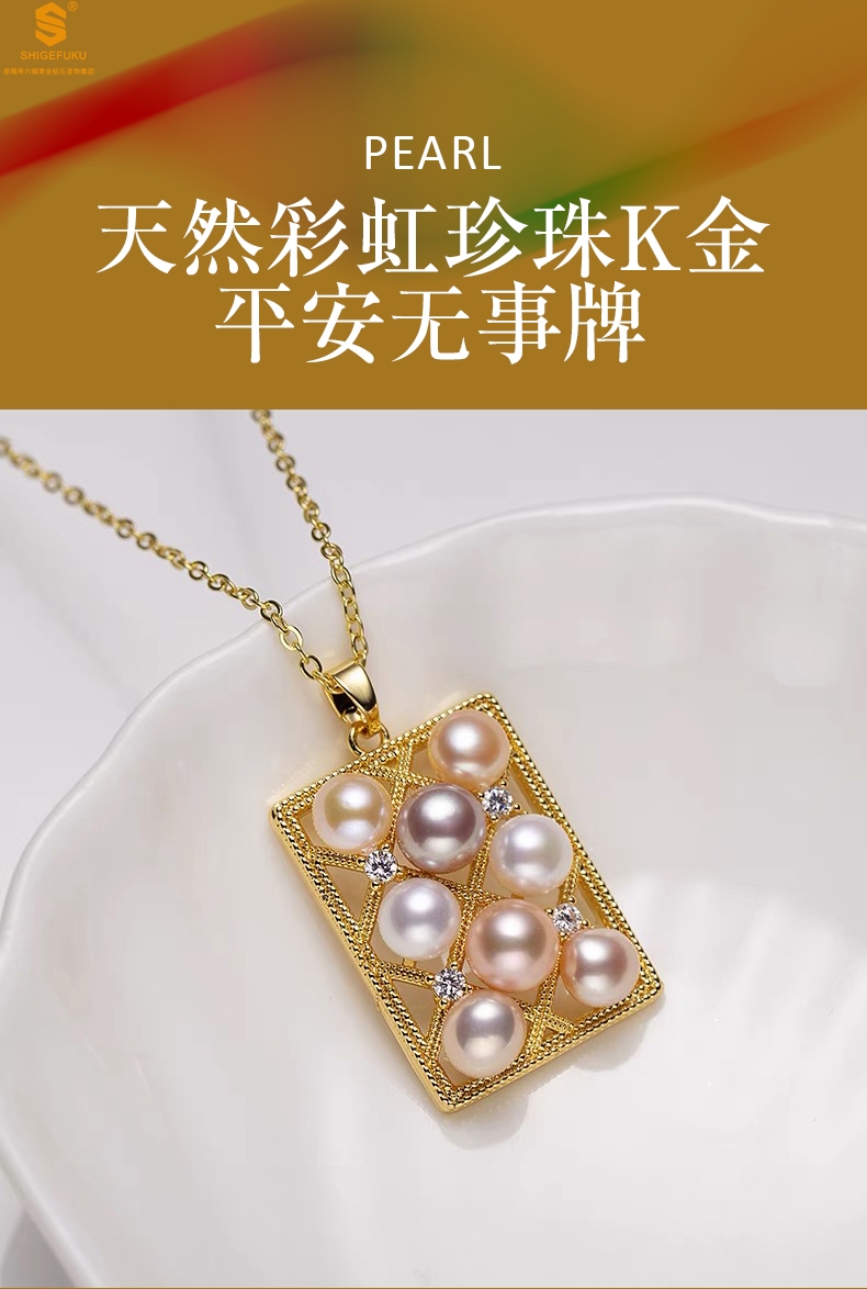 【品名】天然彩虹珍珠K金平安无事牌吊坠(赠K金项链)