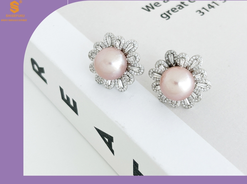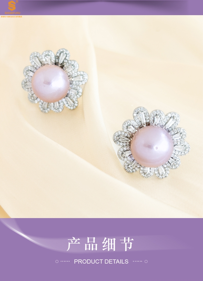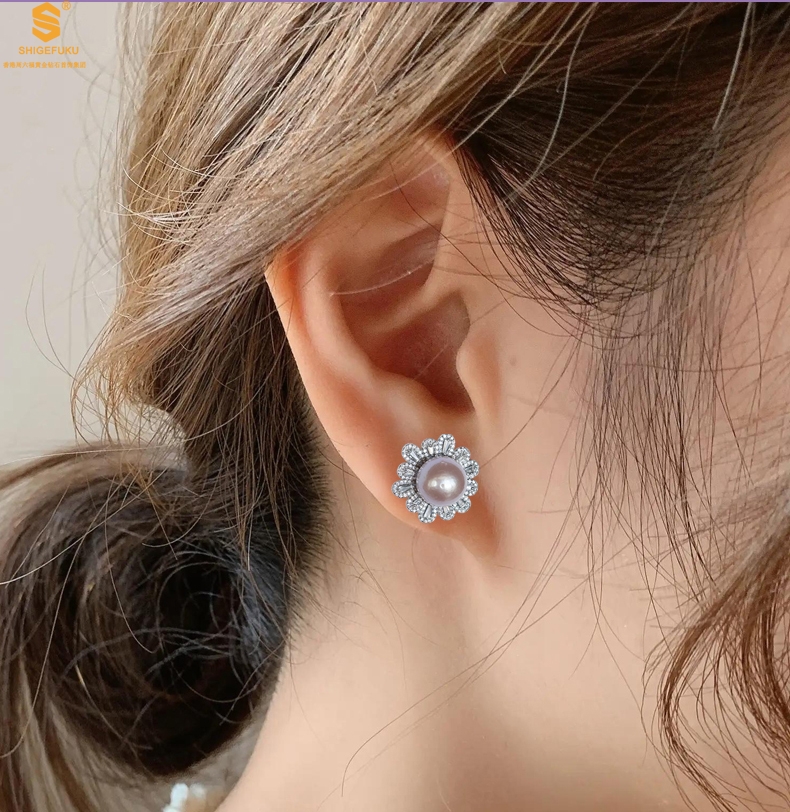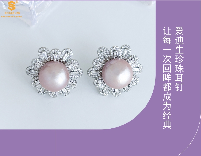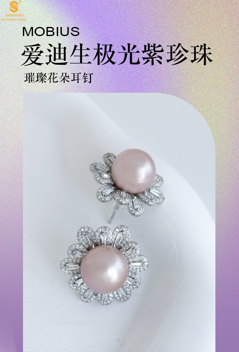 【品名】爱迪生极光紫珍珠璀璨花朵耳钉(对)