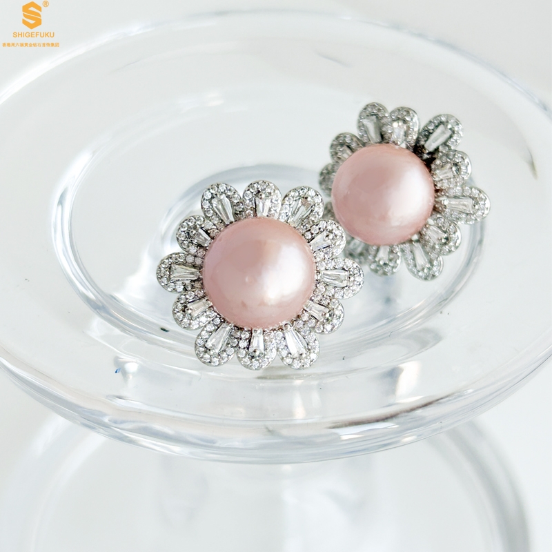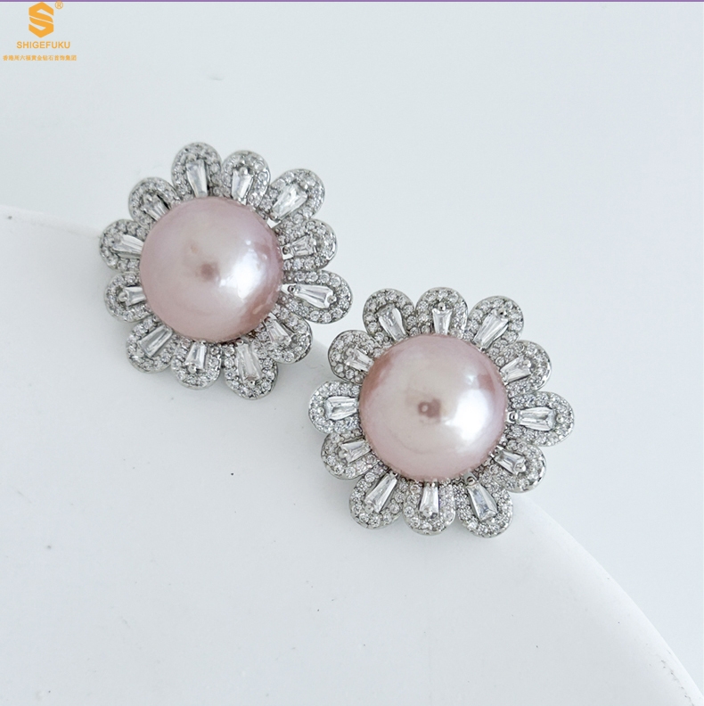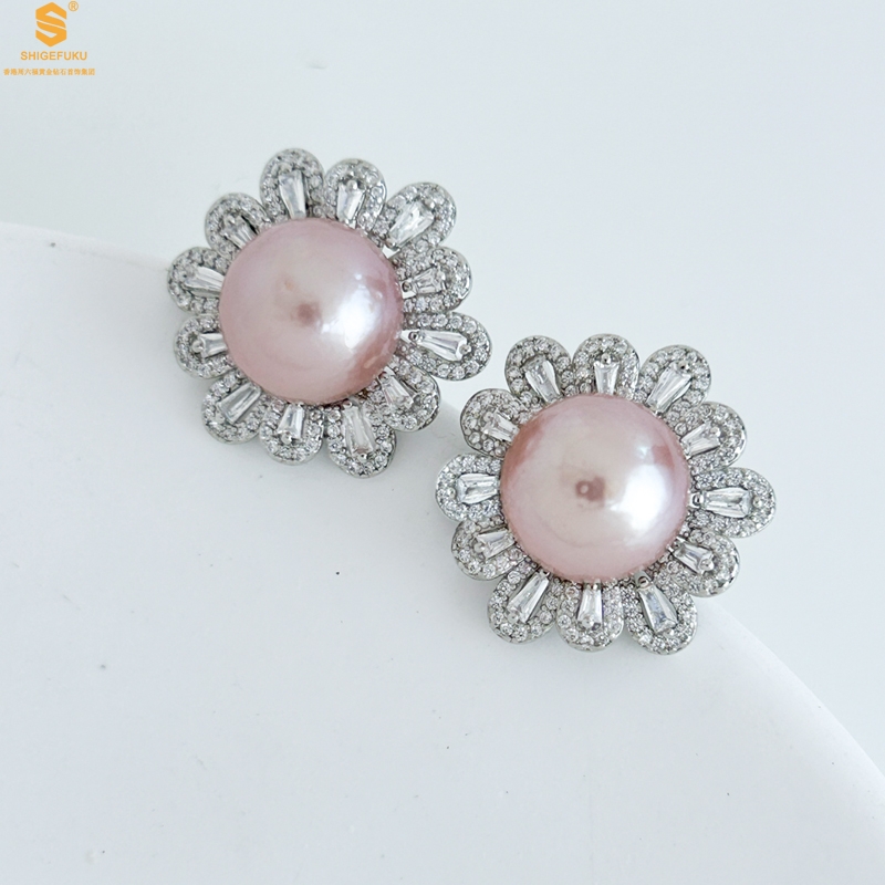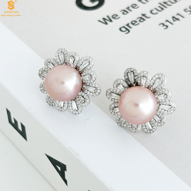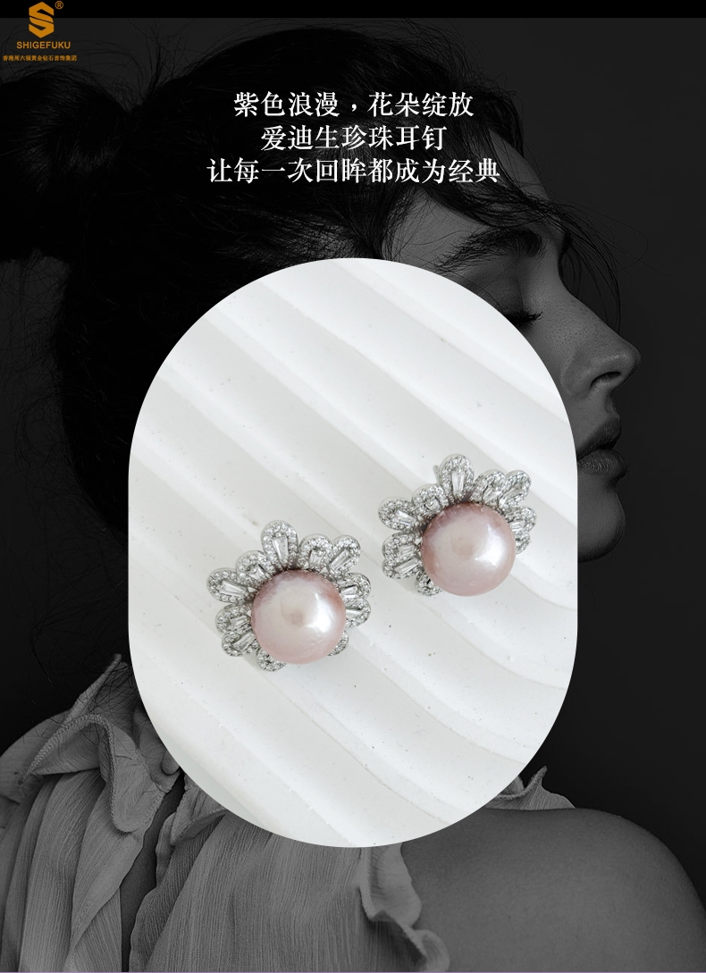 【品名】爱迪生极光紫珍珠璀璨花朵耳钉(对)