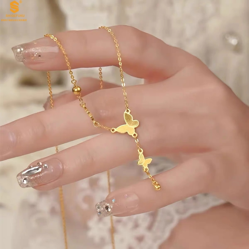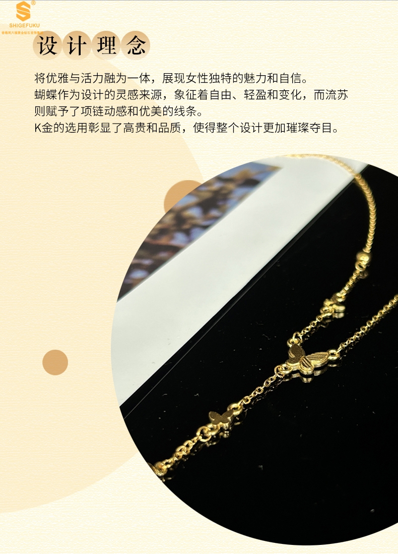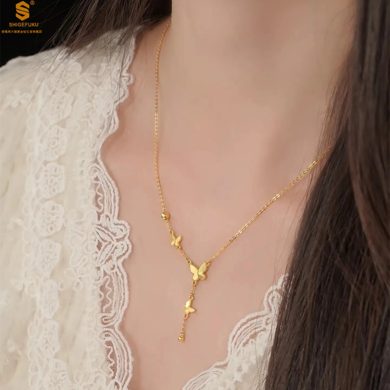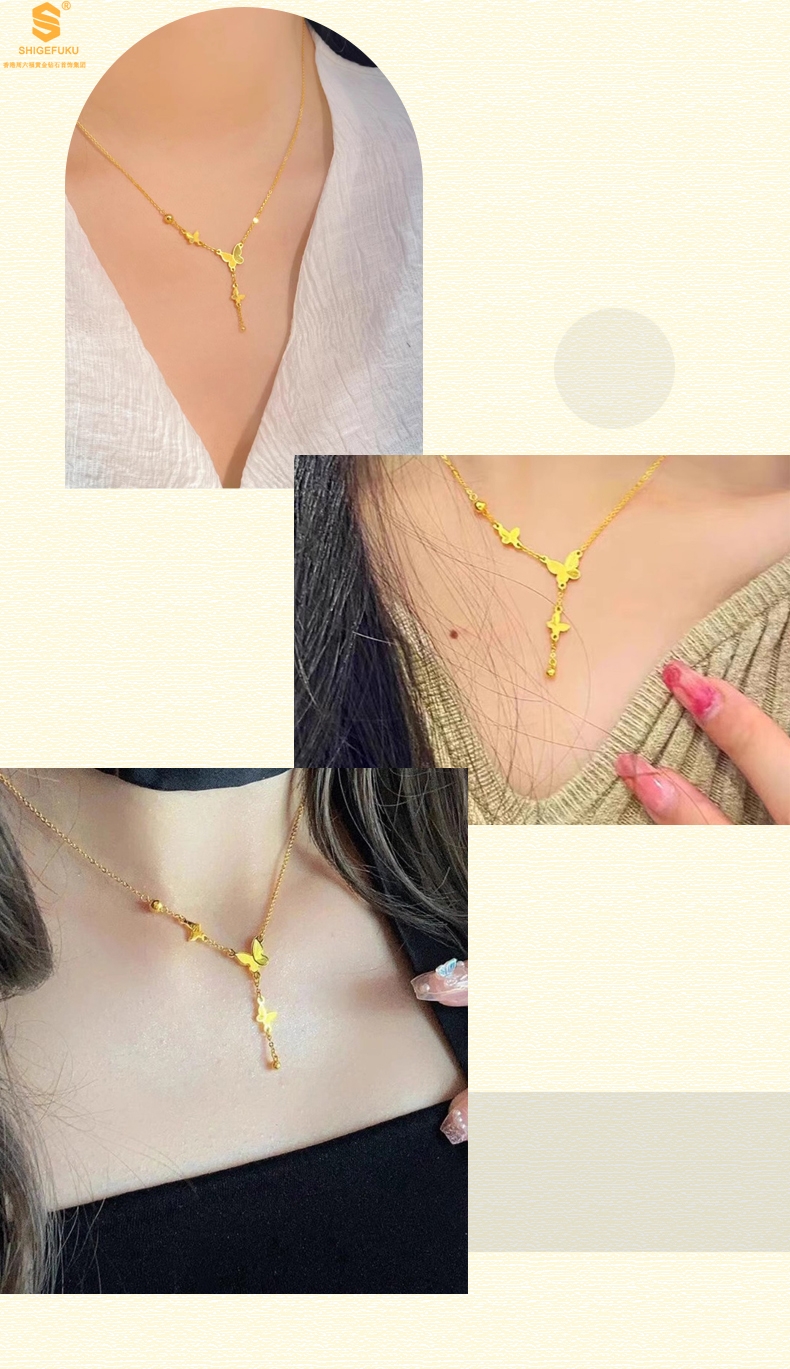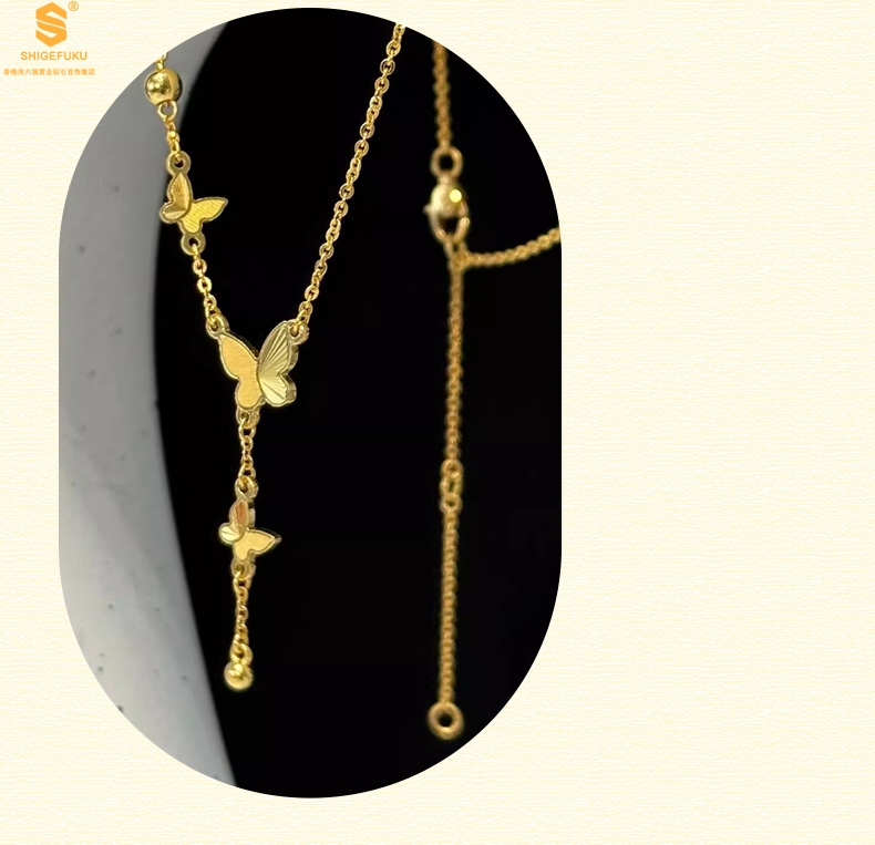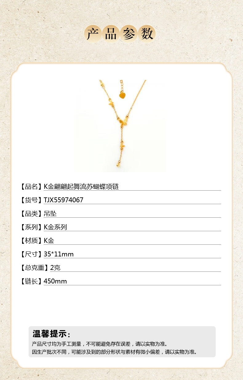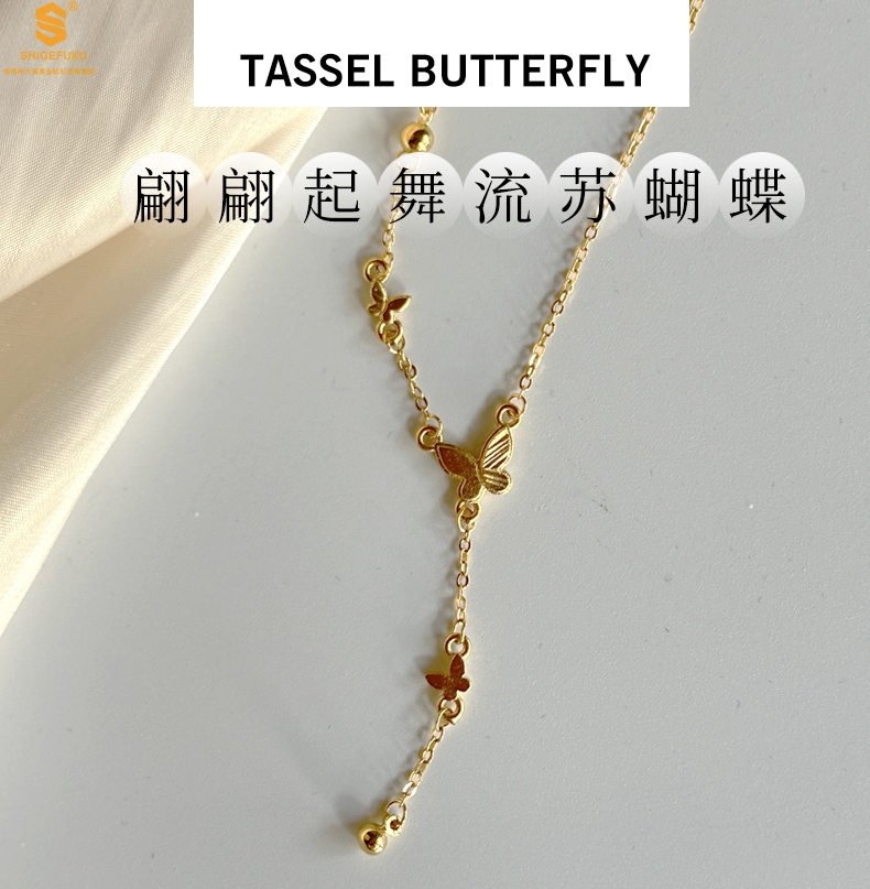 【品名】K金翩翩起舞流苏蝴蝶项链