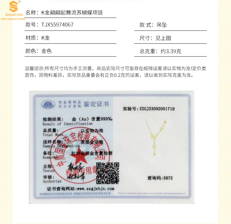 【套装包含】首饰+礼品盒+礼品袋+国检证书+质保单+价签