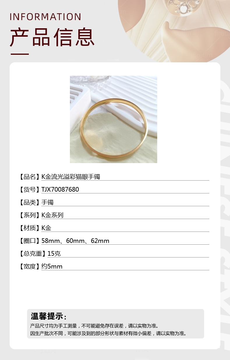 【品名】K金流光溢彩猫眼手镯