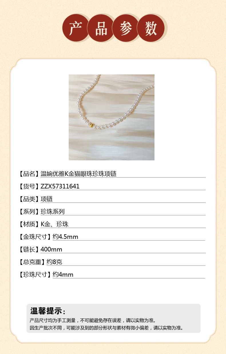 【品名】温婉优雅K金猫眼珠珍珠项链