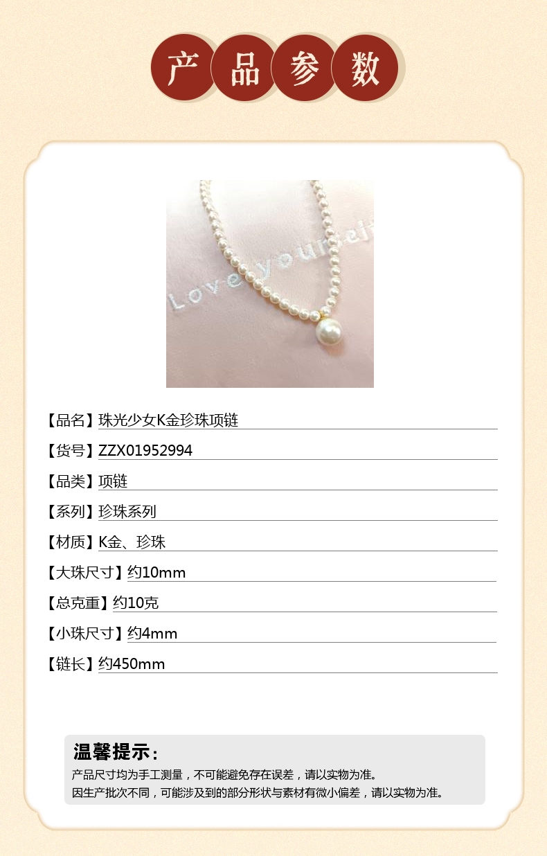 【品名】珠光少女K金珍珠项链