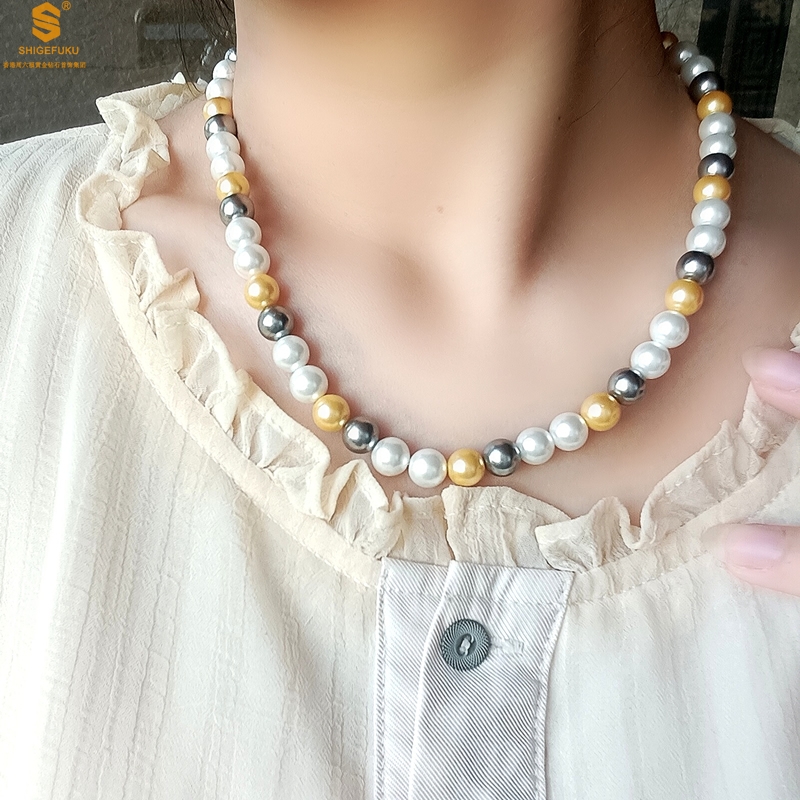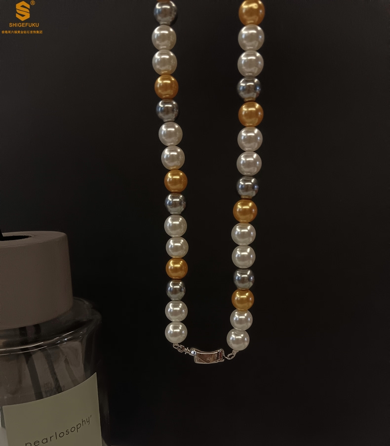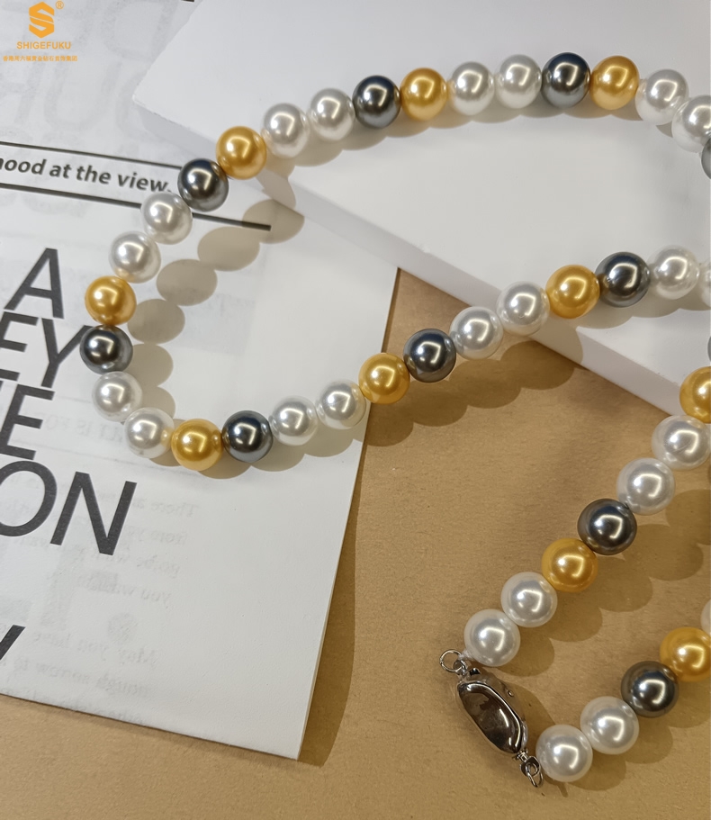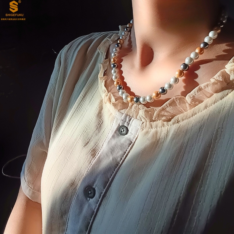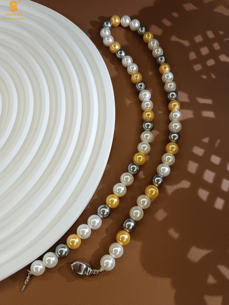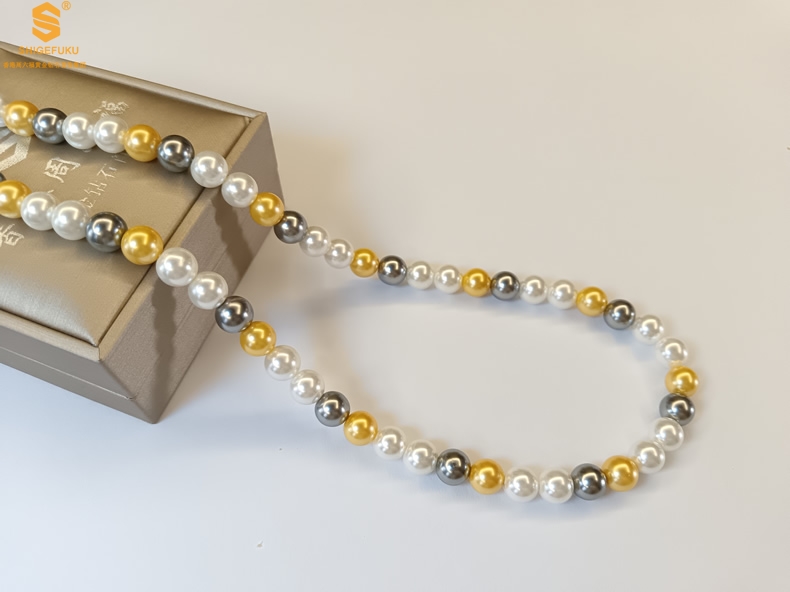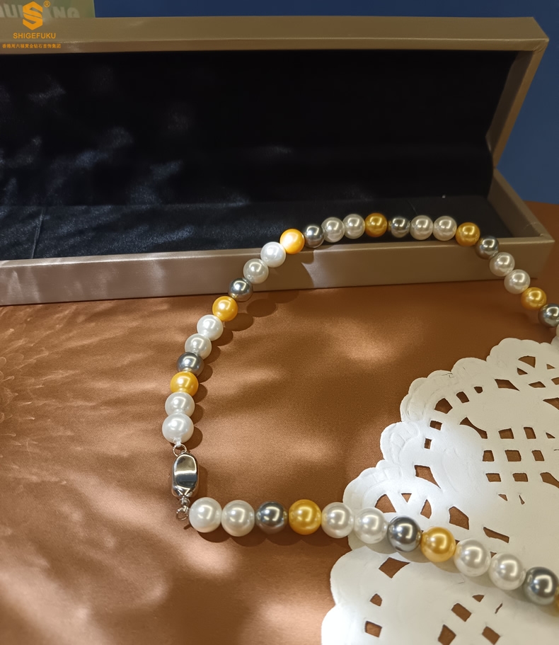 【品名】彩虹多巴胺南洋进口珍珠项链8mm