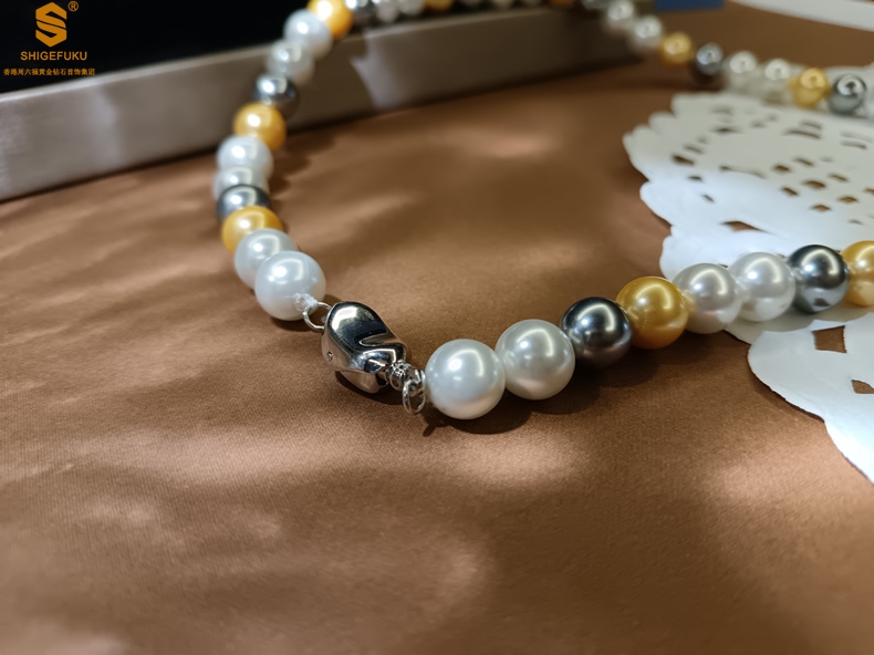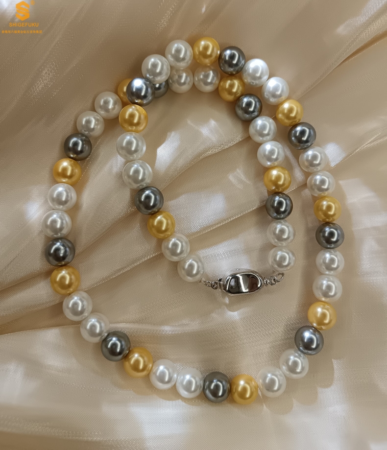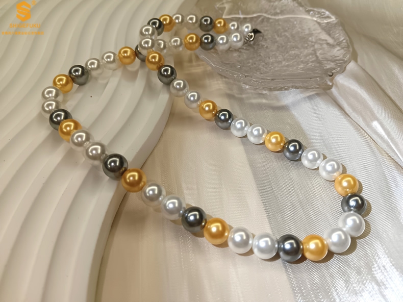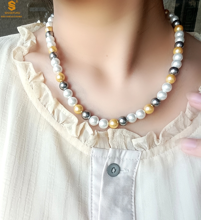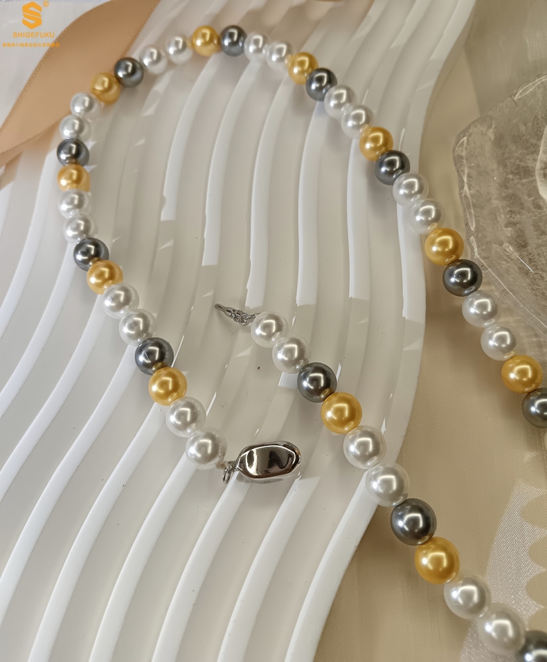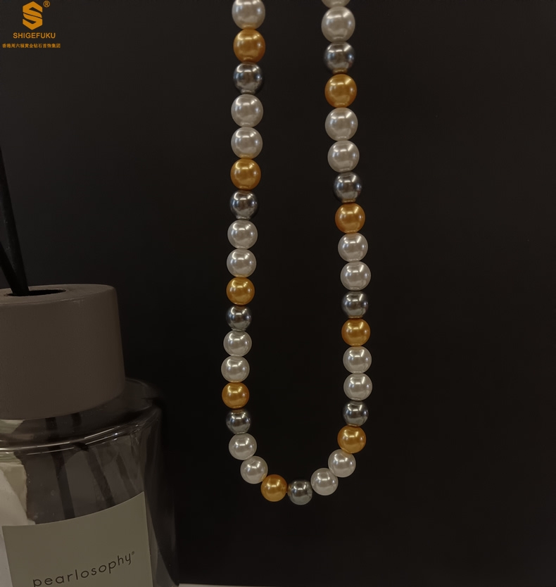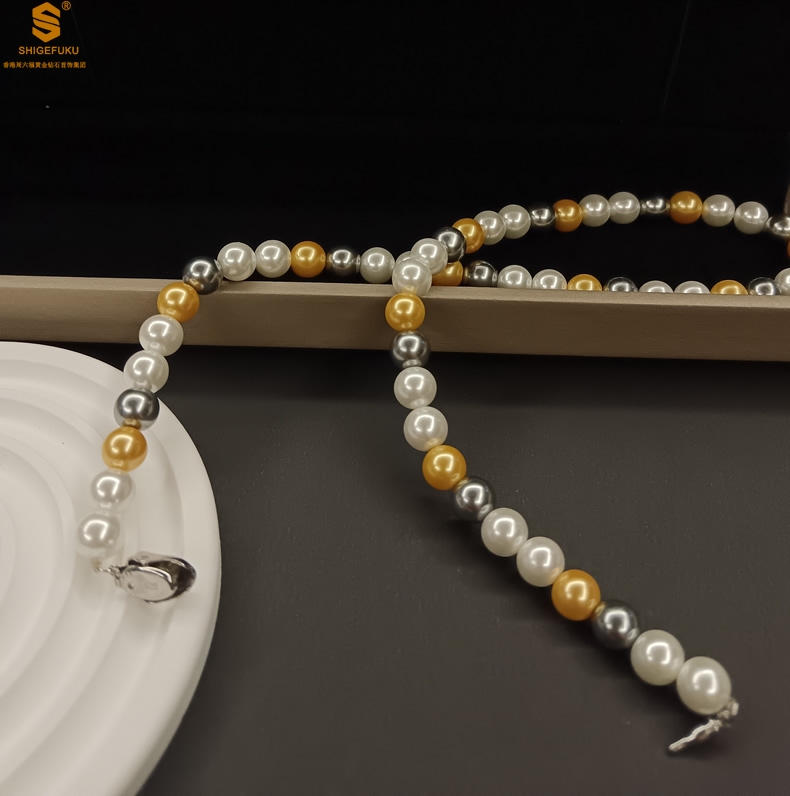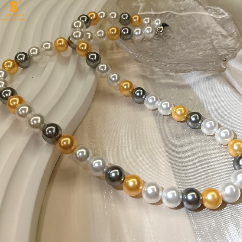 【品名】彩虹多巴胺南洋进口珍珠项链8mm