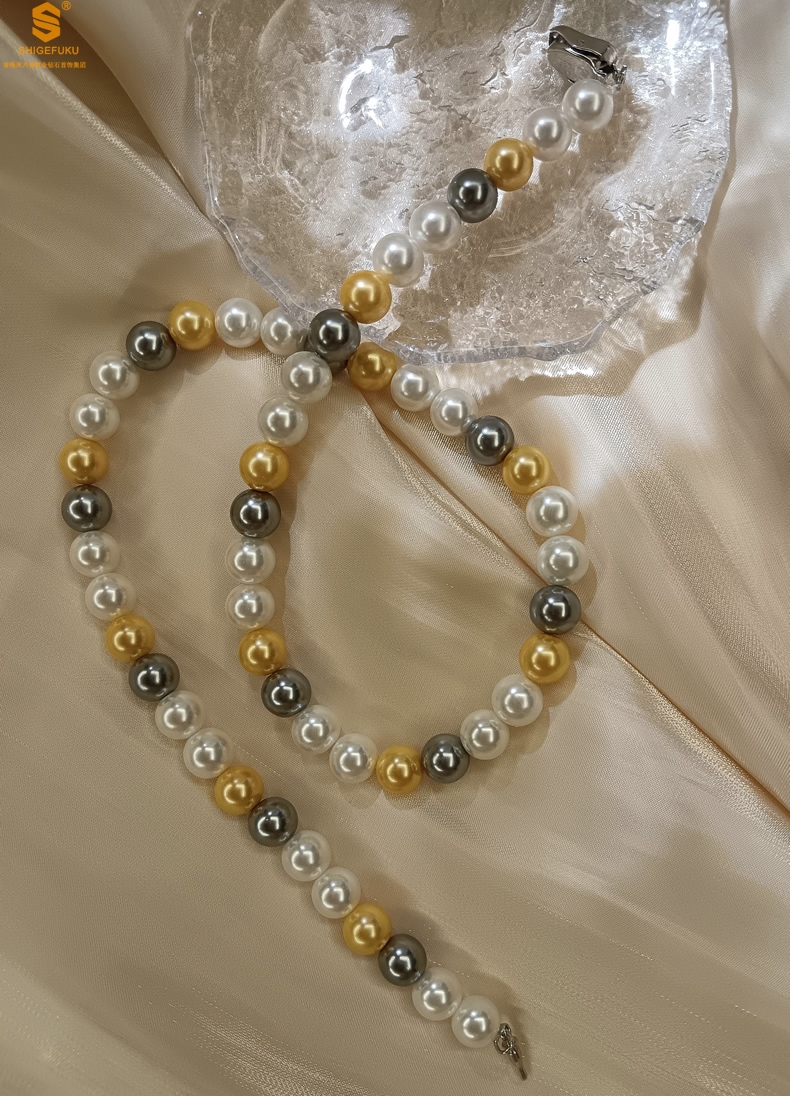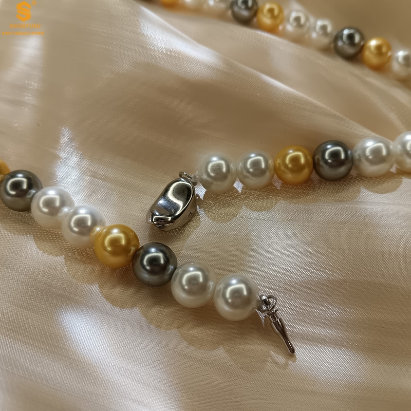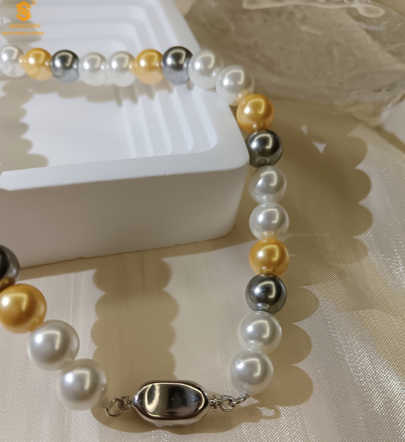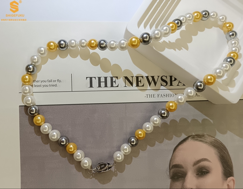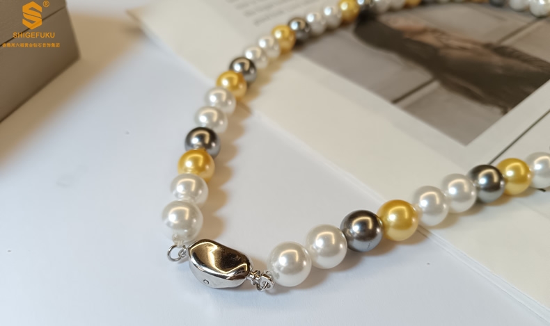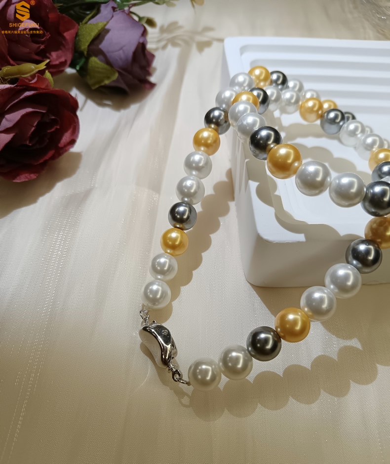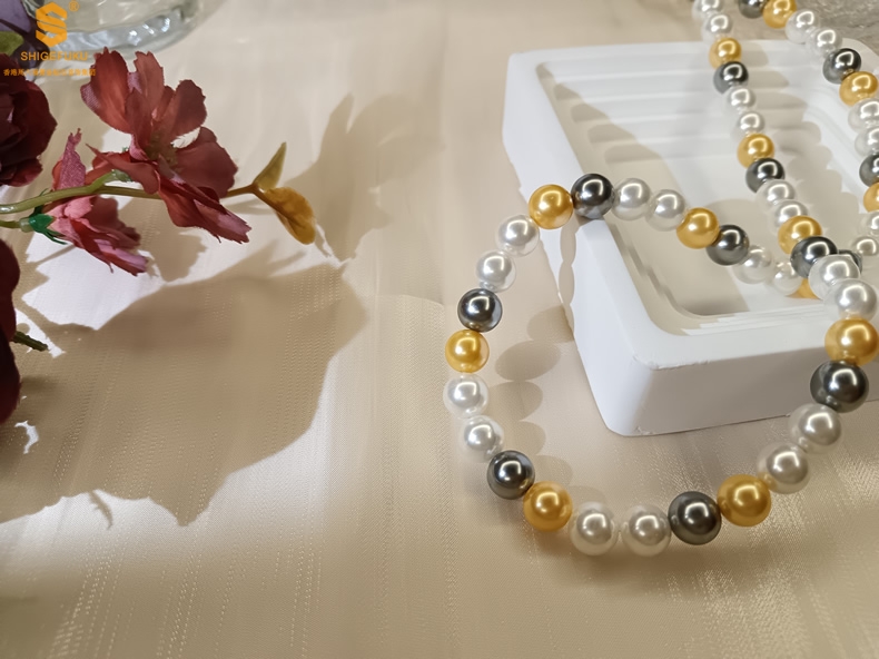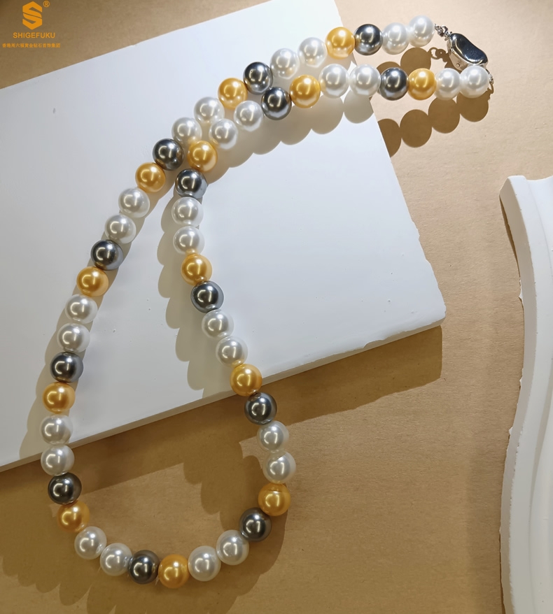 【品名】彩虹多巴胺南洋进口珍珠项链8mm