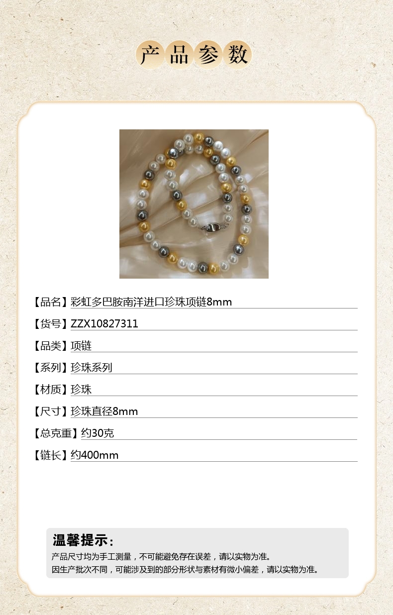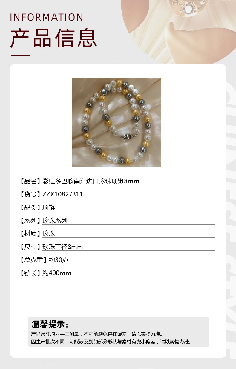 尺寸:珍珠直径8mm