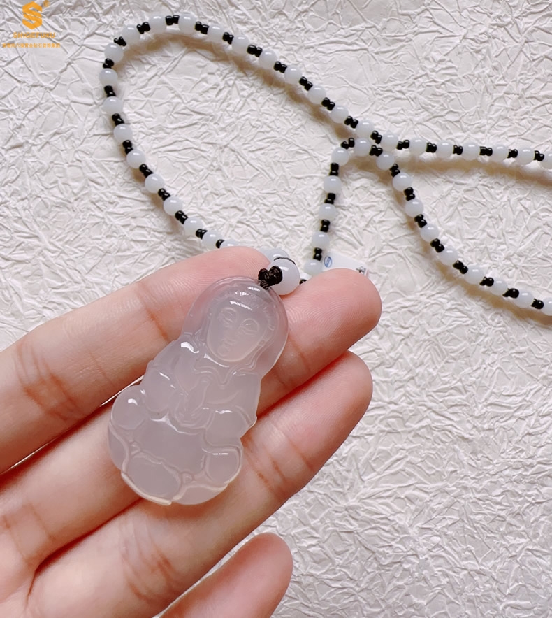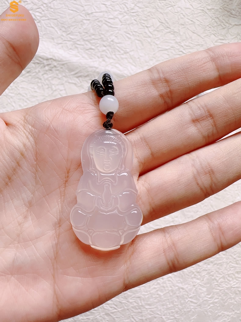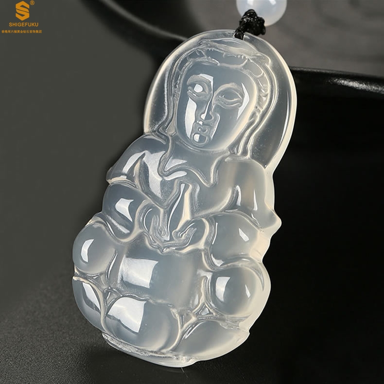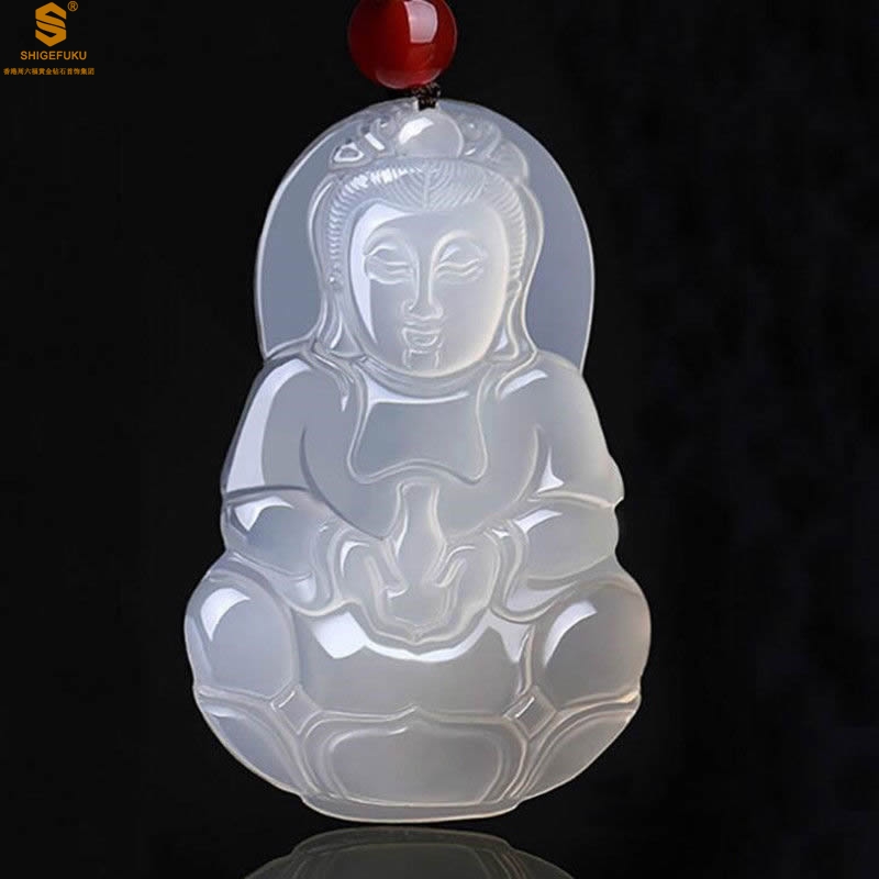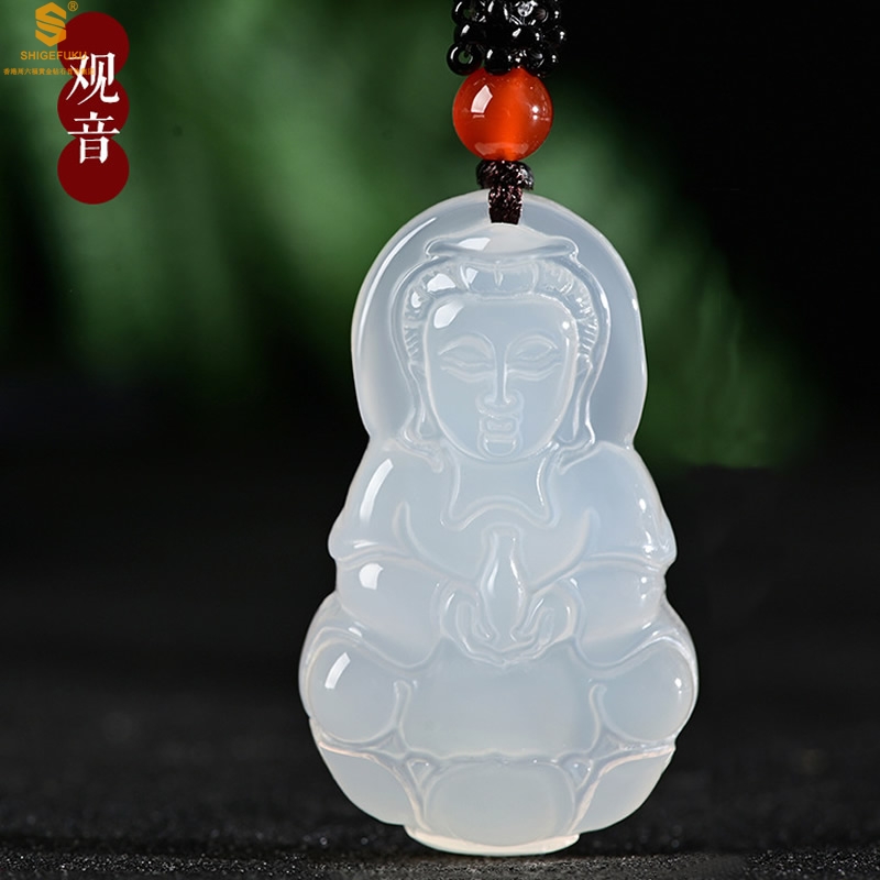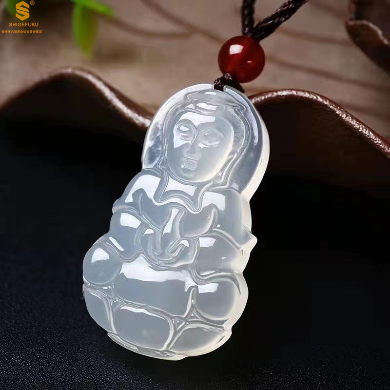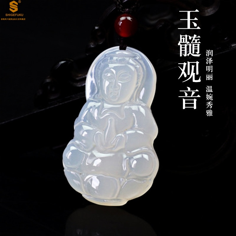 【品名】巴西高冰玉髓观音菩萨吊坠(附赠汉白玉毛衣链)
