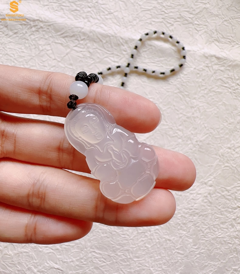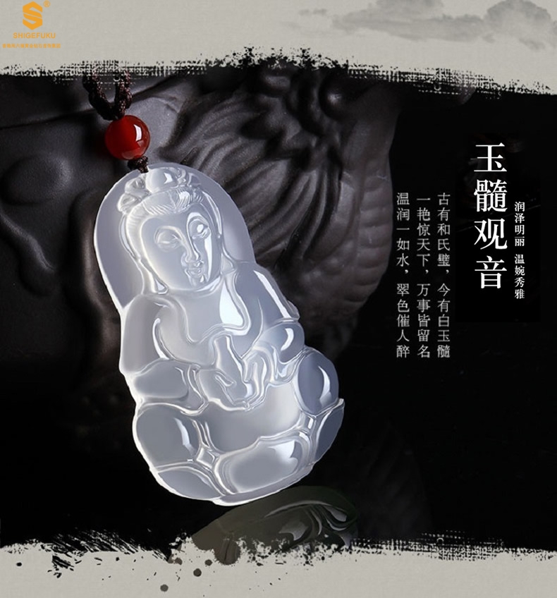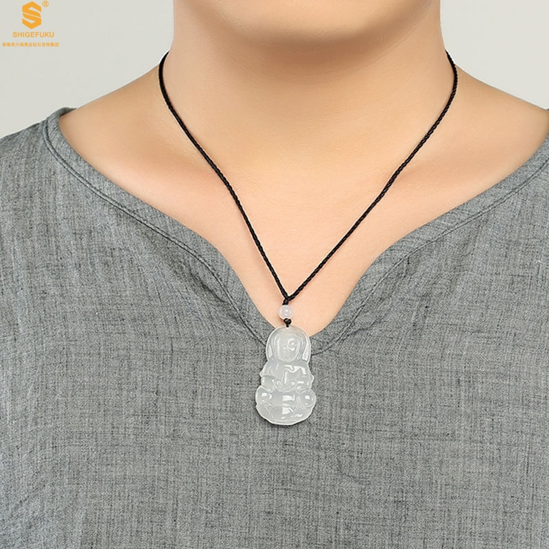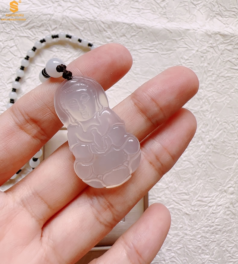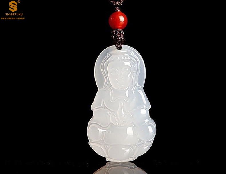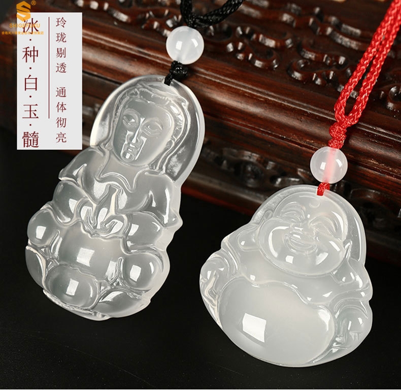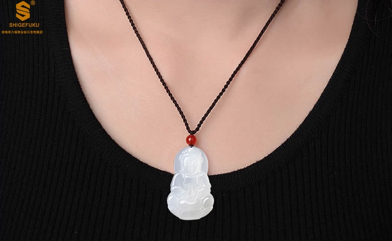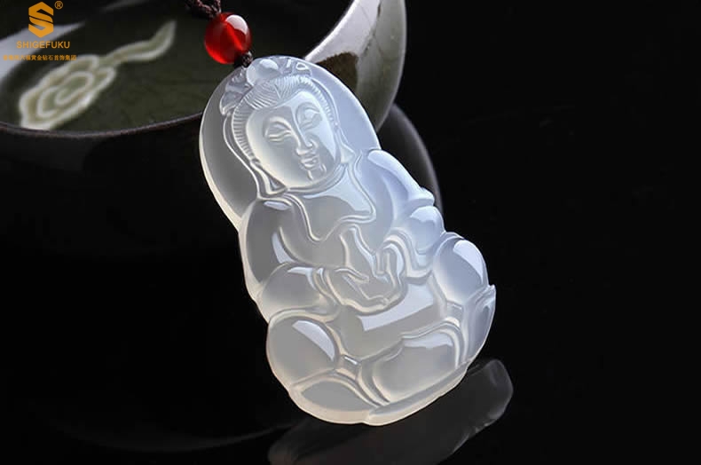 【品名】巴西高冰玉髓观音菩萨吊坠(附赠汉白玉毛衣链)