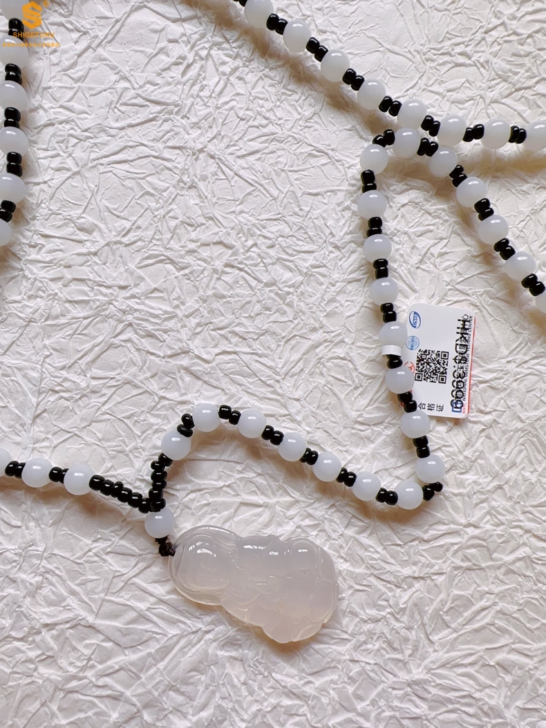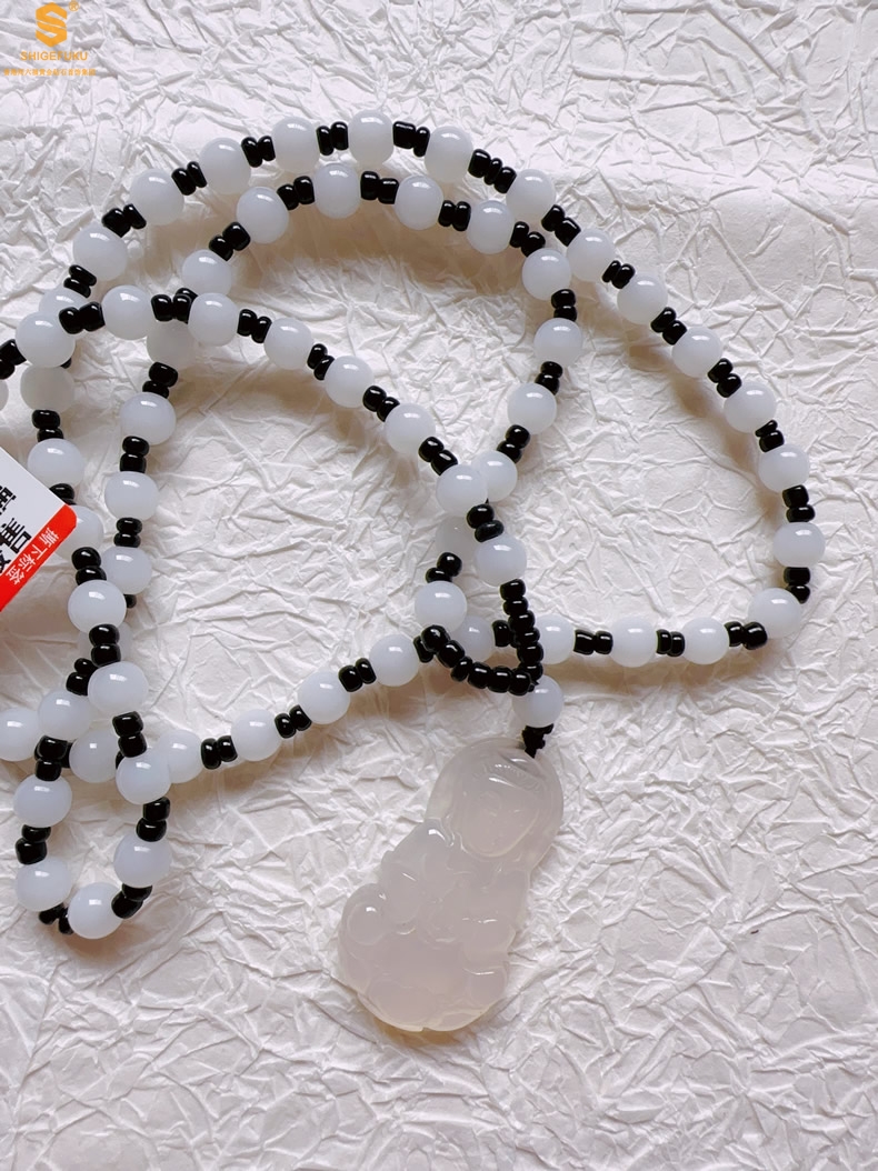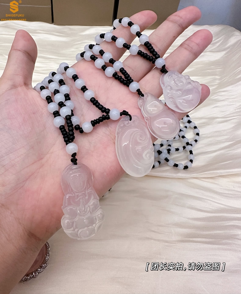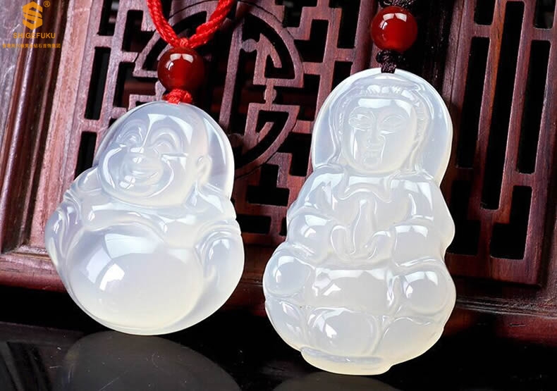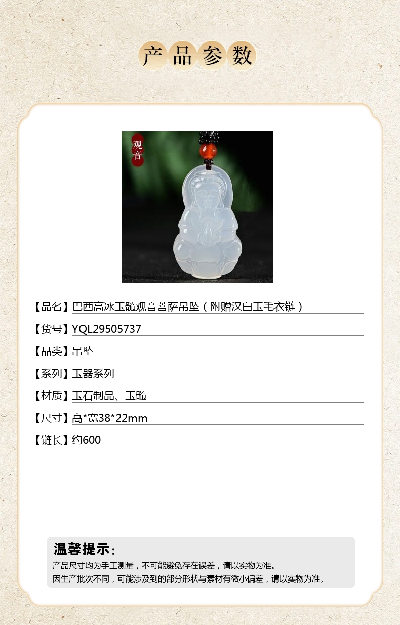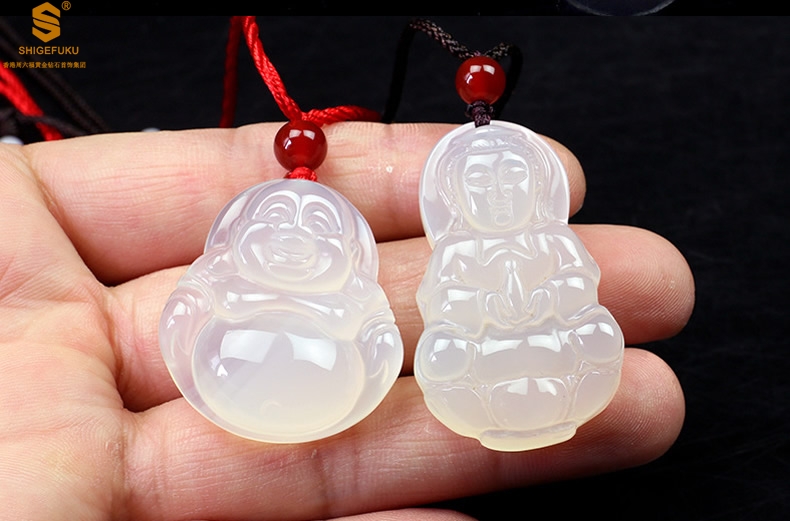 【品名】巴西高冰玉髓观音菩萨吊坠(附赠汉白玉毛衣链)